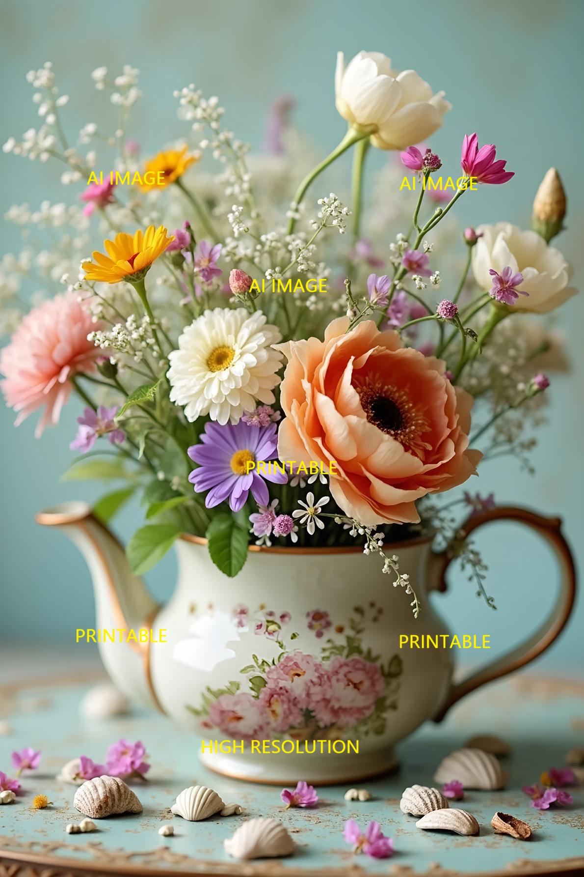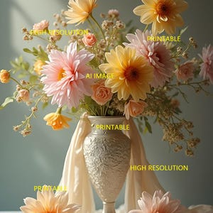 Digital photo of a bouquet of flowers that can be easily downloaded and printed (not a physical item for delivery). The details of the digitally received image are about 5000 × 8000 pixels, 300 DPI, AI artwork, very high resolution without a watermark, and large enough for professional posters, canvas prints, and wall decor. This price is for personal use! For commercial use, please send me a message.
