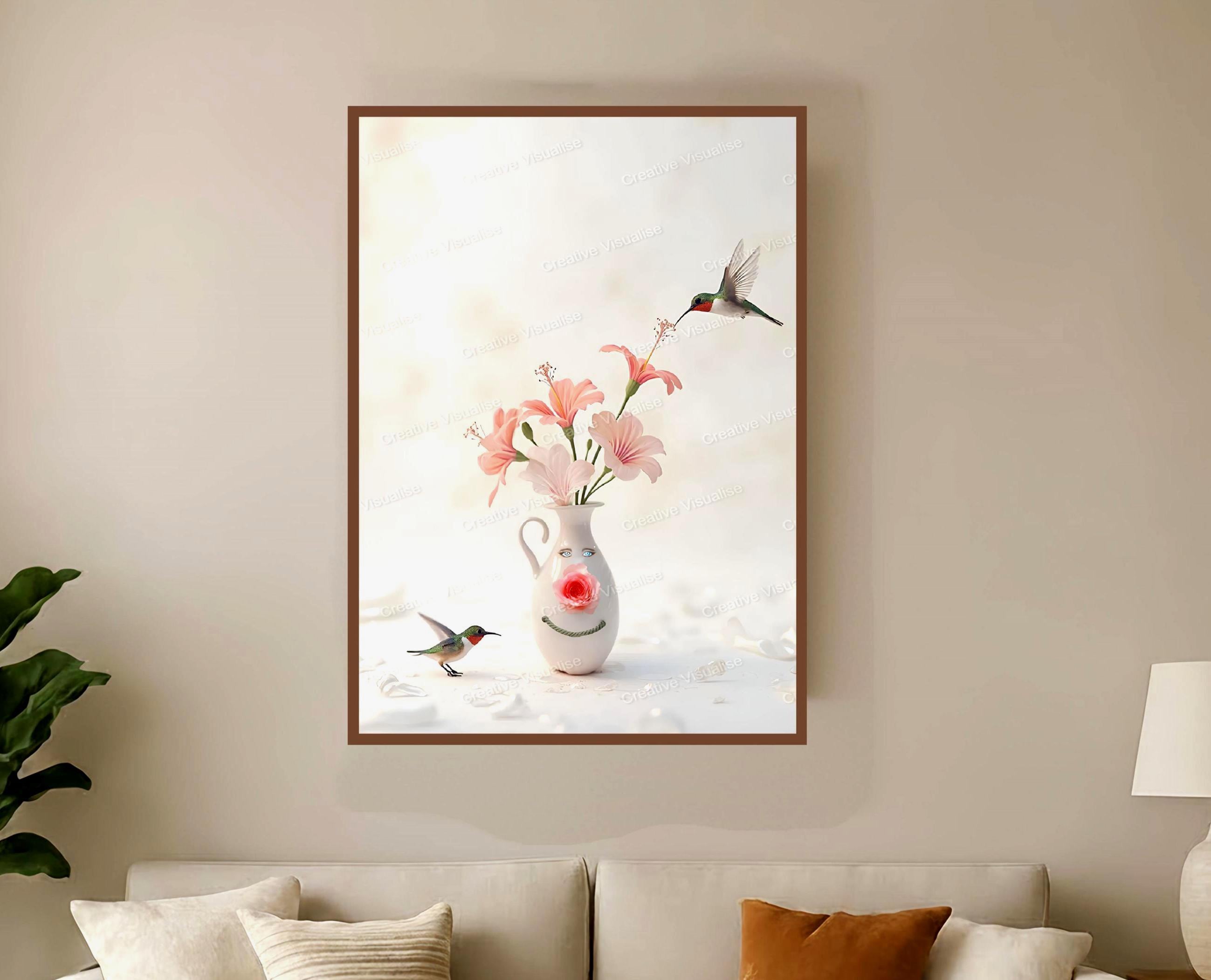 Pink Flowers With Hummingbirds High-Resolution Digital Print, 11000 x 16000 Pixels 300 DPI JPEG