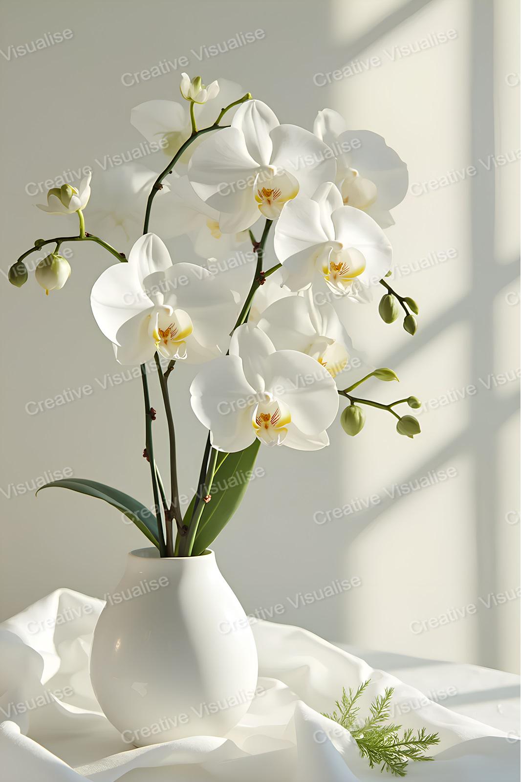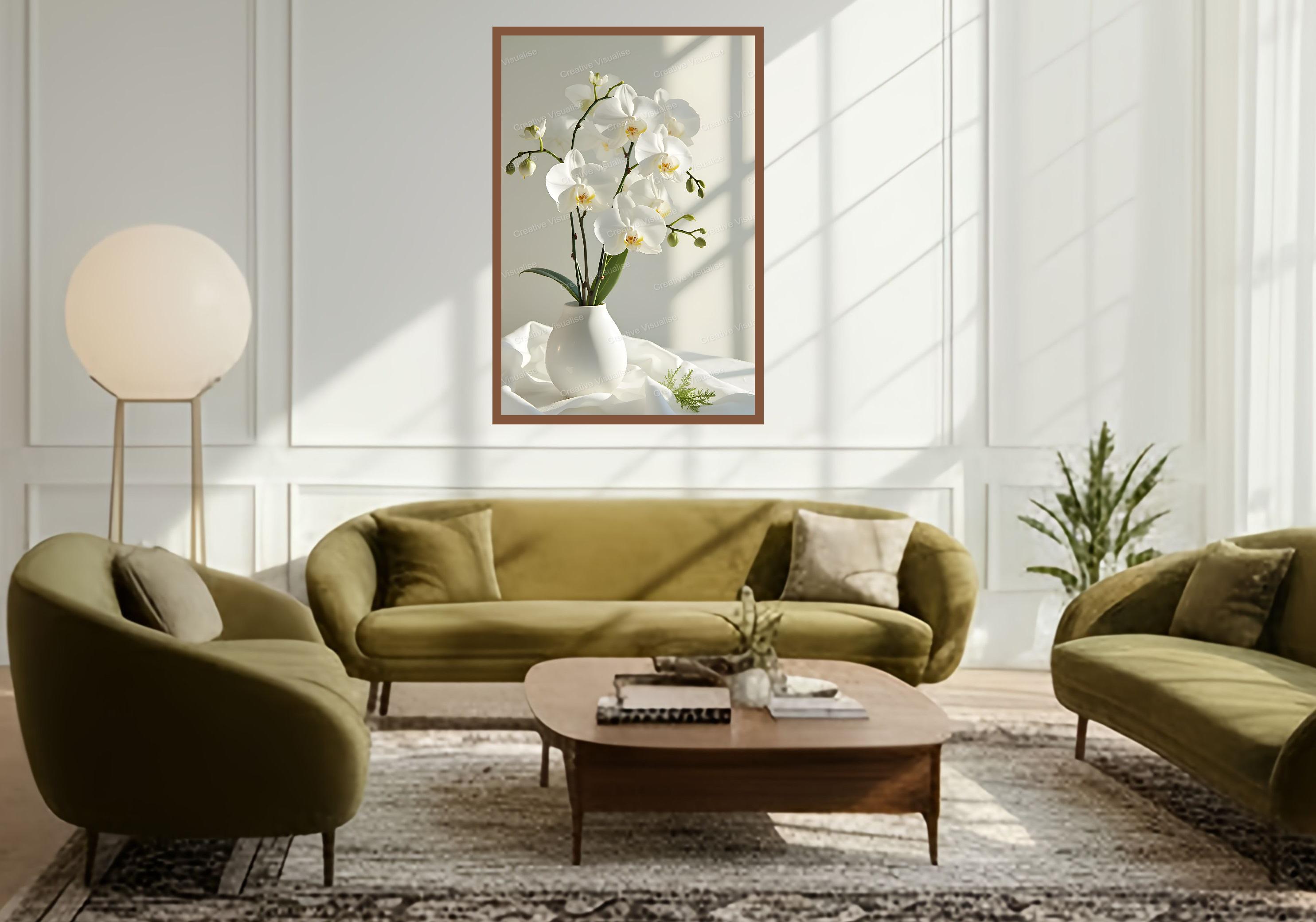 A digital photo of a white orchid bouquet of flowers with pot that can be easily downloaded and printed (not a physical item for delivery). The details of the digitally received image are about 11000 × 16000 pixels, 300 DPI, JPEG and PDF formats, AI artwork, very high resolution without a watermark, and large enough for professional posters, canvas prints, and wall decor. Please send me a message if you need another file format after the original files' delivery. This price is for personal use! For commercial use, please send me a message.