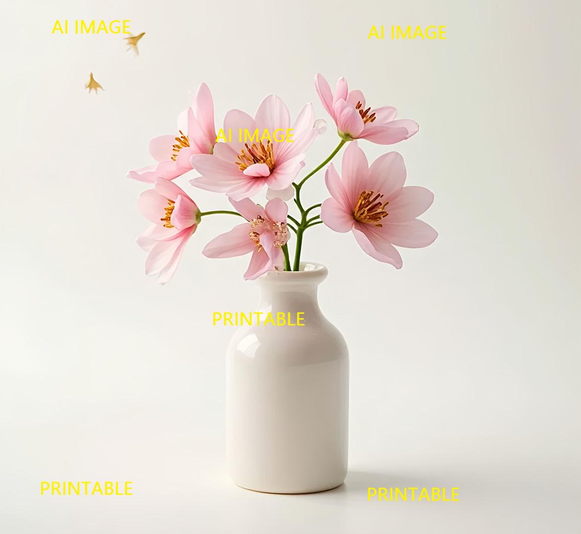 A digital photo of a Pink bouquet of flowers with pots that can be easily downloaded and printed (not a physical item for delivery). The details of the digitally received images are about 5000 × 8000 pixels, 300 DPI, AI artwork, very high resolution without a watermark, and large enough for professional posters, canvas prints, and wall decor. This price is for personal use, not for commercial use!