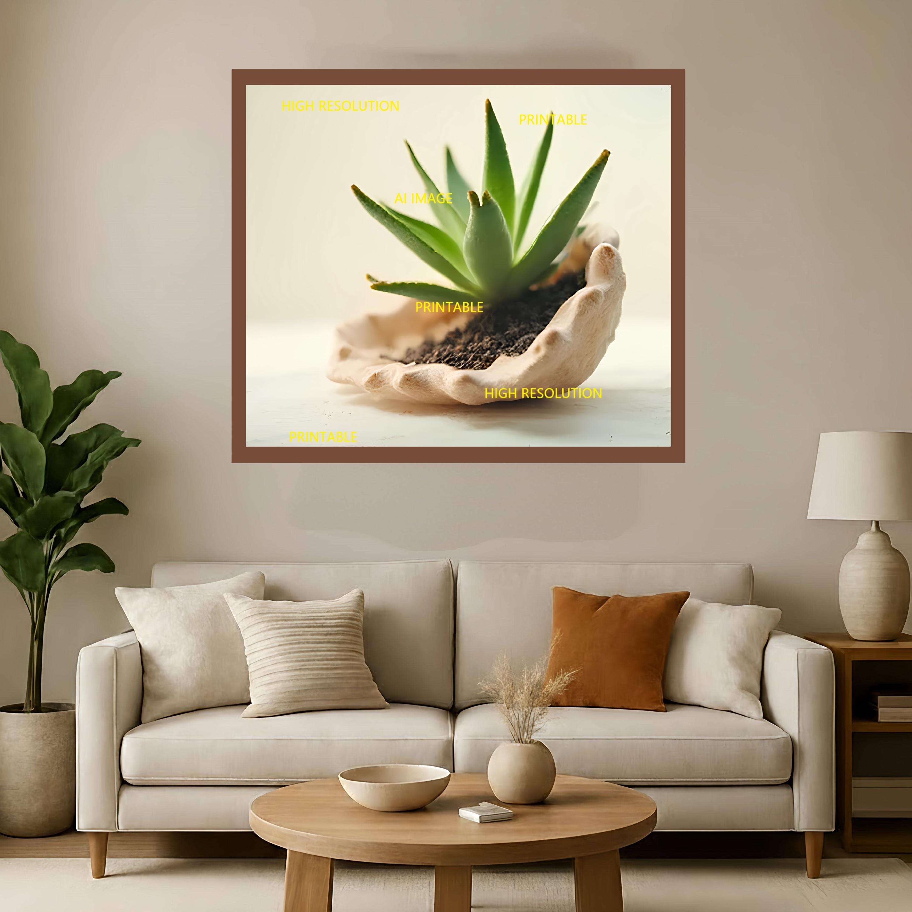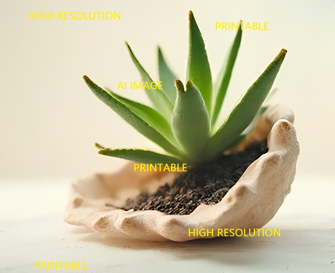 A digital photo of a plant in a seashell pot that can be easily downloaded and printed (not a physical item for delivery). The details of the digitally received image are about 5000 × 8000 pixels, 300 DPI, AI artwork, very high resolution without a watermark, and large enough for professional posters, canvas prints, and wall decor. This price is for personal use, not for commercial use!