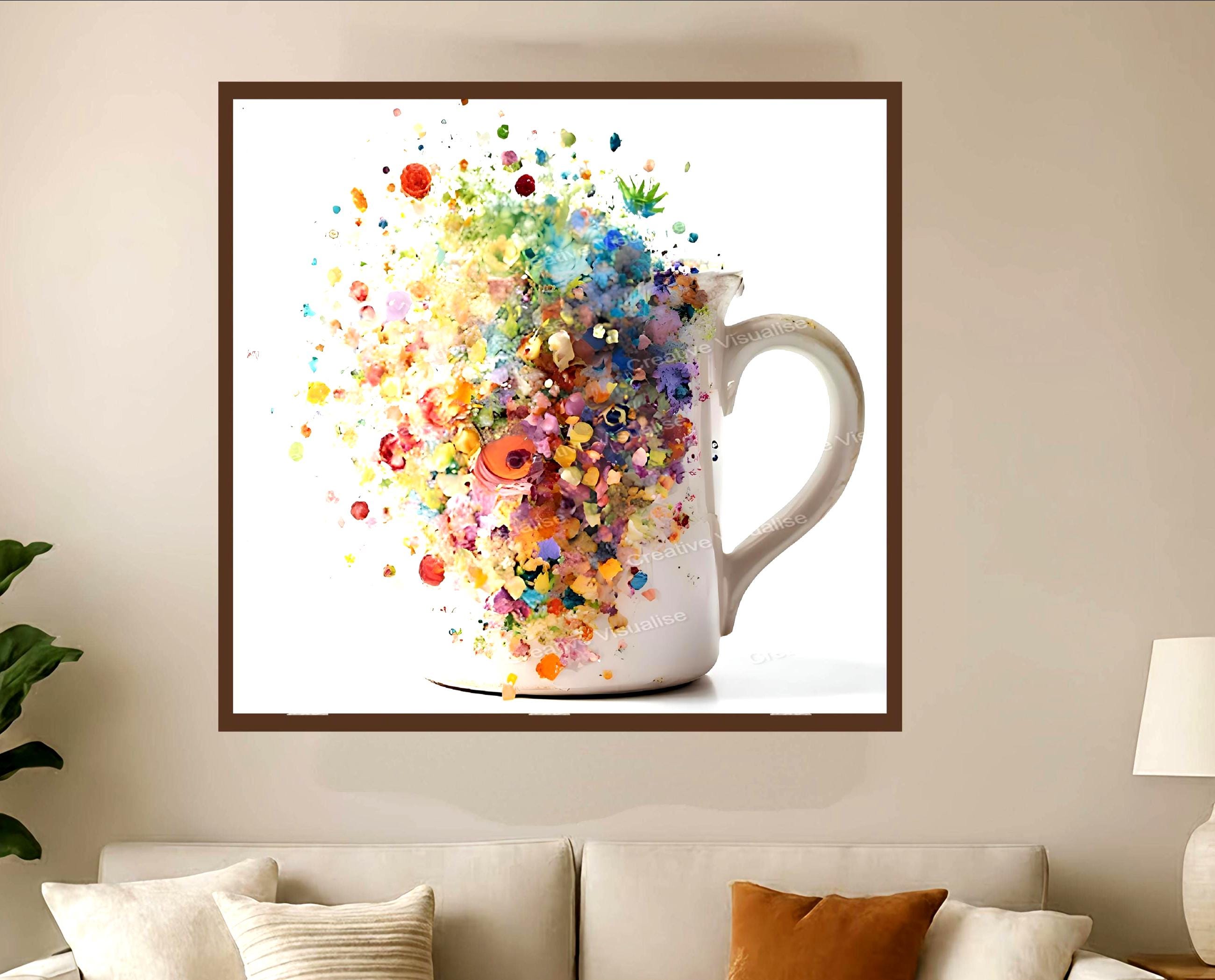 A digital photo of Crystal Flowers in the Mug that can be easily downloaded and printed (not a physical item for delivery). The details of the digitally received image are about 11000 × 16000 pixels, 300 DPI, JPEG and PDF formats, AI artwork, very high resolution without a watermark, and large enough for professional posters, canvas prints, and wall decor. Please send me a message if you need another file format after the original files' delivery. This price is for personal use! For commercial use, please send me a message.