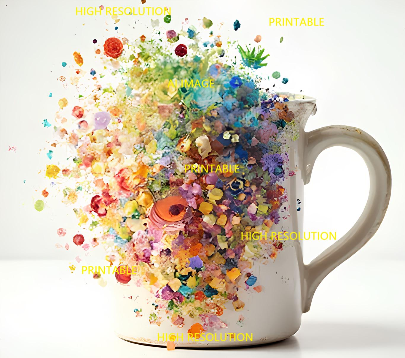 A digital photo of Crystal Flowers in the Mug that can be easily downloaded and printed (not a physical item for delivery). The details of the digitally received image are about 5000 × 8000 pixels, 300 DPI, AI artwork, very high resolution without a watermark, and large enough for professional posters, canvas prints, and wall decor. This price is for personal use, not for commercial use!