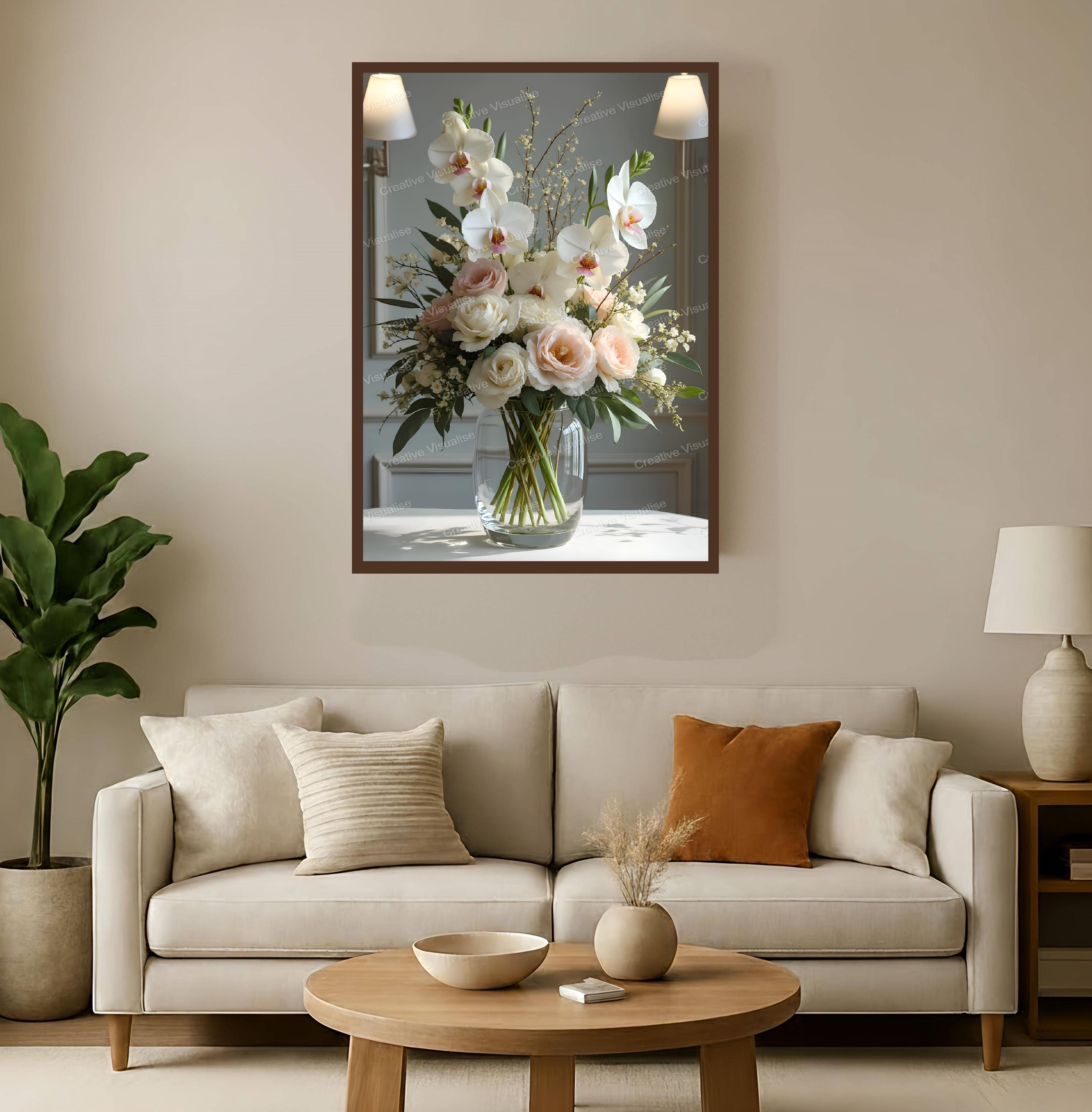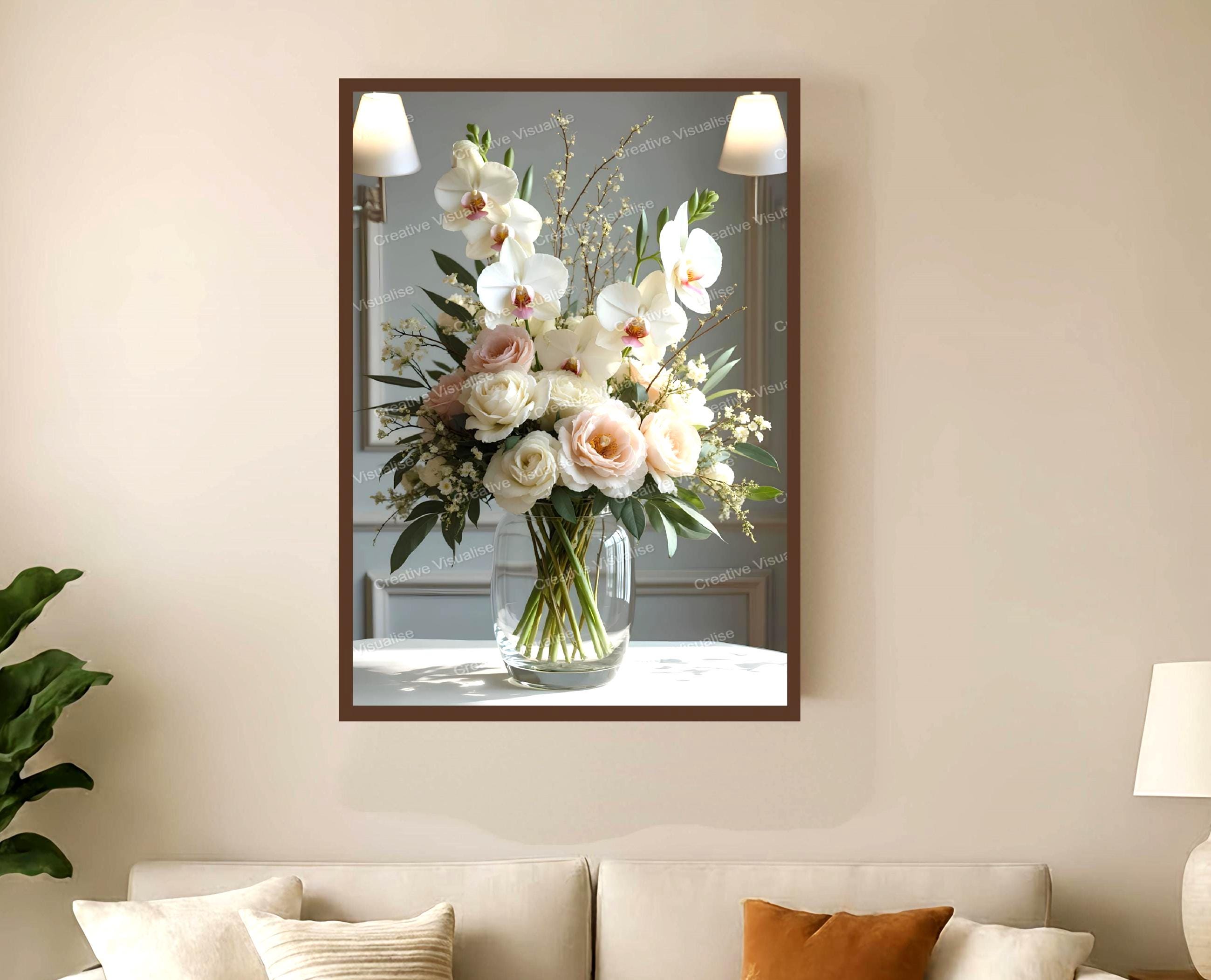 A digital photo of a bouquet of flowers in a jar that can be easily downloaded and printed (not a physical item for delivery). The details of the digitally received image are about 11000 × 16000 pixels, 300 DPI, JPEG and PDF formats, AI artwork, very high resolution without a watermark, and large enough for professional posters, canvas prints, and wall decor. Please send me a message if you need another file format after the original files' delivery. This price is for personal use! For commercial use, please send me a message.