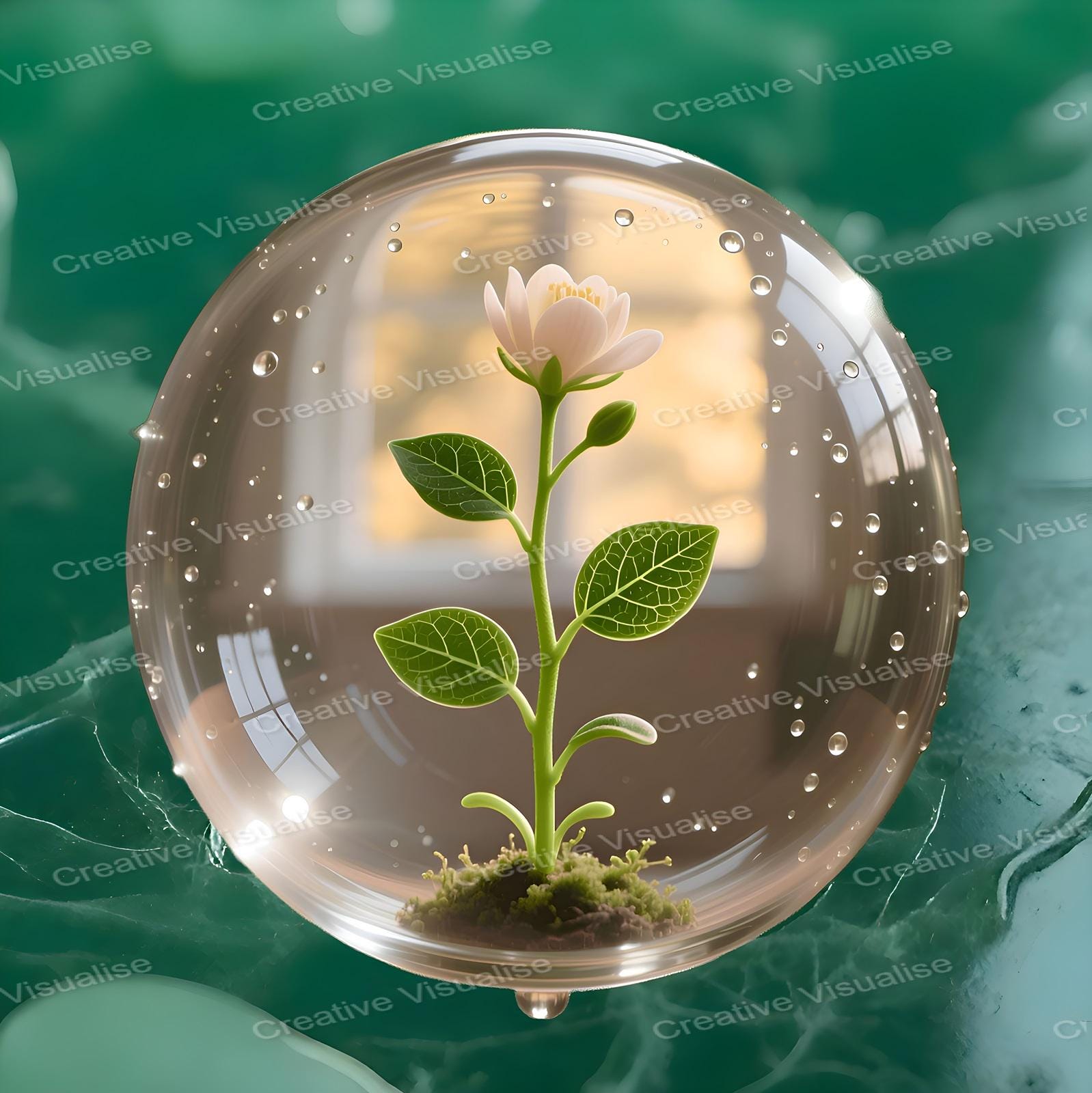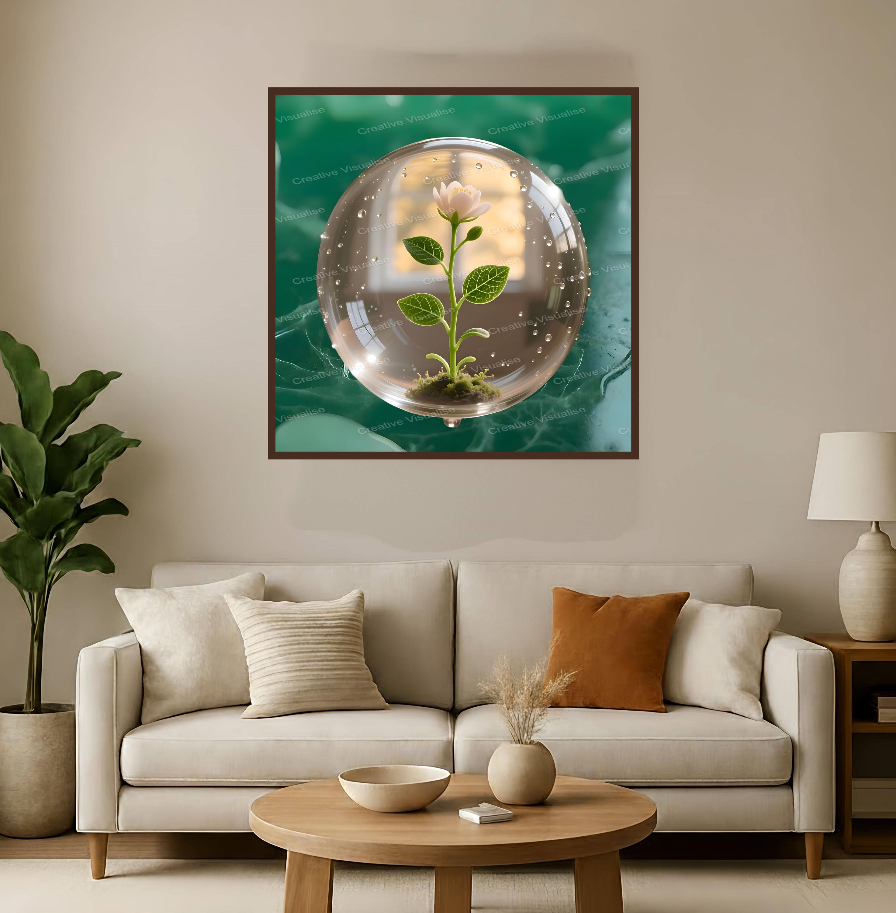 A digital photo of a beautiful plant in a crystal bubble that can be easily downloaded and printed (not a physical item for delivery). The details of the digitally received image are about 11000 × 16000 pixels, 300 DPI, JPEG and PDF formats, AI artwork, very high resolution without a watermark, and large enough for professional posters, canvas prints, and wall decor. Please send me a message if you need another file format after the original files' delivery. This price is for personal use! For commercial use, please send me a message.
