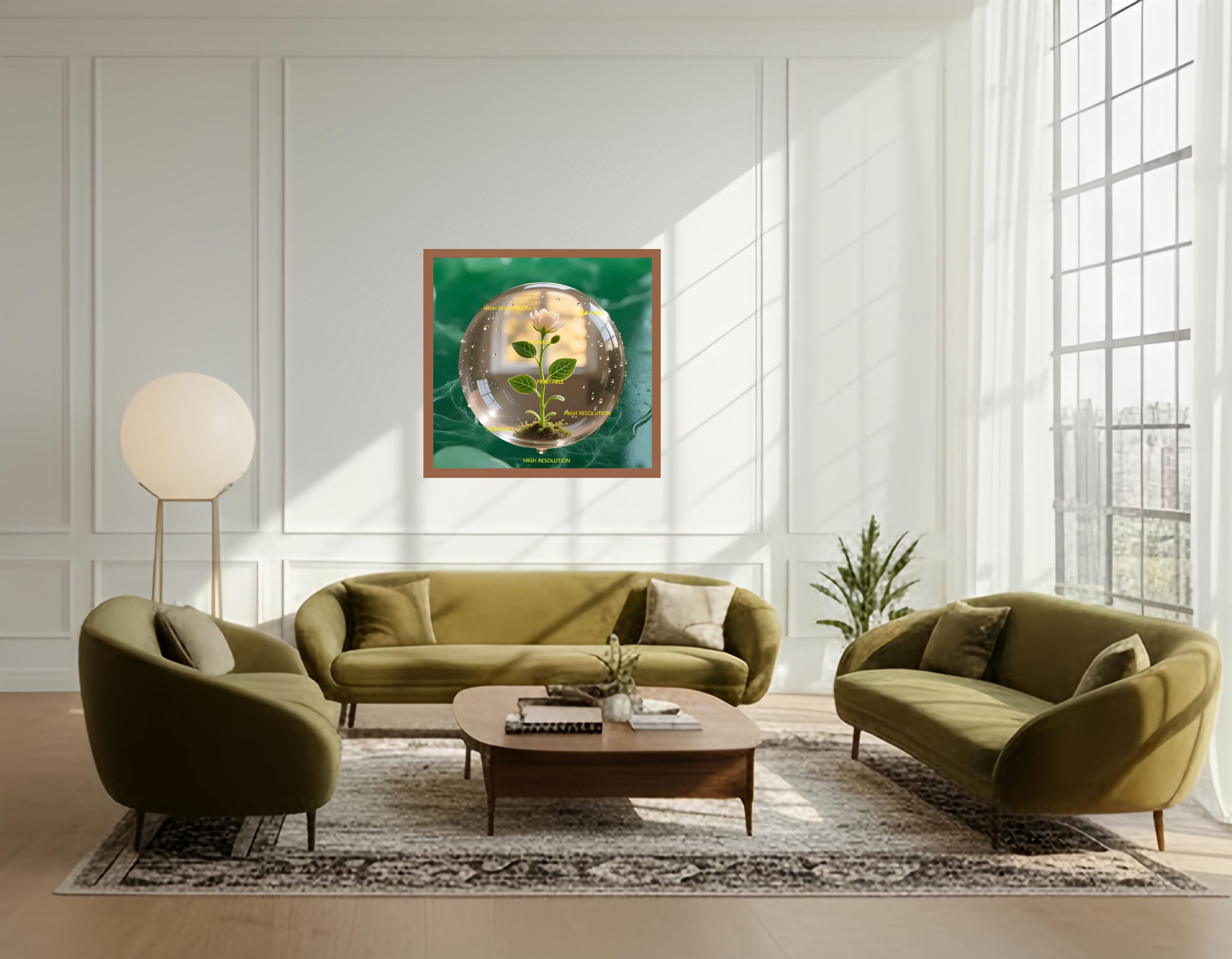A digital photo of a beautiful plant in a crystal bubble that can be easily downloaded and printed (not a physical item for delivery). The details of the digitally received image are about 5000 × 8000 pixels, 300 DPI, AI artwork, very high resolution without a watermark, and large enough for professional posters, canvas prints, and wall decor. This price is for personal use, not for commercial use!