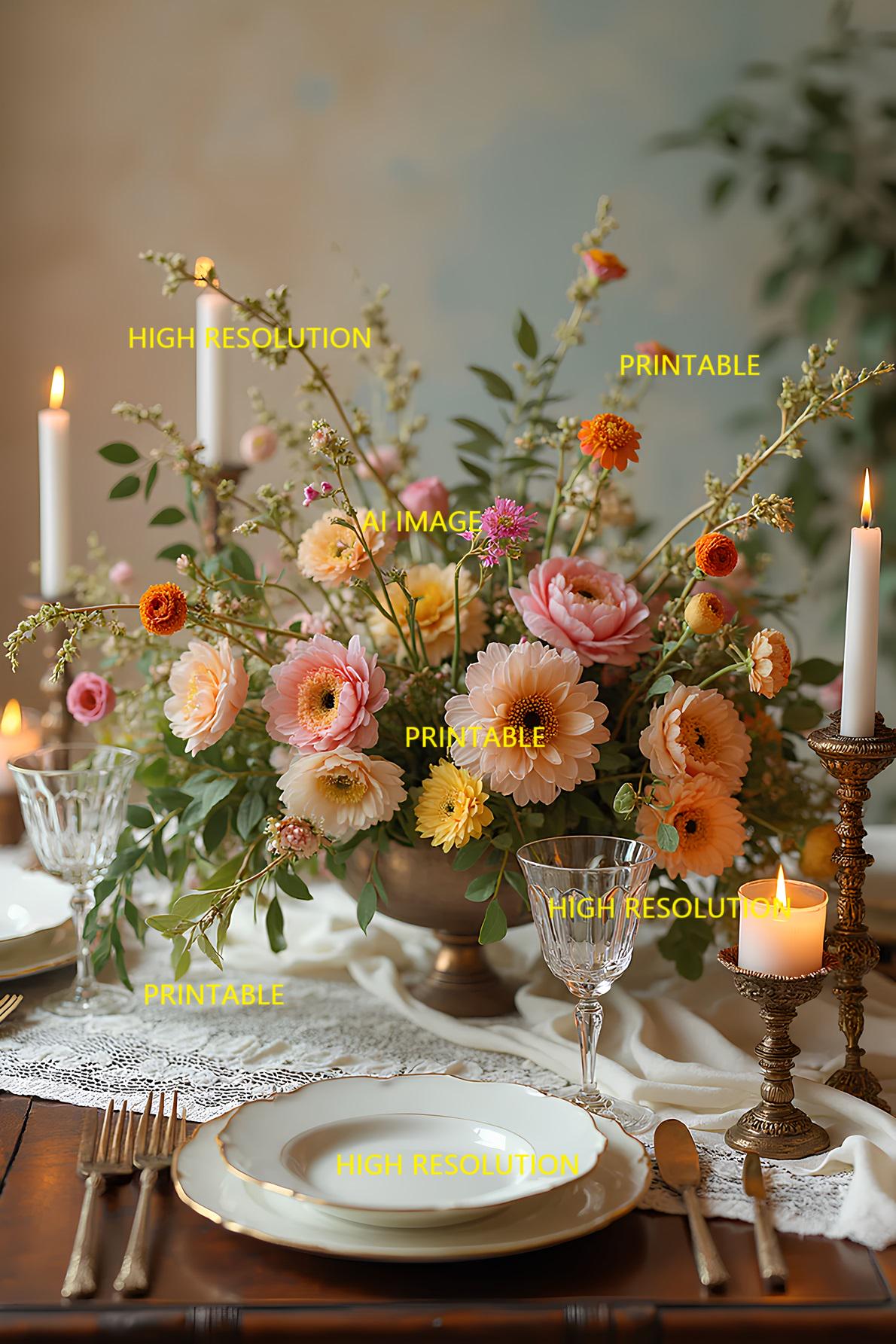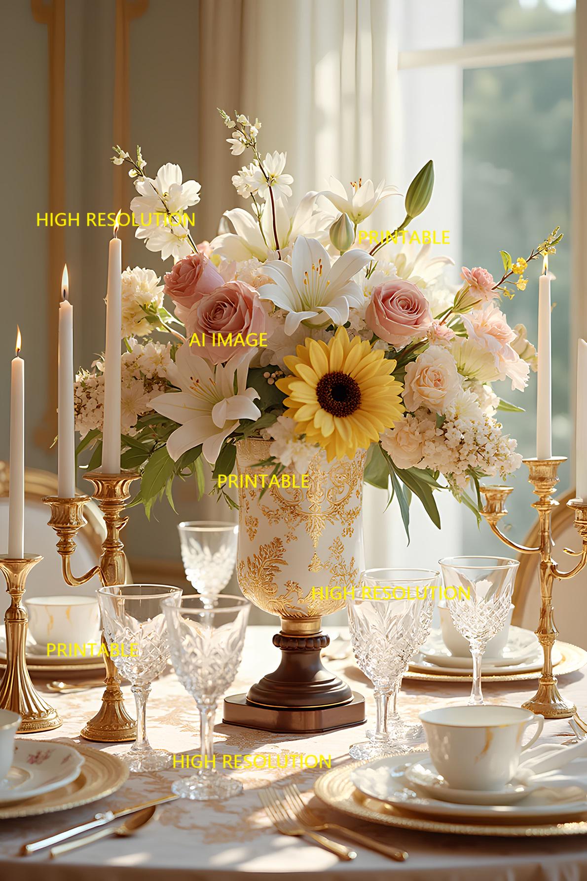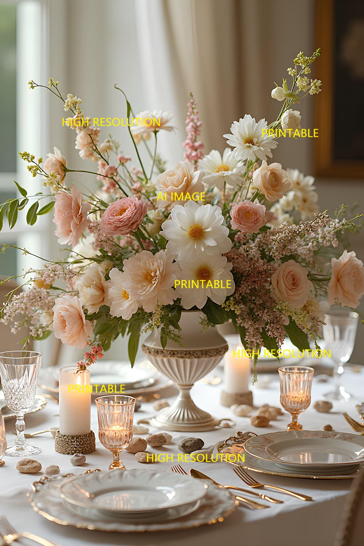 Bundle of 5 digital photos about elegant table settings and glassware sets that can be easily downloaded and printed (not a physical item for delivery). The details of the digitally received images are about 5000 × 8000 pixels, 300 DPI, AI artwork, very high resolution without a watermark, and large enough for professional posters, canvas prints, and wall decor. This price is for personal use, not for commercial use!