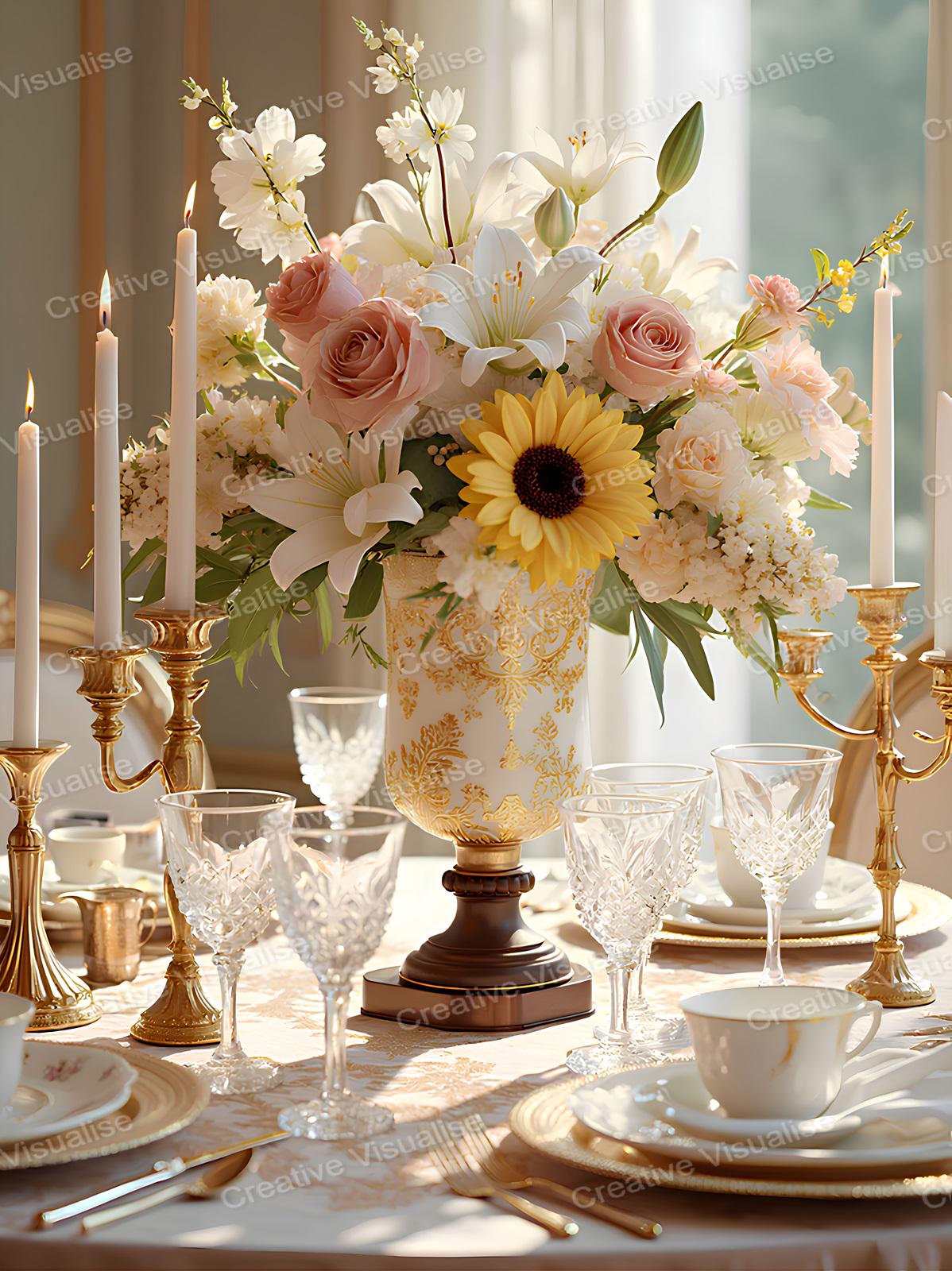 Table Settings and Flowers High-Resolution Digital Print, 11000 x 16000 Pixels 300 DPI JPEG