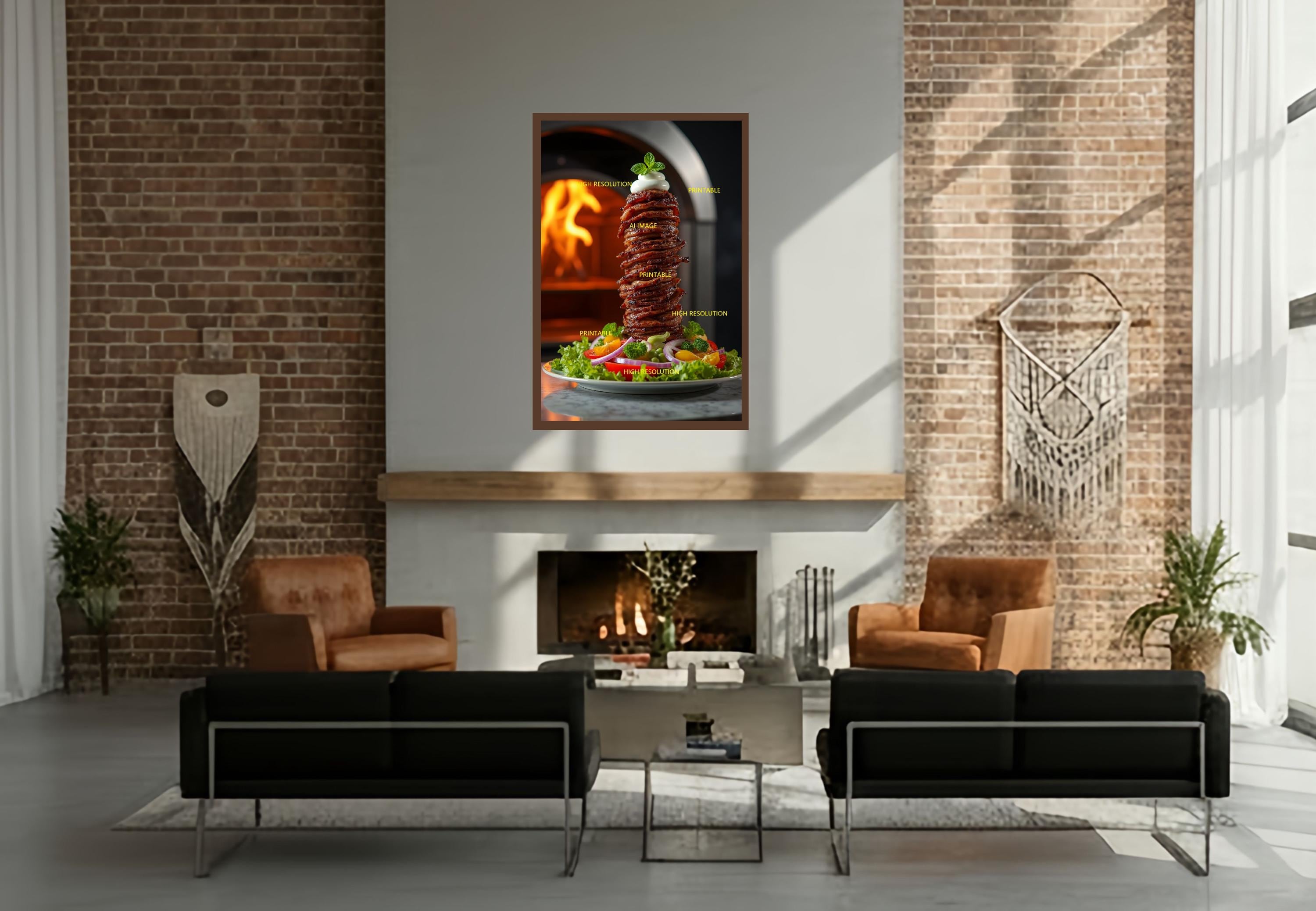 A digital photo of a kebab art includes everyday dishes that can be easily downloaded and printed (not a physical item for delivery). The details of the digitally received image are about 5000 × 8000 pixels, 300 DPI, AI artwork, very high resolution without a watermark, and large enough for professional posters, canvas prints, and wall decor. This price is for personal use, not for commercial use!