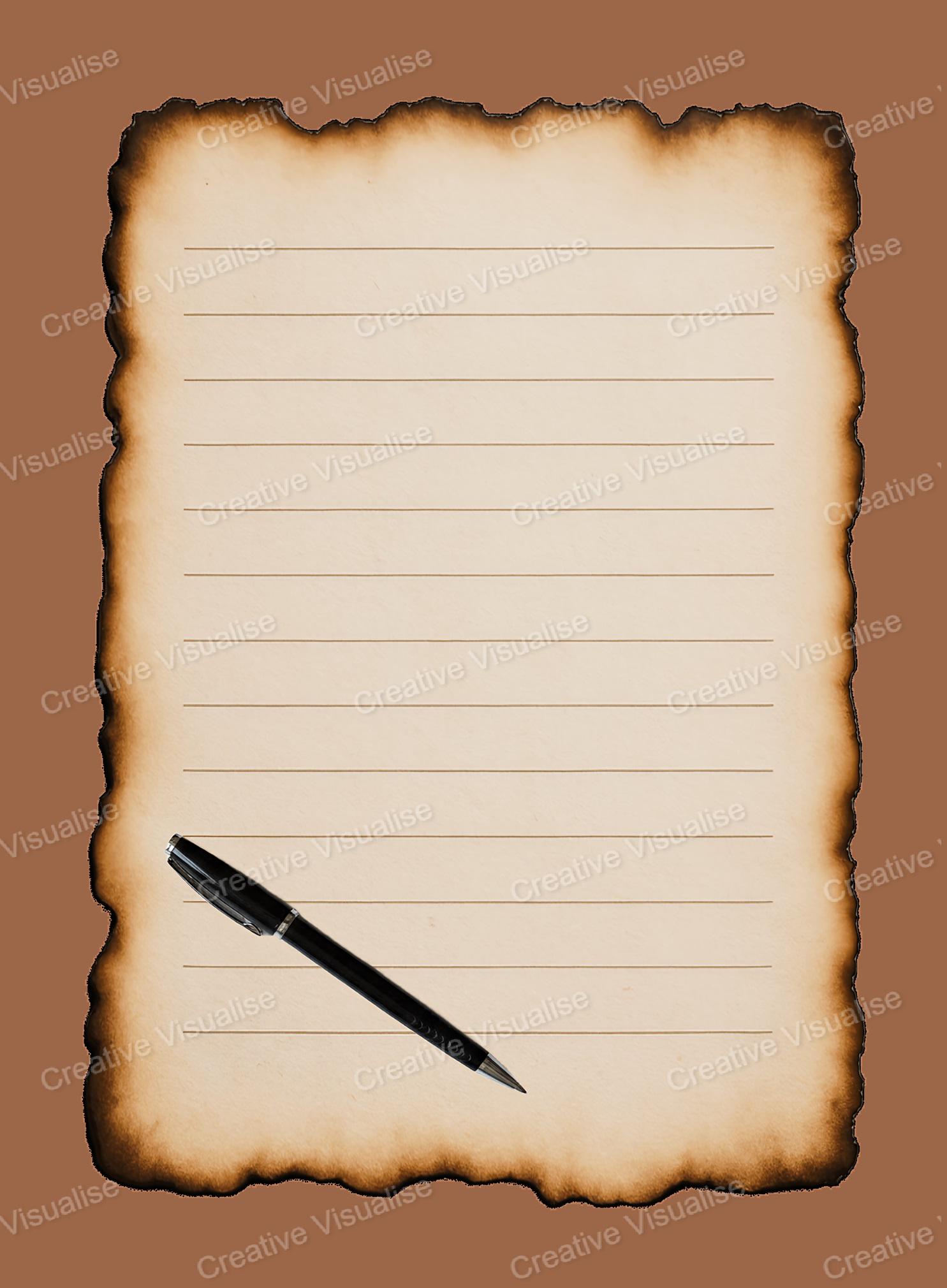 A digital photo of Burnt Edge Paper with Pen that can be easily downloaded and printed (not a physical item for delivery). The details of the digitally received image are about 7000 × 9000 pixels, 300 DPI, AI artwork, very high resolution without a watermark, and large enough for professional posters, canvas prints, and wall decor. This price is for personal use! For commercial use, please send me a message.