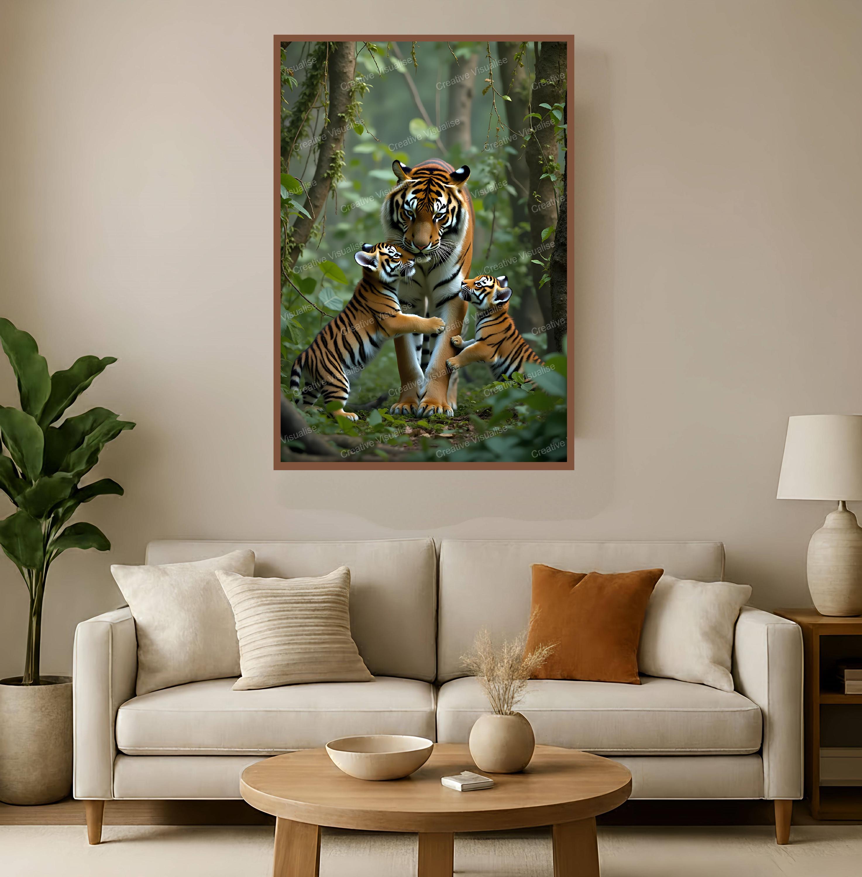 5 digital photos of tiger wallpaper that can be easily downloaded and printed (not a physical item for delivery). The details of the digitally received image are about 11000 × 16000 pixels, 300 DPI, JPEG and PDF formats, AI artwork, very high resolution without a watermark, and large enough for professional posters, canvas prints, and wall decor. Please send me a message if you need another file format after the original files' delivery. This price is for personal use! For commercial use, please send me a message.