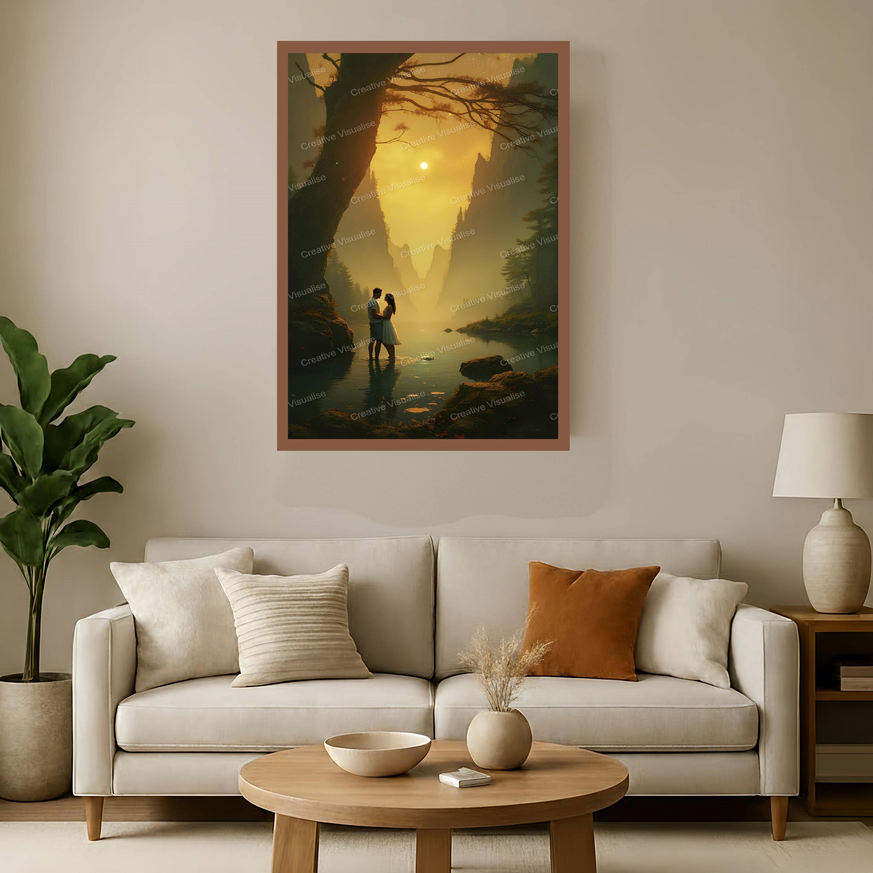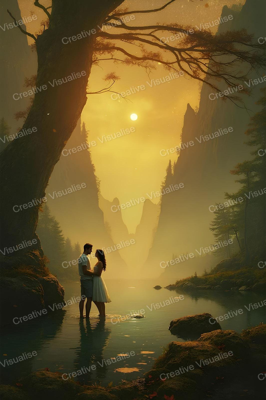 A moonlight wallpaper digital print, love by the lake under the moonlight artwork, that can be easily downloaded and printed (not a physical item for delivery). The details of the digitally received image are about 11000 × 16000 pixels, 300 DPI, JPEG and PDF formats, AI artwork, very high resolution without a watermark, and large enough for professional posters, canvas prints, and wall decor. Please send me a message if you need another file format after the original files' delivery. This price is for personal use! For commercial use, please send me a message.