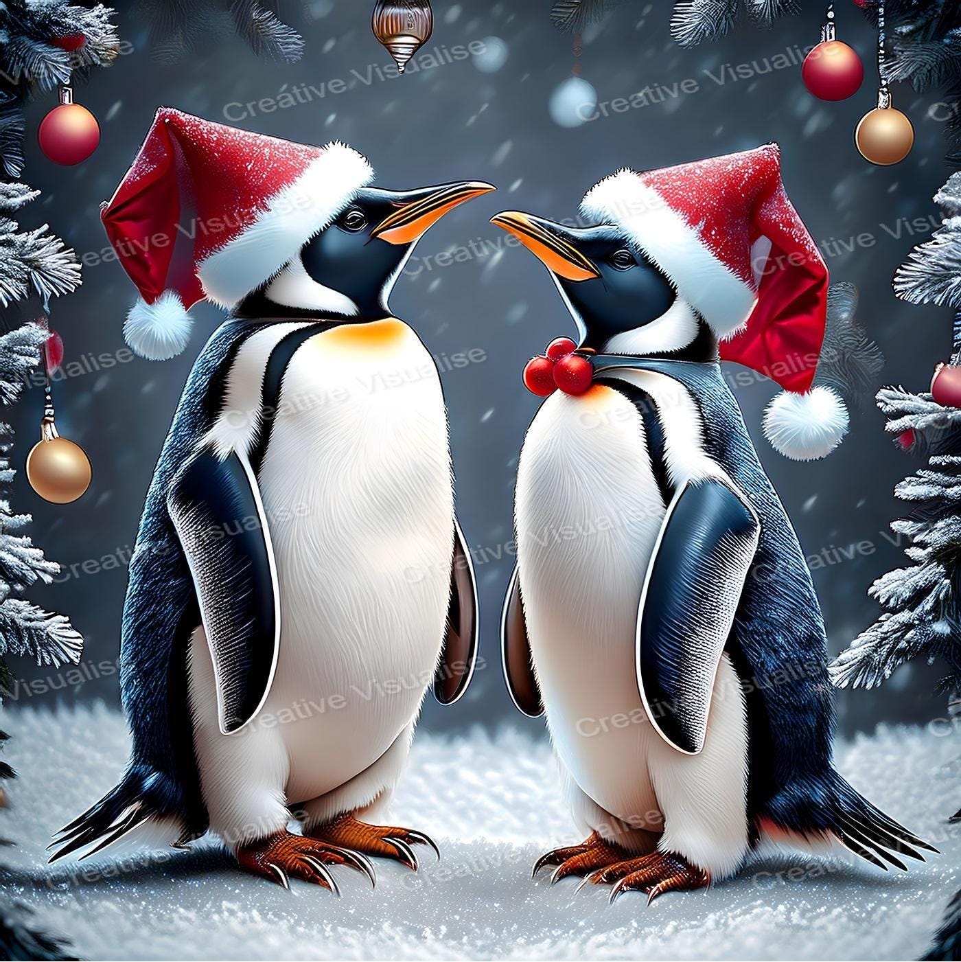 A penguin wallpaper with christmas mascots digital print that can be easily downloaded and printed (not a physical item for delivery).