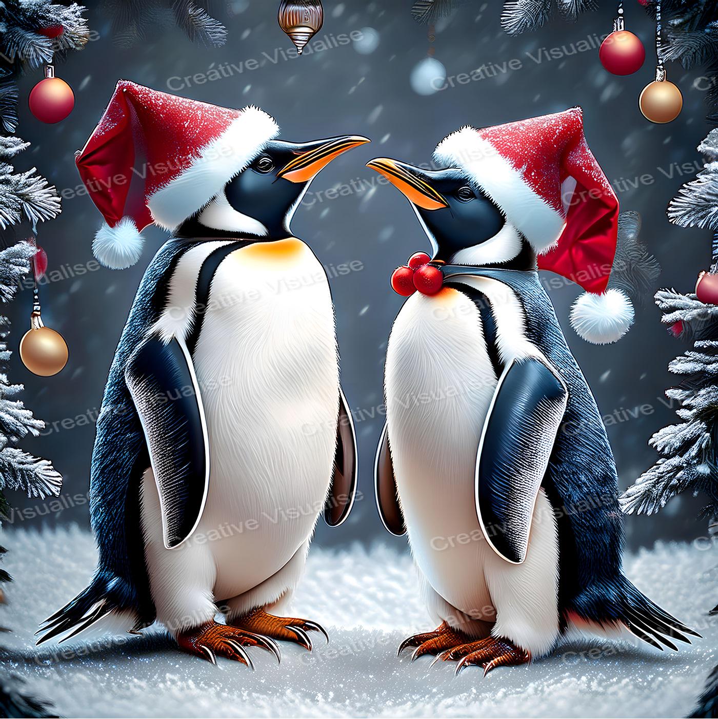 A penguin wallpaper with christmas mascots digital print that can be easily downloaded and printed (not a physical item for delivery). The details of the digitally received image are about 14000 × 14000 pixels, 300 DPI, JPEG and PDF formats, AI artwork, very high resolution without a watermark, and large enough for professional posters, canvas prints, and wall decor. Please send me a message if you need another file format after the original files' delivery. This price is for personal use! For commercial use, please send me a message.