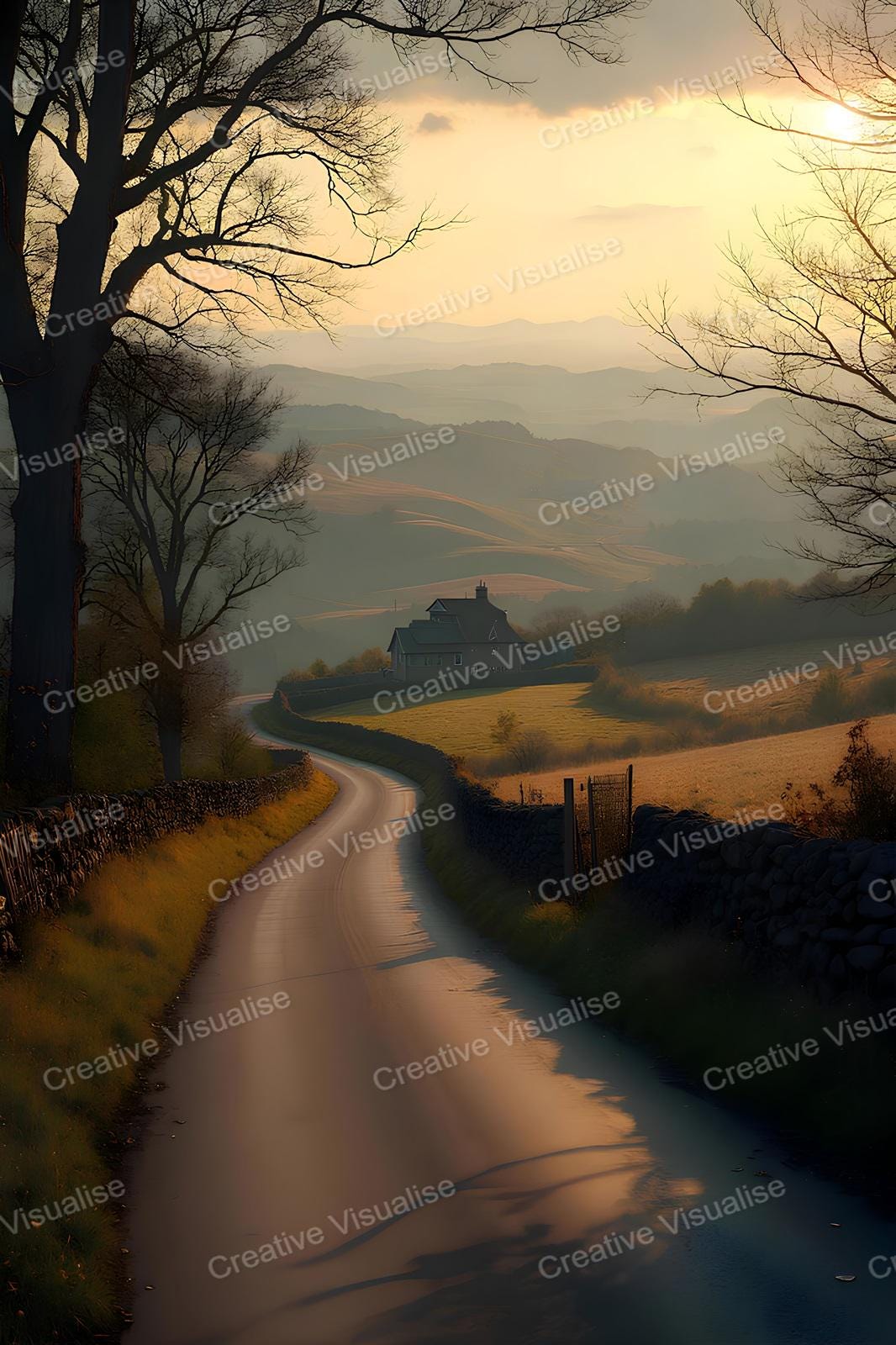 A village platform landscape digital print that can be easily downloaded and printed (not a physical item for delivery). The details of the digitally received image are about 11000 × 16000 pixels, 300 DPI, JPEG and PDF formats, AI artwork, very high resolution without a watermark, and large enough for professional posters, canvas prints, and wall decor. Please send me a message if you need another file format after the original files' delivery. This price is for personal use! For commercial use, please send me a message.