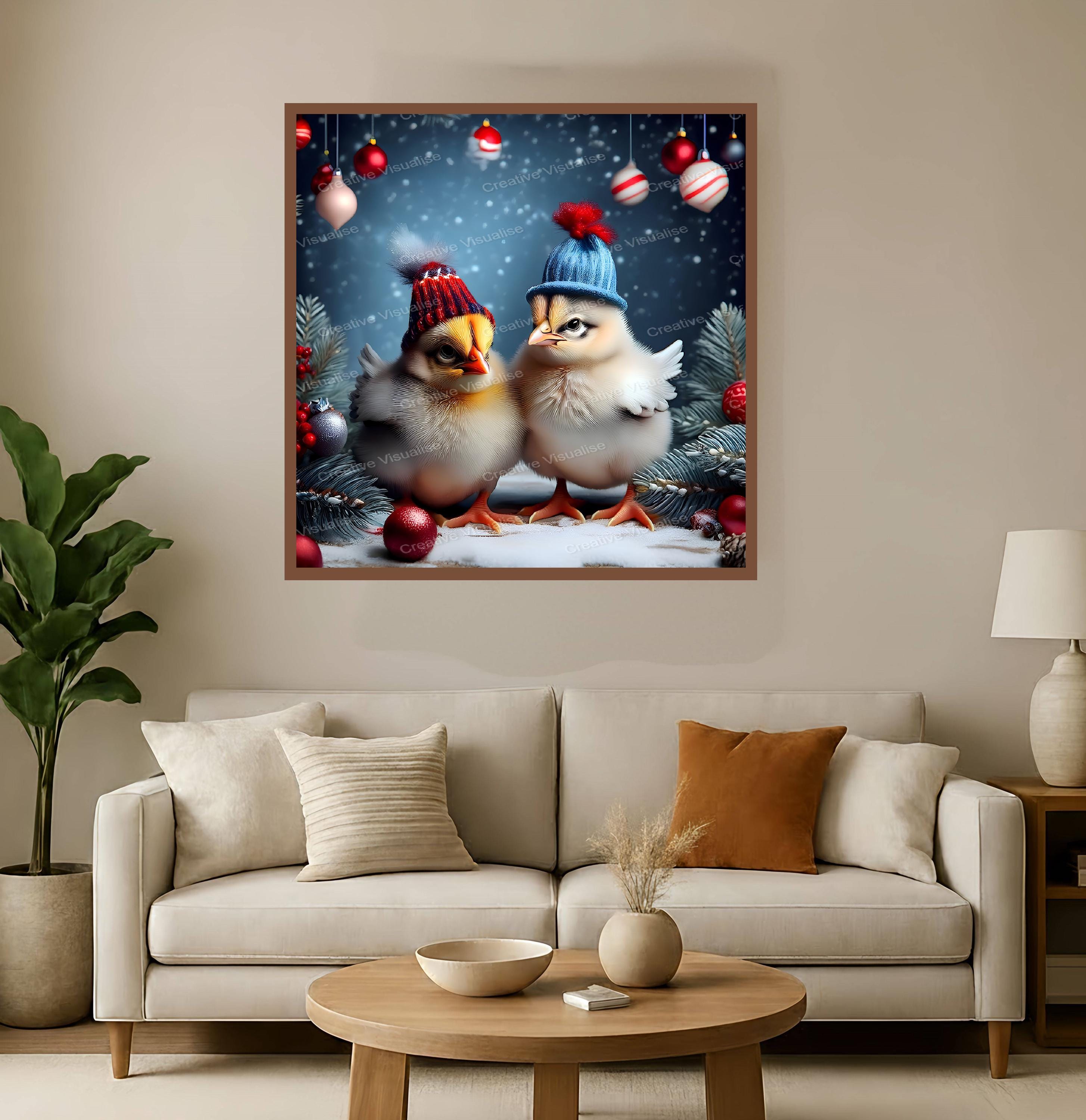 Chicks in Christmas wall art digital print that can be easily downloaded and printed (not a physical item for delivery). The details of the digitally received images are about 14000 × 15000 pixels, 300 DPI, JPEG and PDF formats, AI artwork, very high resolution without a watermark, and large enough for professional posters, canvas prints, and wall decor. Please send me a message if you need another file format after the original files' delivery. This price is for personal use! For commercial use, please send me a message.