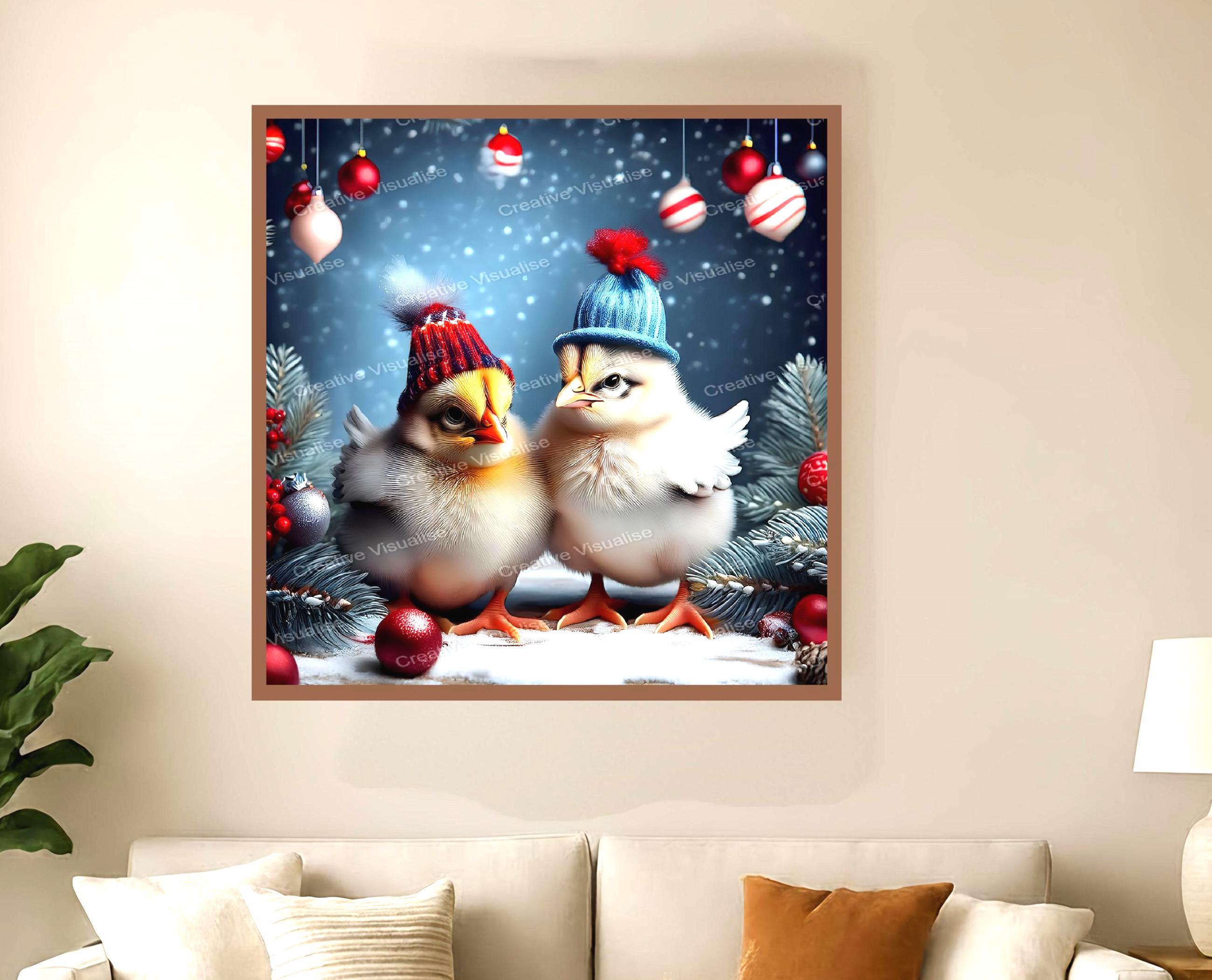 Chicks in Christmas wall art digital print that can be easily downloaded and printed (not a physical item for delivery). The details of the digitally received images are about 14000 × 15000 pixels, 300 DPI, JPEG and PDF formats, AI artwork, very high resolution without a watermark, and large enough for professional posters, canvas prints, and wall decor. Please send me a message if you need another file format after the original files' delivery. This price is for personal use! For commercial use, please send me a message.