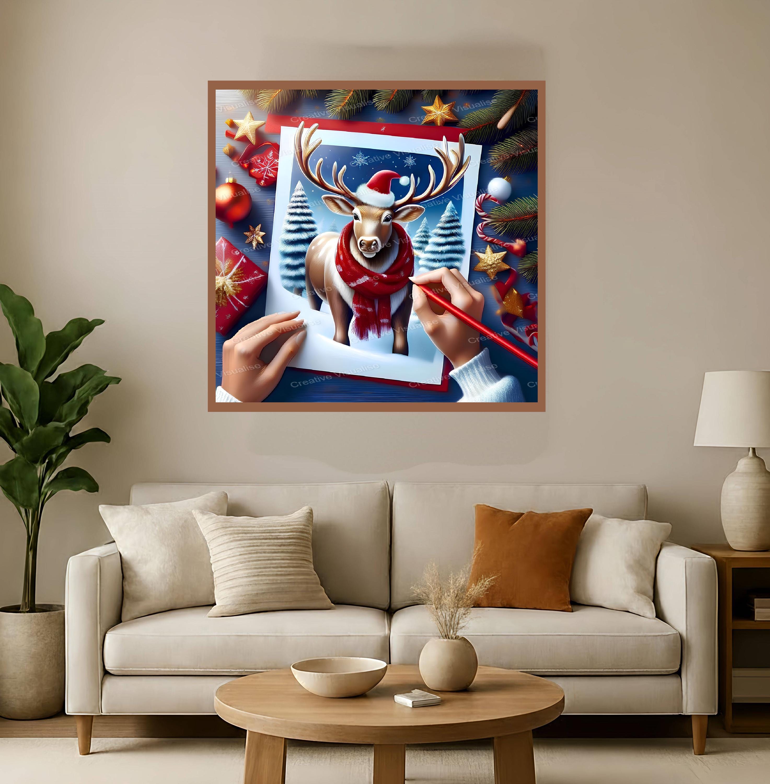 A deer painting Christmas mascots wall art digital print that can be easily downloaded and printed (not a physical item for delivery). The details of the digitally received images are about 14000 × 15000 pixels, 300 DPI, JPEG and PDF formats, AI artwork, very high resolution without a watermark, and large enough for professional posters, canvas prints, and wall decor. Please send me a message if you need another file format after the original files' delivery. This price is for personal use! For commercial use, please send me a message.