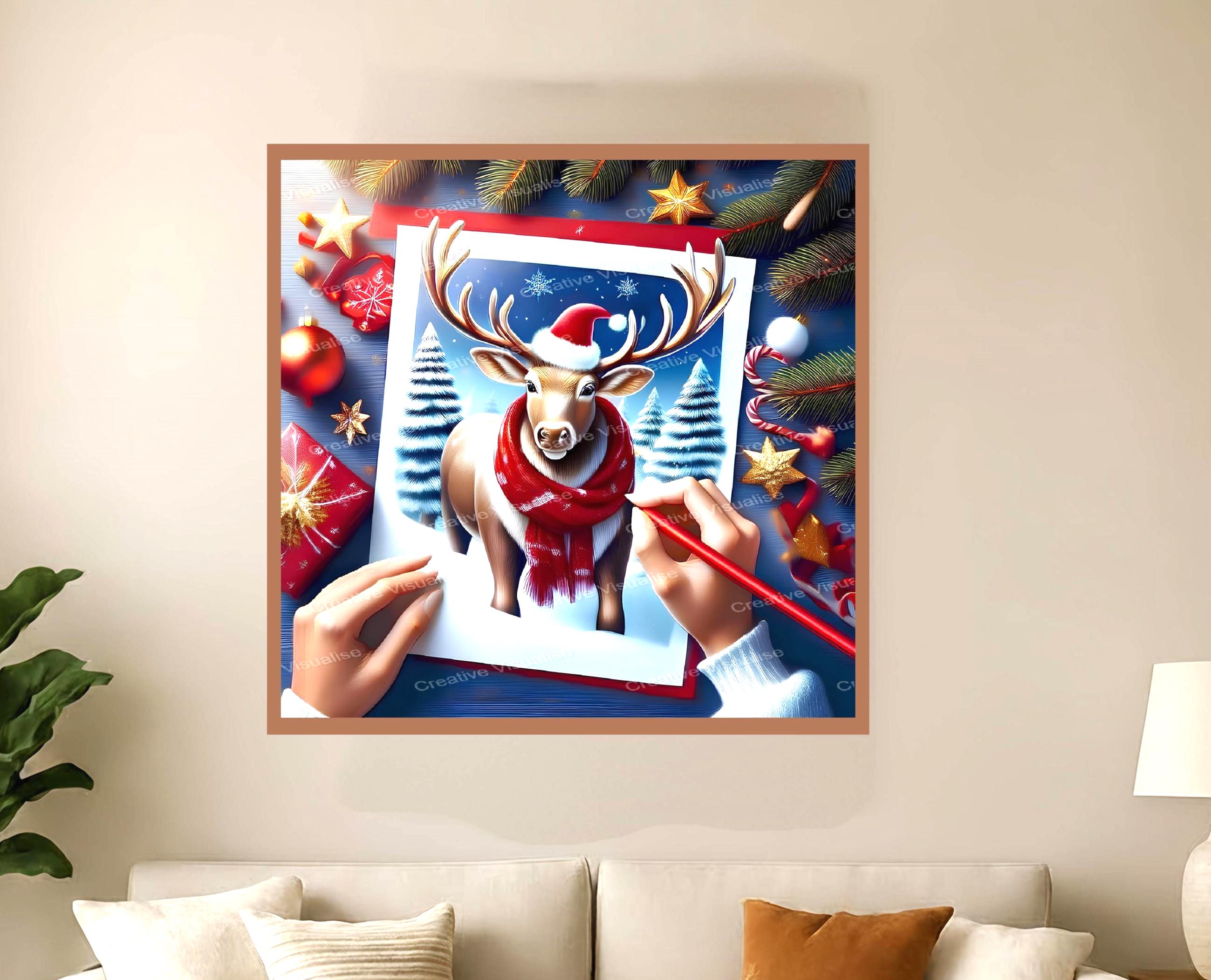 A deer painting Christmas mascots wall art digital print that can be easily downloaded and printed (not a physical item for delivery). The details of the digitally received images are about 14000 × 15000 pixels, 300 DPI, JPEG and PDF formats, AI artwork, very high resolution without a watermark, and large enough for professional posters, canvas prints, and wall decor. Please send me a message if you need another file format after the original files' delivery. This price is for personal use! For commercial use, please send me a message.