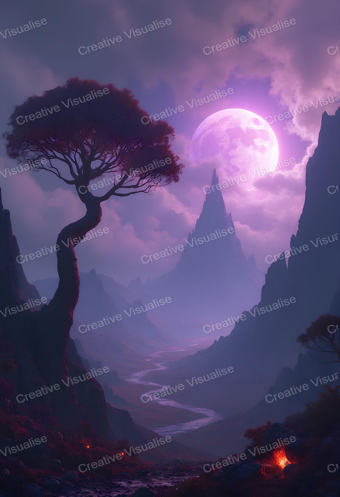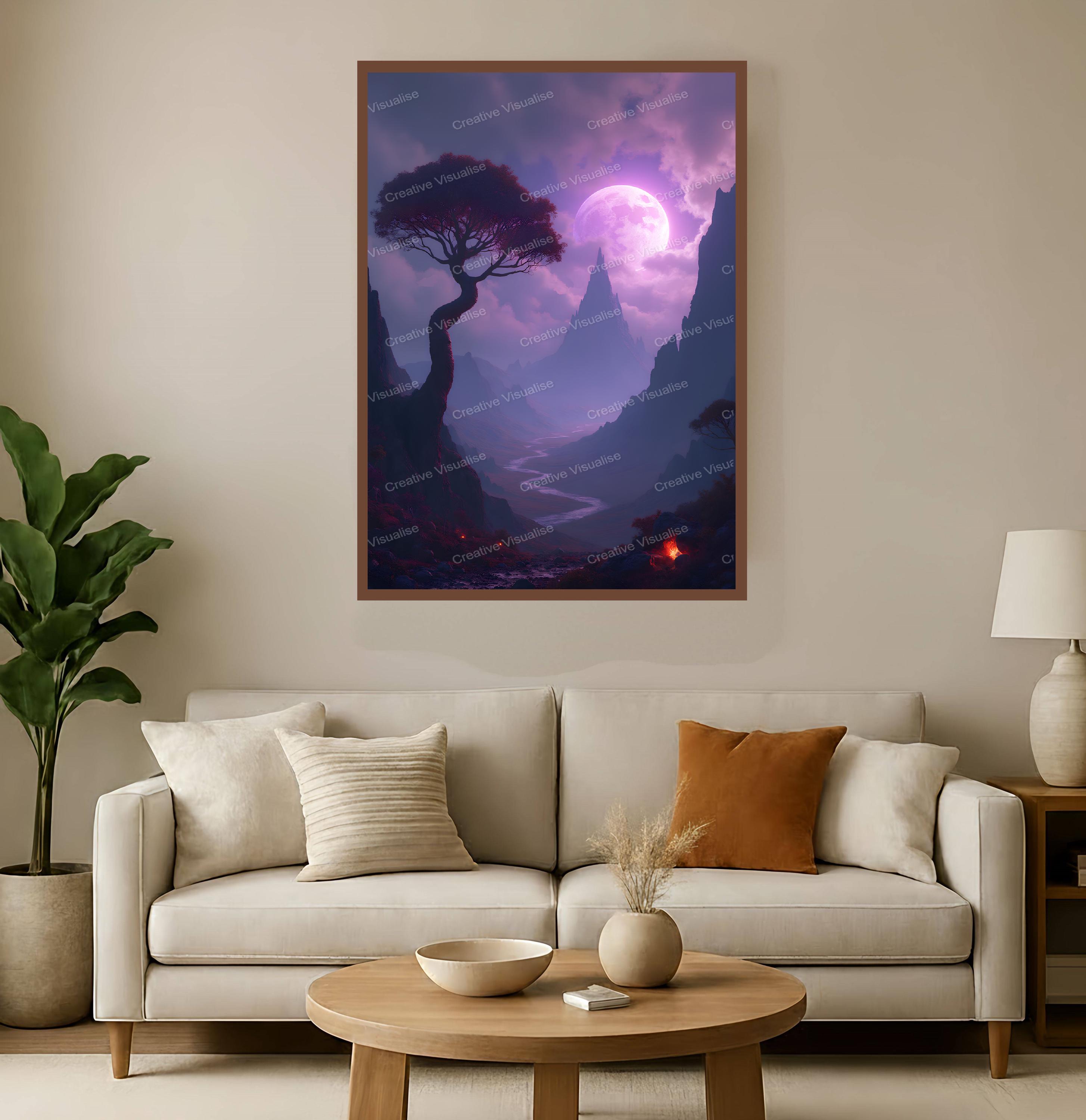 A moon landscape wall art digital print that can be easily downloaded and printed (not a physical item for delivery). The details of the digitally received images are about 11000 × 16000 pixels, 300 DPI, JPEG and PDF formats, AI artwork, very high resolution without a watermark, and large enough for professional posters, canvas prints, and wall decor. Please send me a message if you need another file format after the original files' delivery. This price is for personal use! For commercial use, please send me a message.