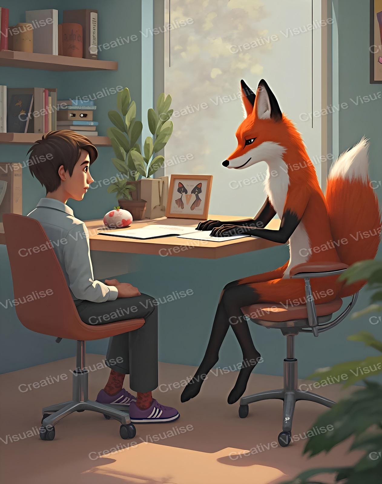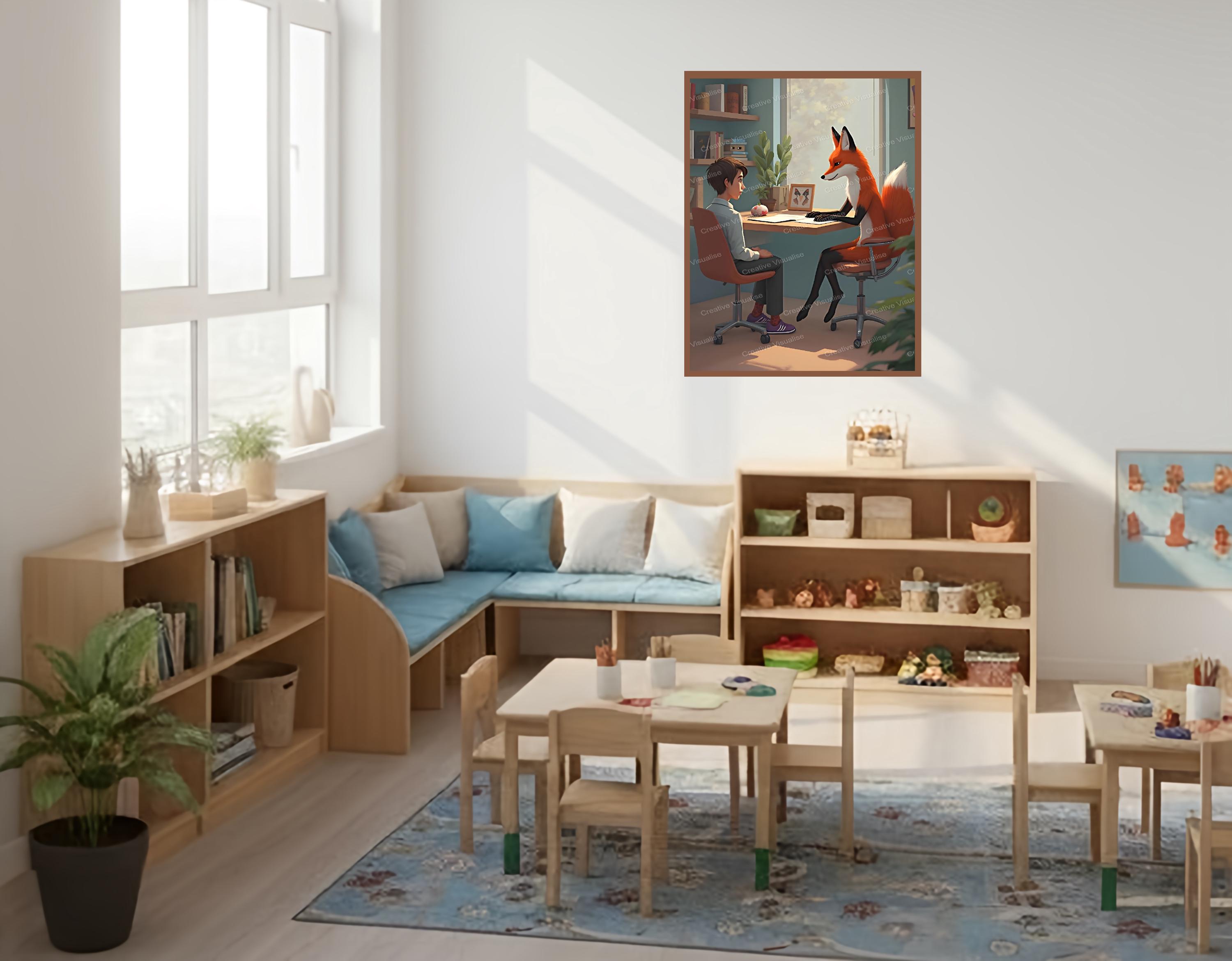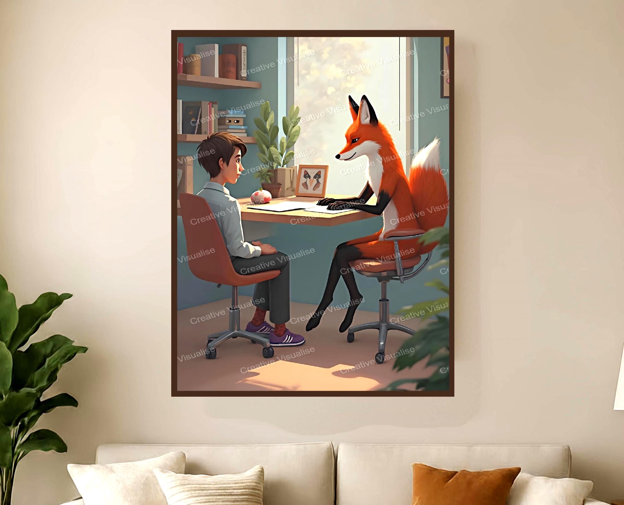 A Fox as an Instructor digital print that can be easily downloaded and printed (not a physical item for delivery). The details of the digitally received images are about 11000 × 16000 pixels, 300 DPI, JPEG and PDF formats, AI artwork, very high resolution without a watermark, and large enough for professional posters, canvas prints, and wall decor. Please send me a message if you need another file format after the original files' delivery. This price is for personal use! For commercial use, please send me a message.