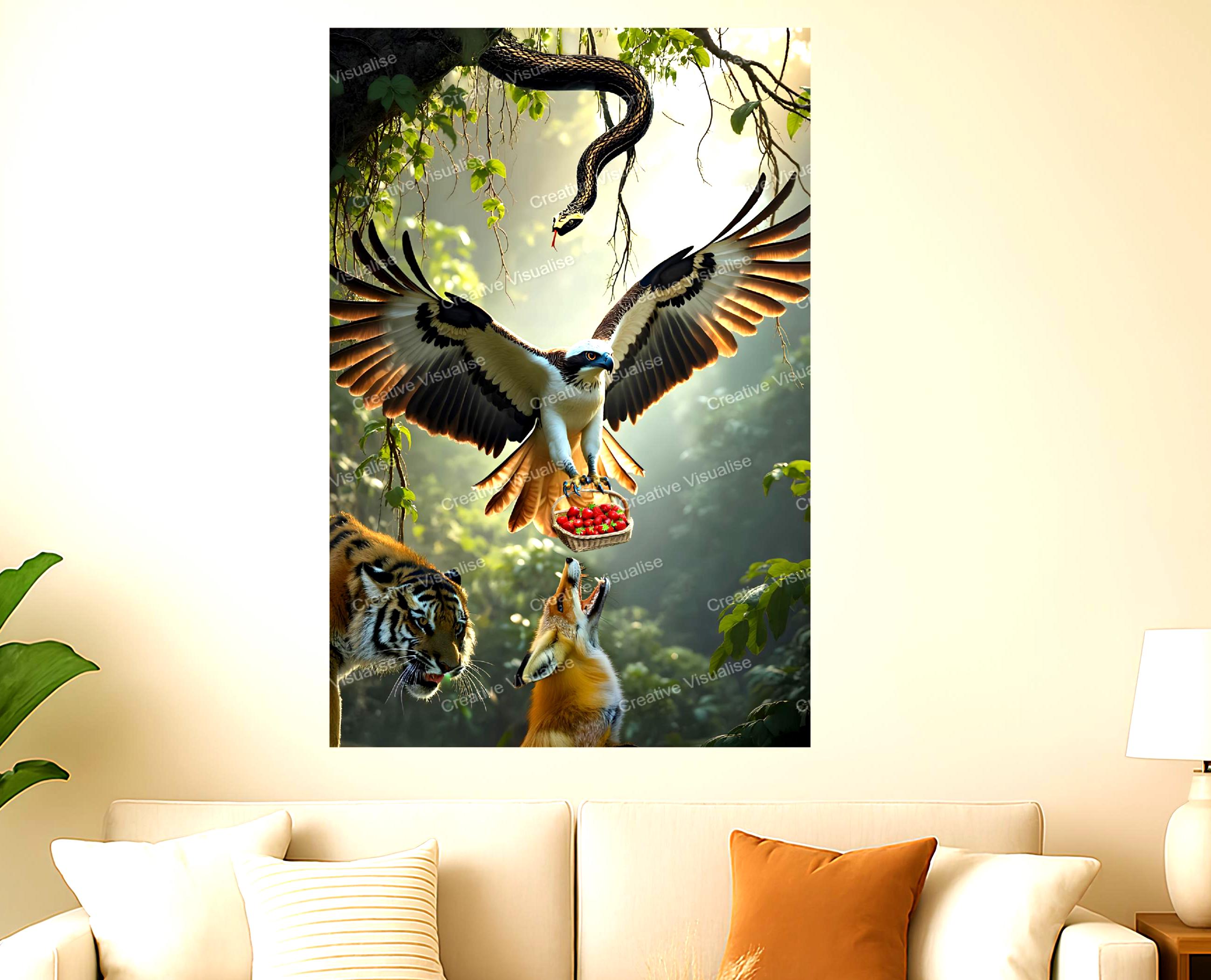 A wild animal portrait digital print that can be easily downloaded and printed (not a physical item for delivery). The details of the digitally received images are about 11000 × 16000 pixels, 300 DPI, JPEG and PDF formats, AI artwork, very high resolution without a watermark, and large enough for professional posters, canvas prints, and wall decor. Please send me a message if you need another file format after the original files' delivery. This price is for personal use! For commercial use, please send me a message.
