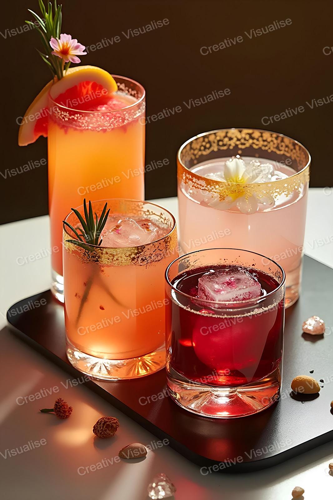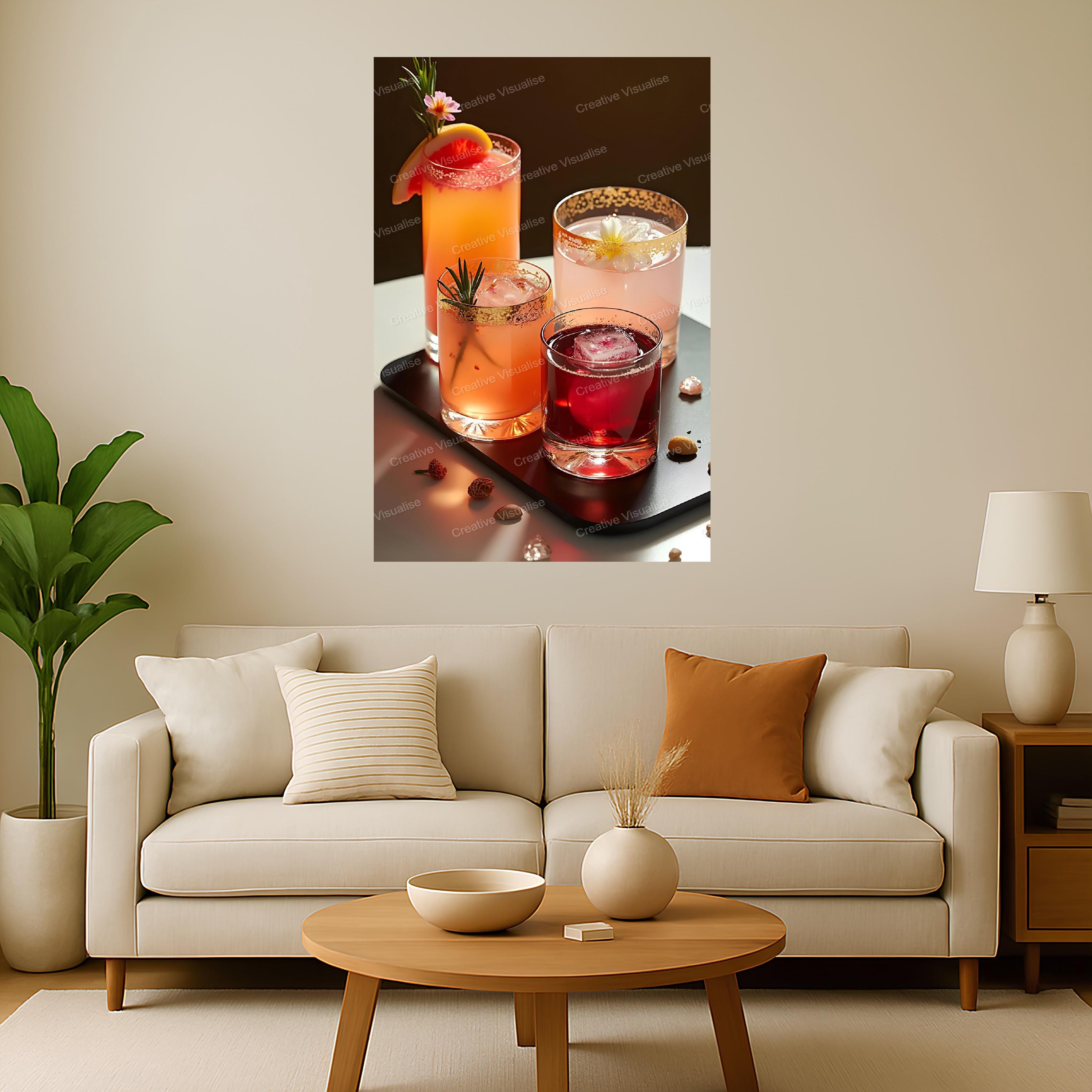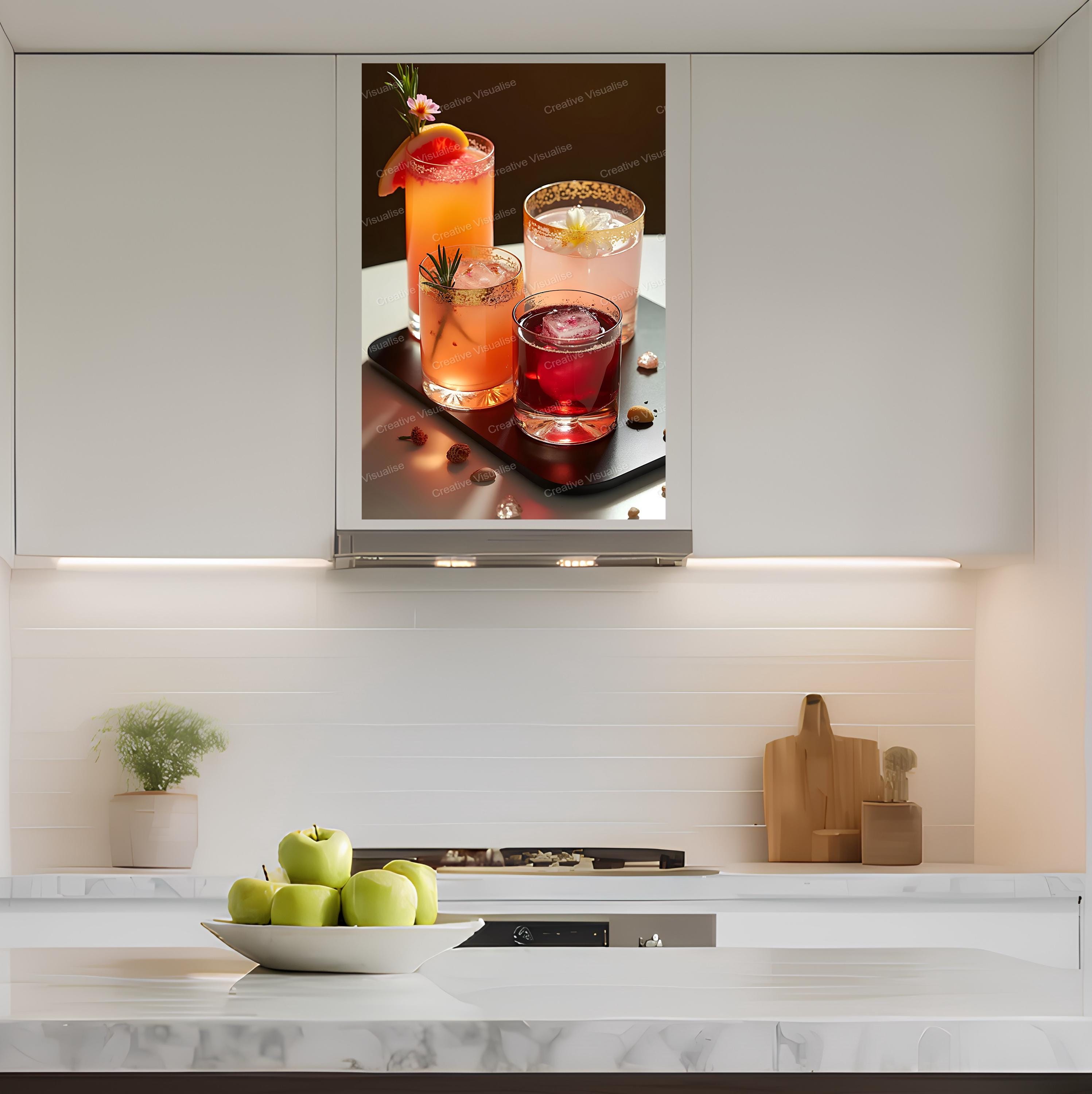 A digital photo of juices and cocktails that can be easily downloaded and printed (not a physical item for delivery).