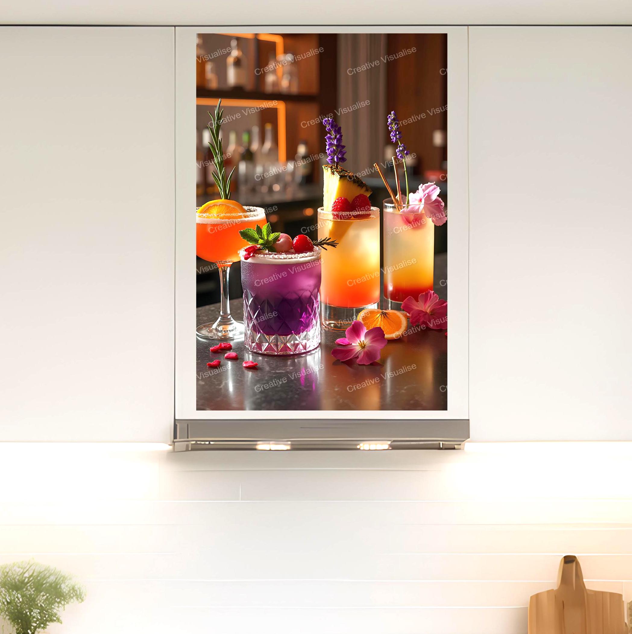 A digital photo of juices and cocktails that can be easily downloaded and printed (not a physical item for delivery).