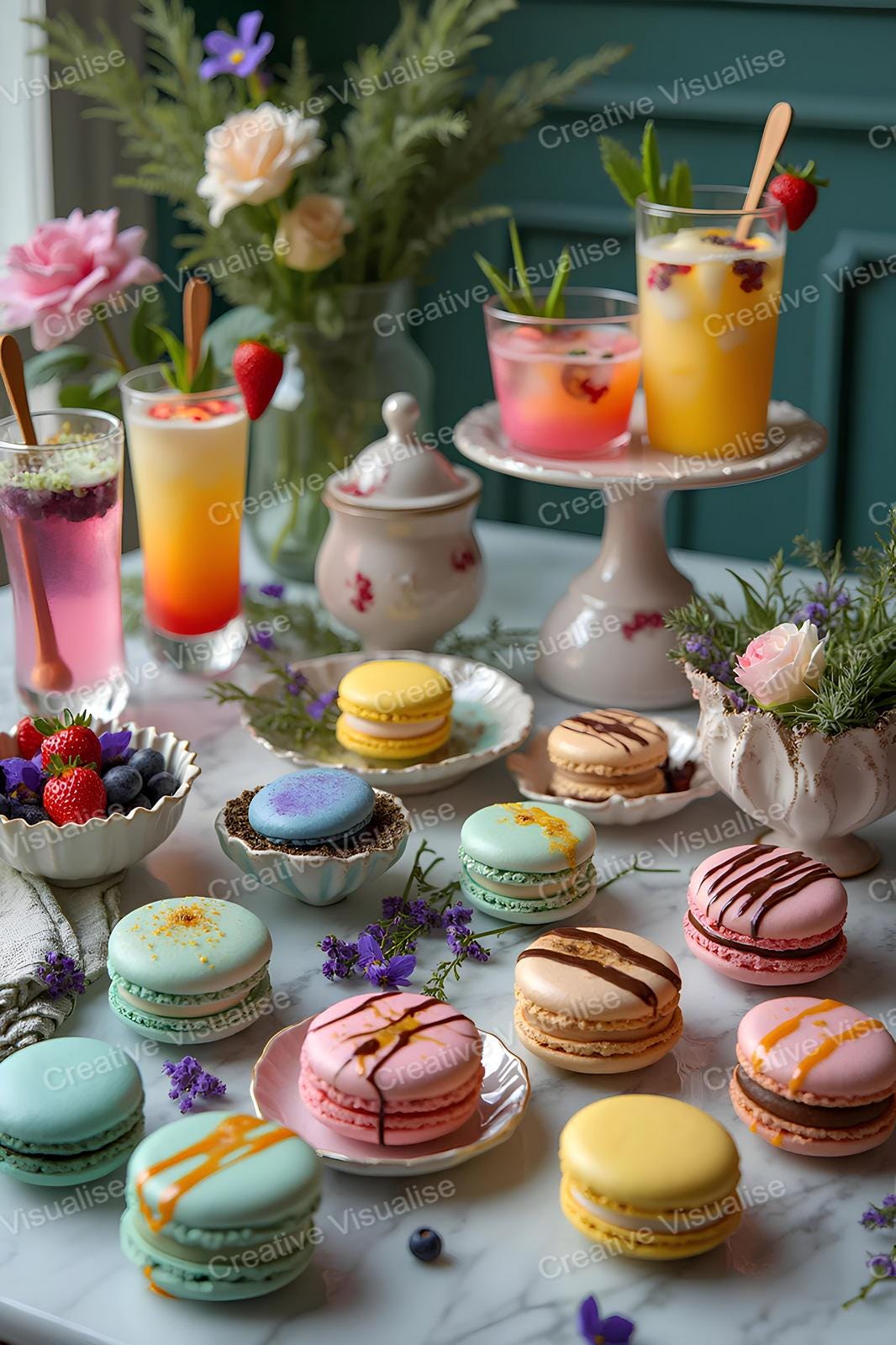 A digital photo of juices and sweets that can be easily downloaded and printed (not a physical item for delivery). The details of the digitally received image are about 11000 × 16000 pixels, 300 DPI, JPEG and PDF formats, AI artwork, very high resolution without a watermark, and large enough for professional posters, canvas prints, and wall decor. Please send me a message if you need another file format after the original files' delivery. This price is for personal use! For commercial use, please send me a message.