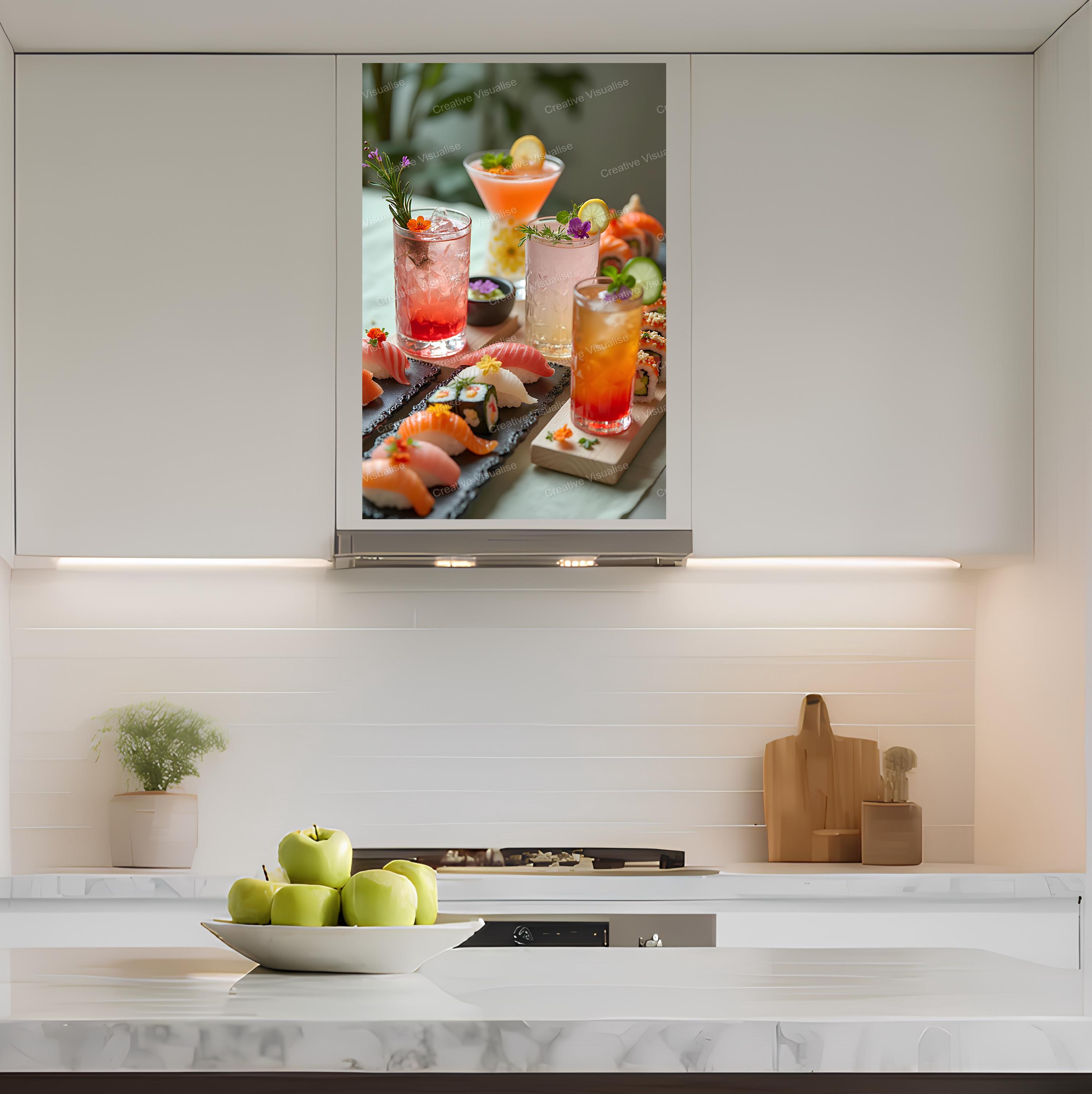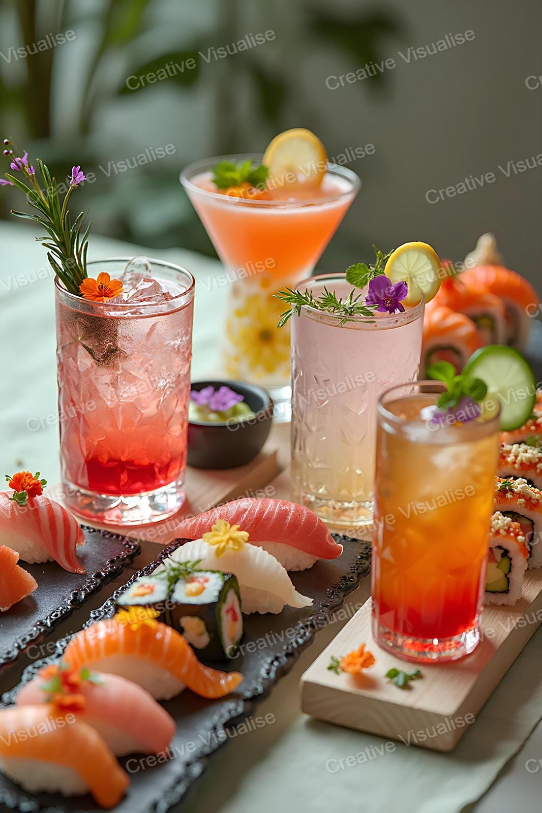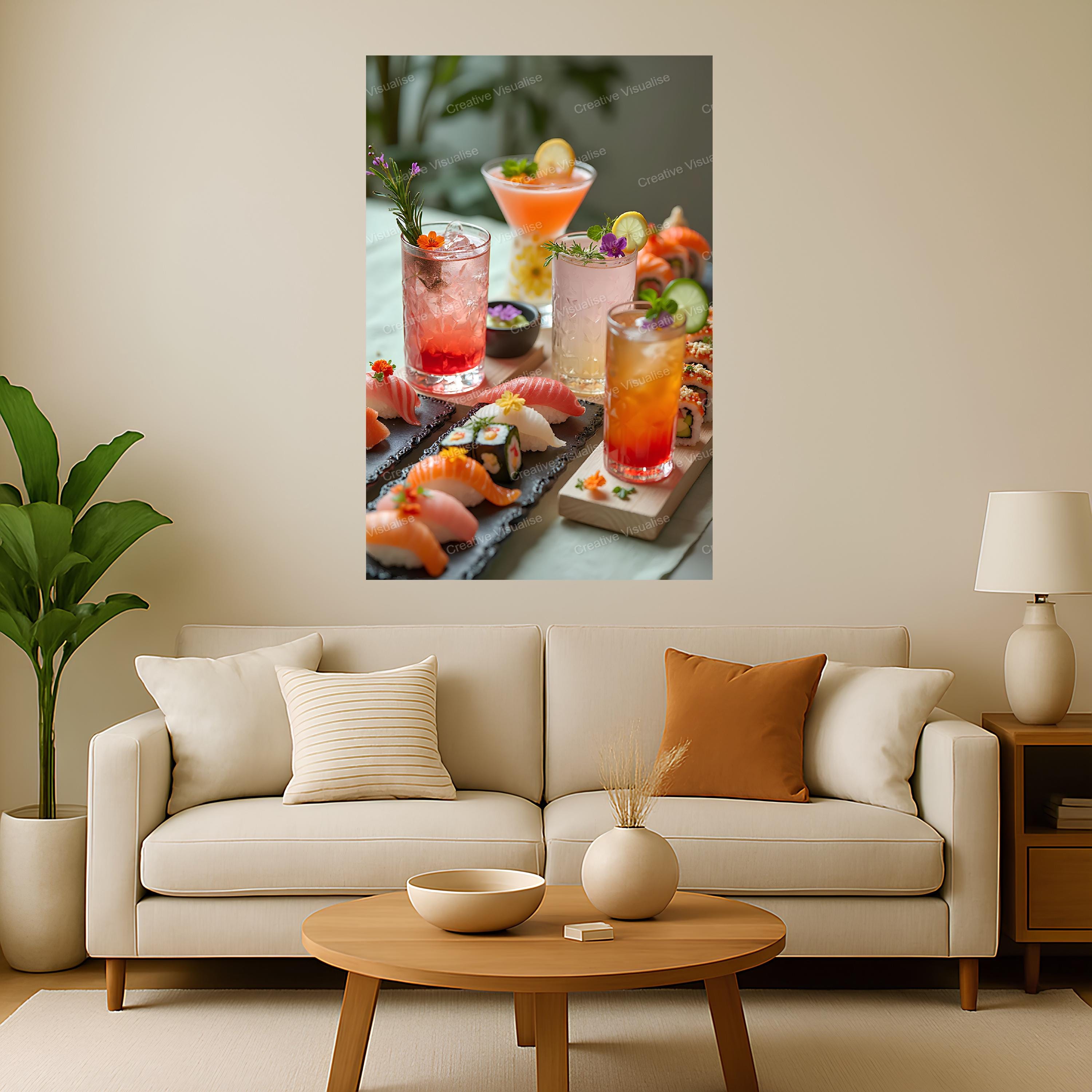 A table of sushi and drinks that can be easily downloaded and printed (not a physical item for delivery). The details of the digitally received image are about 11000 × 16000 pixels, 300 DPI, JPEG and PDF formats, AI artwork, very high resolution without a watermark, and large enough for professional posters, canvas prints, and wall decor. Please send me a message if you need another file format after the original files' delivery. This price is for personal use! For commercial use, please send me a message.