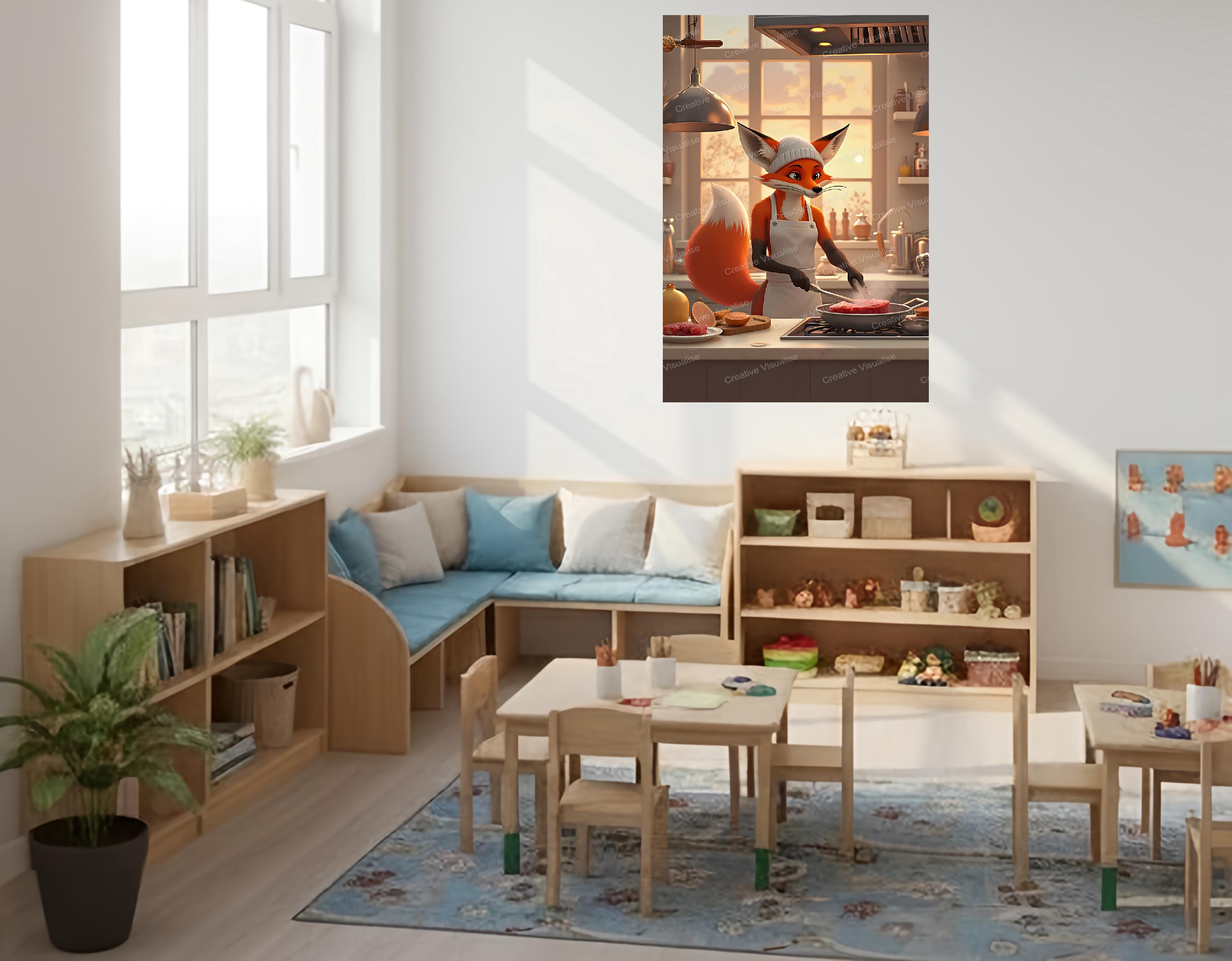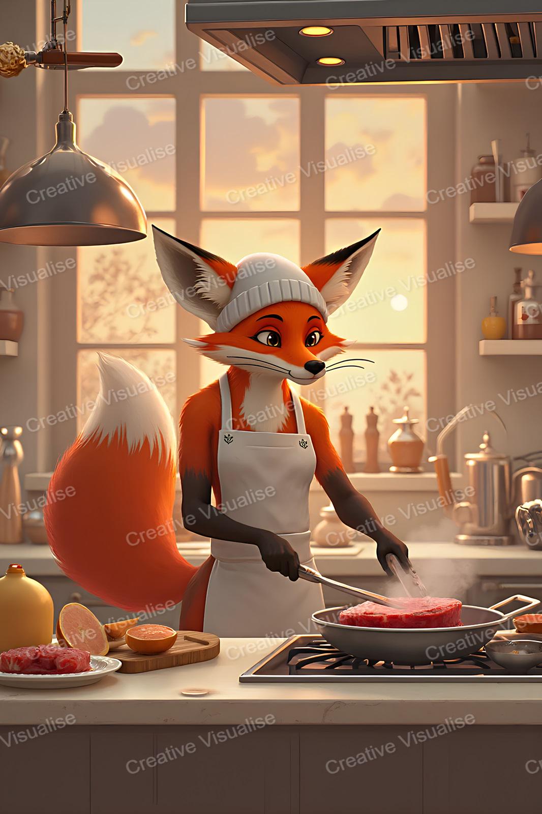 A digital photo of Chef Fox that can be easily downloaded and printed (not a physical item for delivery). The details of the digitally received image are about 11000 × 16000 pixels, 300 DPI, JPEG and PDF formats, AI artwork, very high resolution without a watermark, and large enough for professional posters, canvas prints, and wall decor. Please send me a message if you need another file format after the original files' delivery. This price is for personal use! For commercial use, please send me a message.