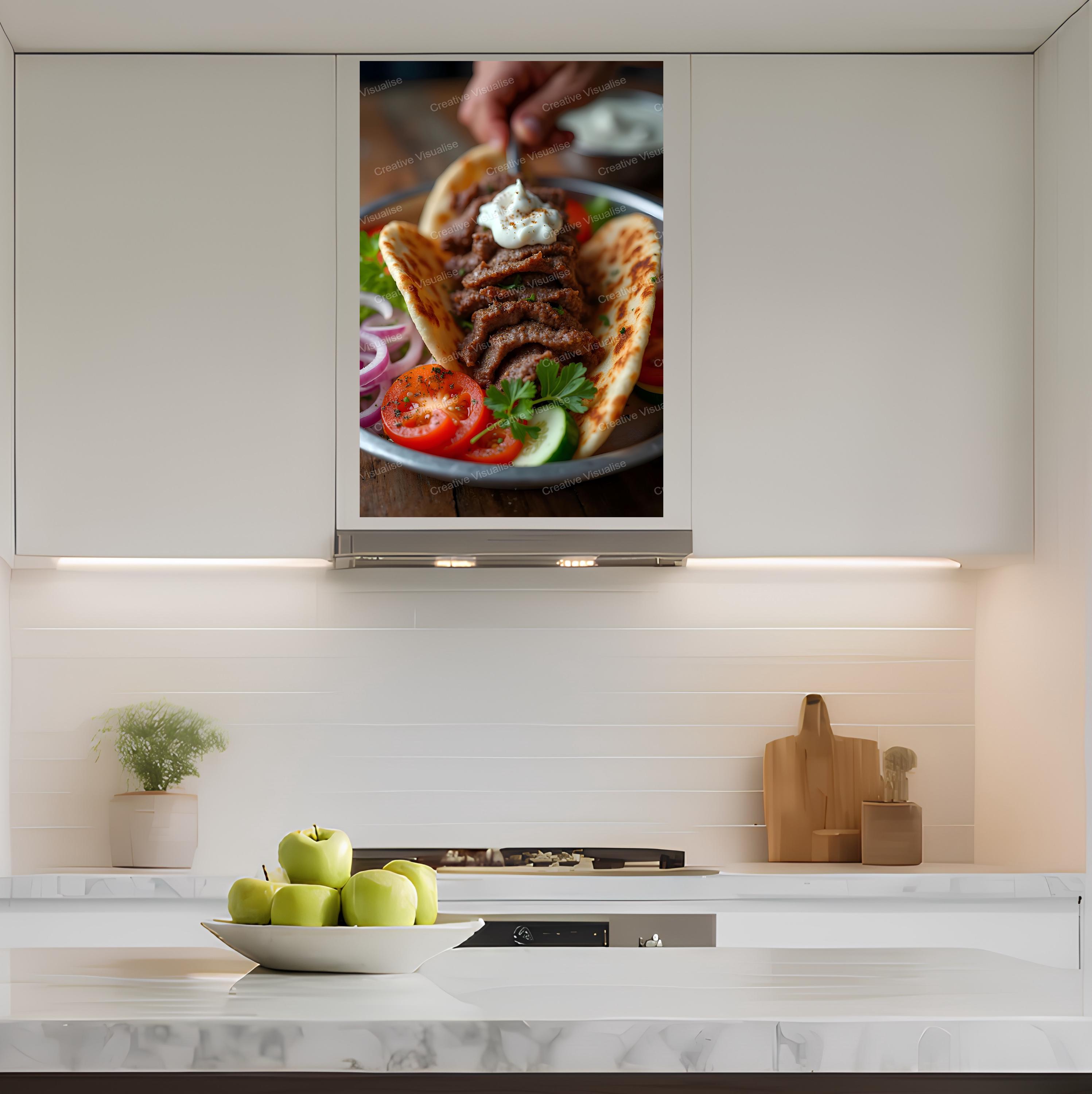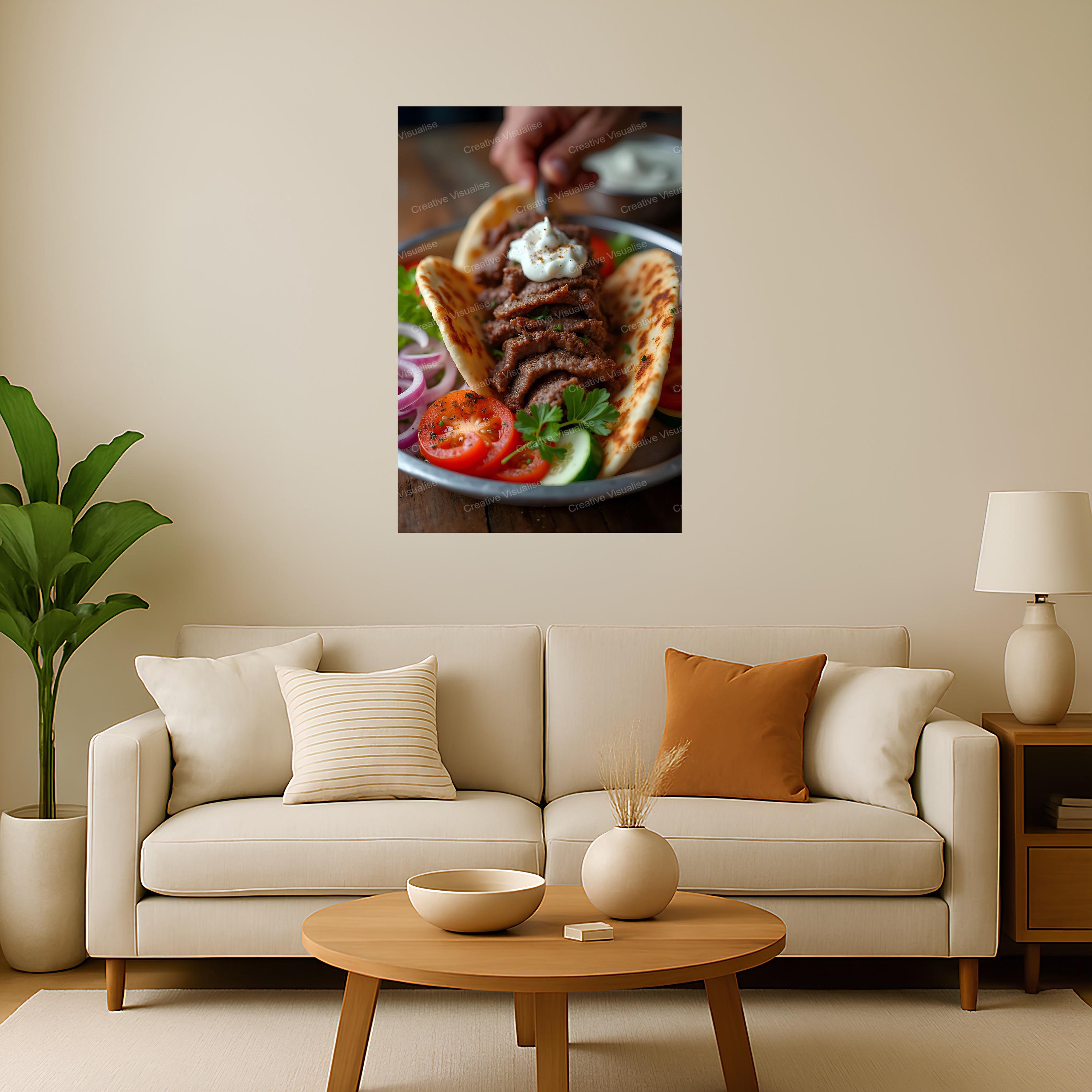 A digital photo of a kebab table that can be easily downloaded and printed (not a physical item for delivery). The details of the digitally received image are about 11000 × 16000 pixels, 300 DPI, JPEG and PDF formats, AI artwork, very high resolution without a watermark, and large enough for professional posters, canvas prints, and wall decor. Please send me a message if you need another file format after the original files' delivery. This price is for personal use! For commercial use, please send me a message.
