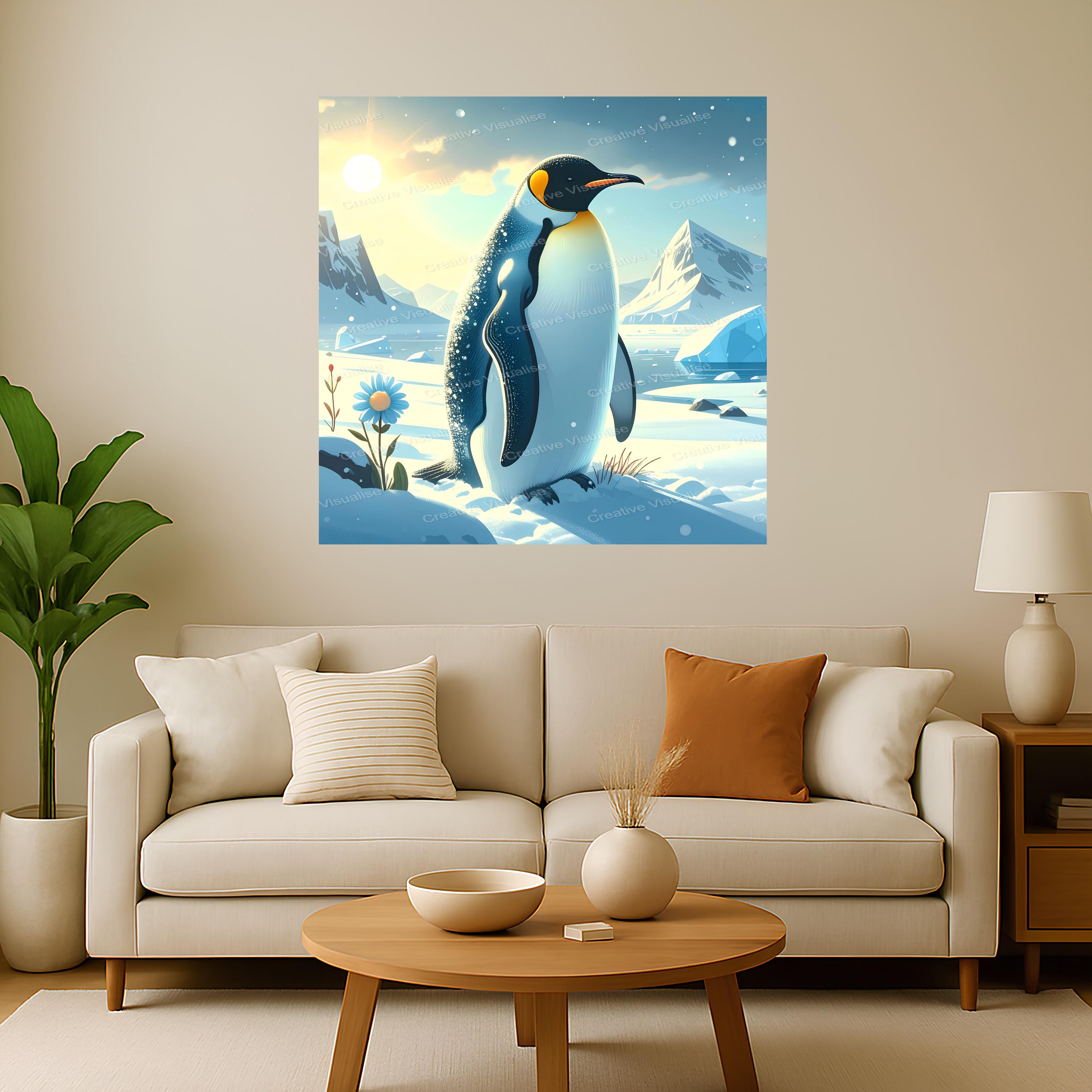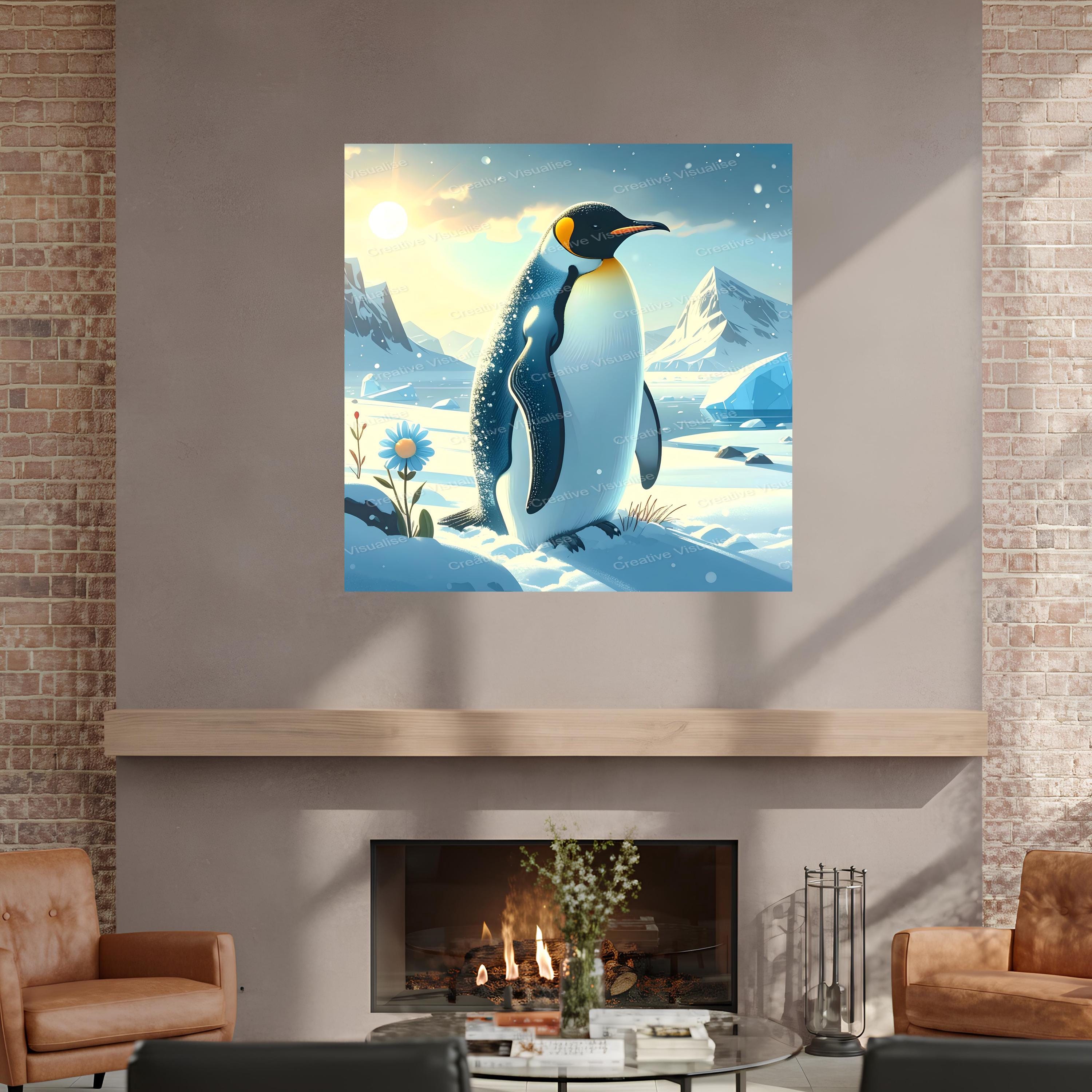A digital photo of a penguin and flower that can be easily downloaded and printed (not a physical item for delivery). The details of the digitally received image are about 14000 × 14000 pixels, 300 DPI, JPEG and PDF formats, AI artwork, very high resolution without a watermark, and large enough for professional posters, canvas prints, and wall decor. Please send me a message if you need another file format after the original files' delivery. This price is for personal use! For commercial use, please send me a message.