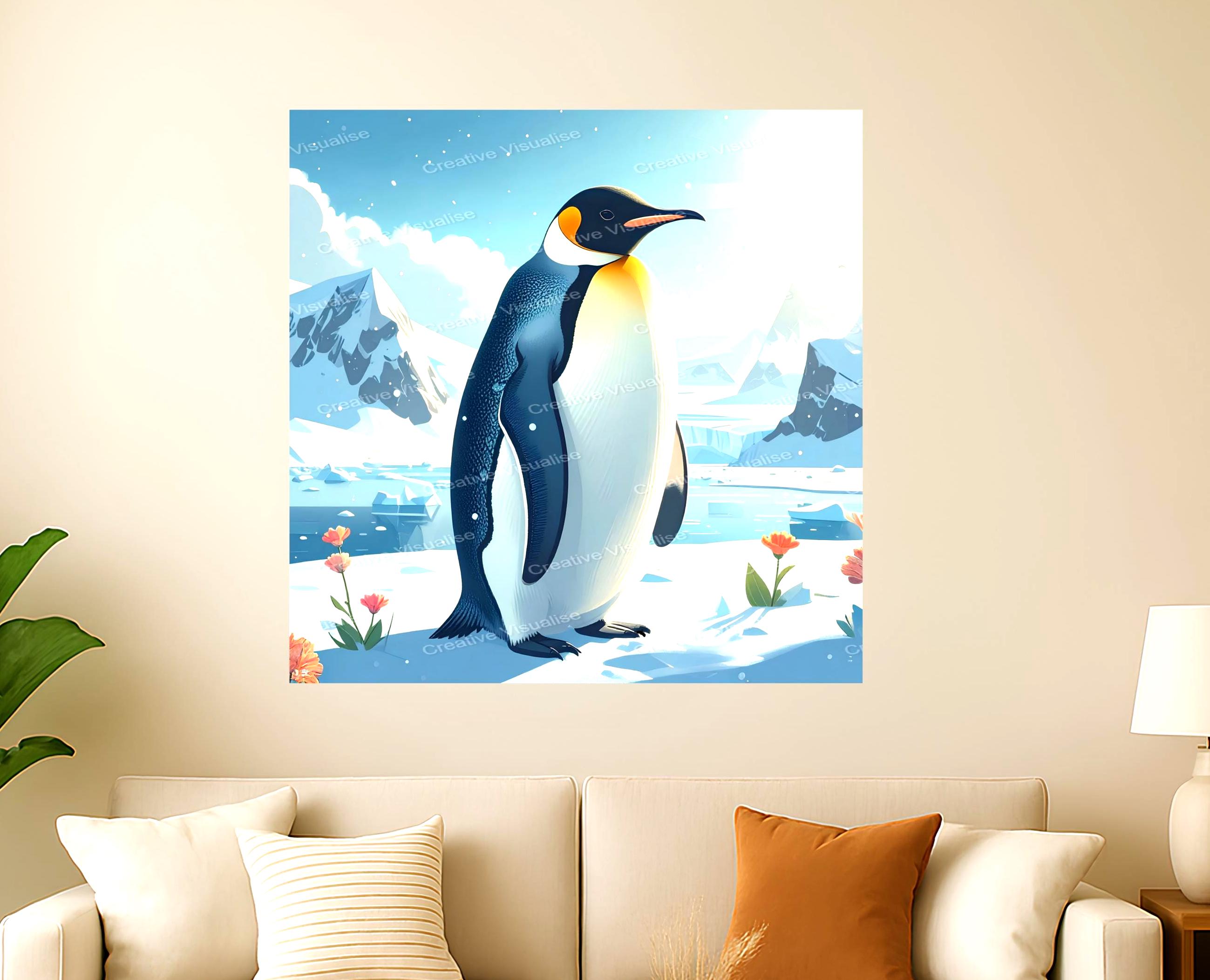 A digital photo of a penguin and flower that can be easily downloaded and printed (not a physical item for delivery). The details of the digitally received image are about 14000 × 14000 pixels, 300 DPI, JPEG and PDF formats, AI artwork, very high resolution without a watermark, and large enough for professional posters, canvas prints, and wall decor. Please send me a message if you need another file format after the original files' delivery. This price is for personal use! For commercial use, please send me a message.
