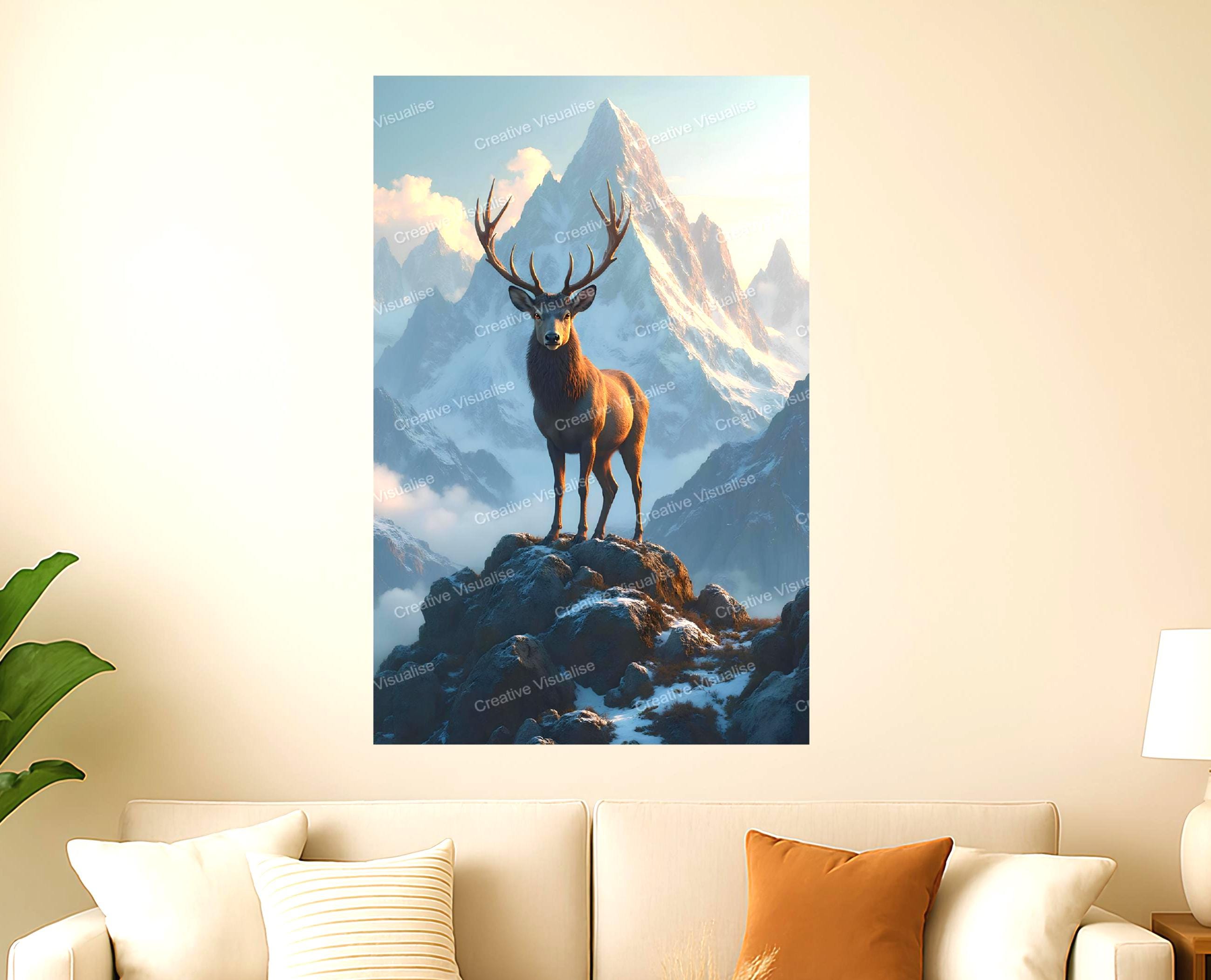 A digital photo of caribou deer in winter that can be easily downloaded and printed (not a physical item for delivery). The details of the digitally received image are about 11000 × 16000 pixels, 300 DPI, JPEG and PDF formats, AI artwork, very high resolution without a watermark, and large enough for professional posters, canvas prints, and wall decor. Please send me a message if you need another file format after the original files' delivery. This price is for personal use! For commercial use, please send me a message.