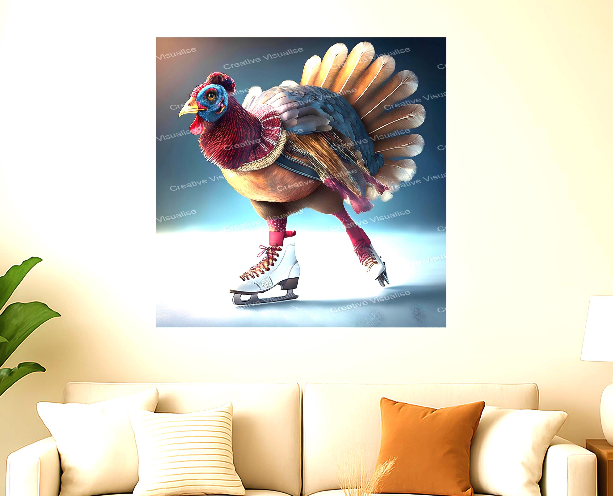 Fantasy Turkey Ice Skating in Winter Clothes – Whimsical Holiday Animal Digital Artwork