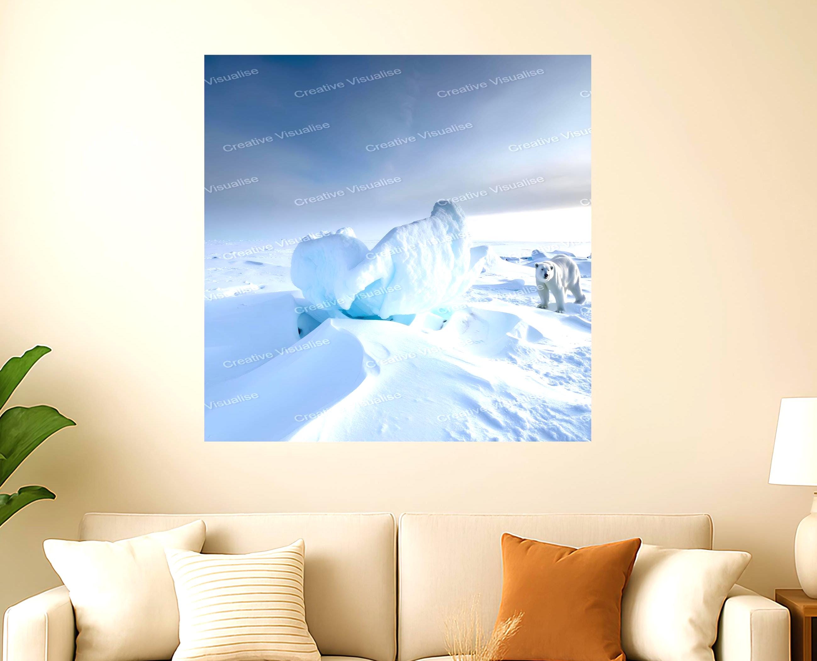 A digital photo of a polar bear and snow that can be easily downloaded and printed (not a physical item for delivery). The details of the digitally received image are about 14000 × 14000 pixels, 300 DPI, JPEG and PDF formats, AI artwork, very high resolution without a watermark, and large enough for professional posters, canvas prints, and wall decor. Please send me a message if you need another file format after the original files' delivery. This price is for personal use! For commercial use, please send me a message.