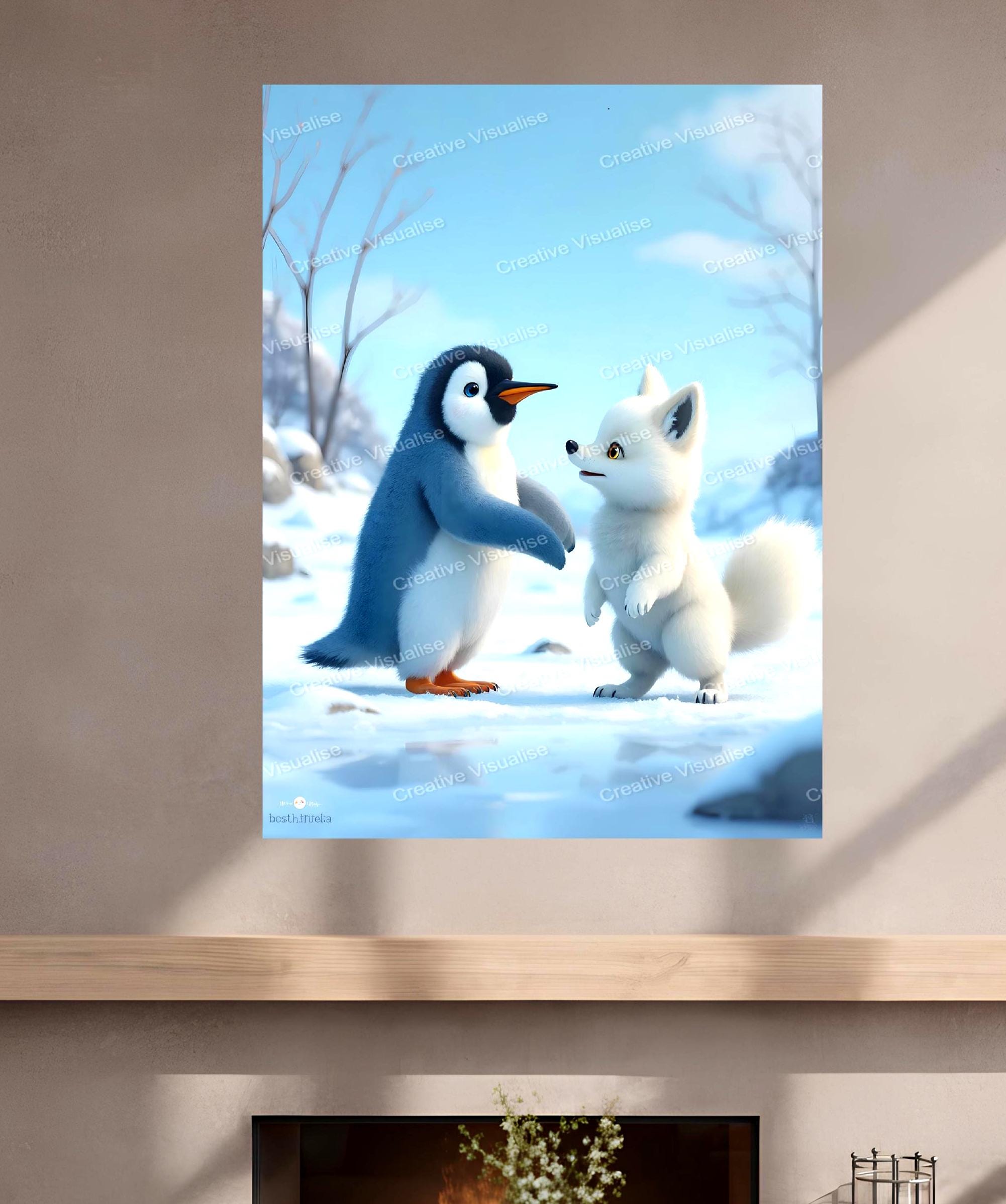 Arctic Fox and a Penguin: High-Resolution Digital Prints (11000x16000 pixels, 300 DPI, JPEG-PDF)