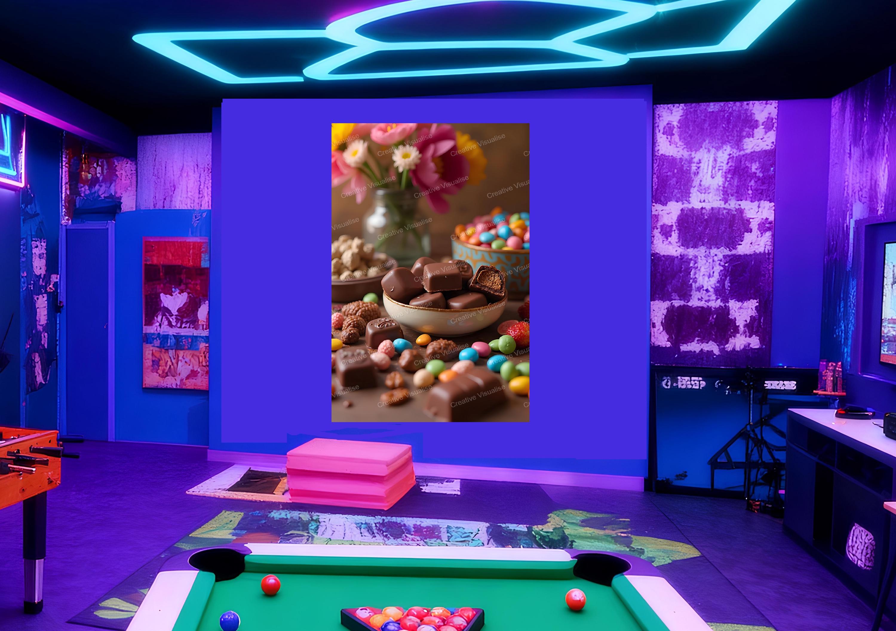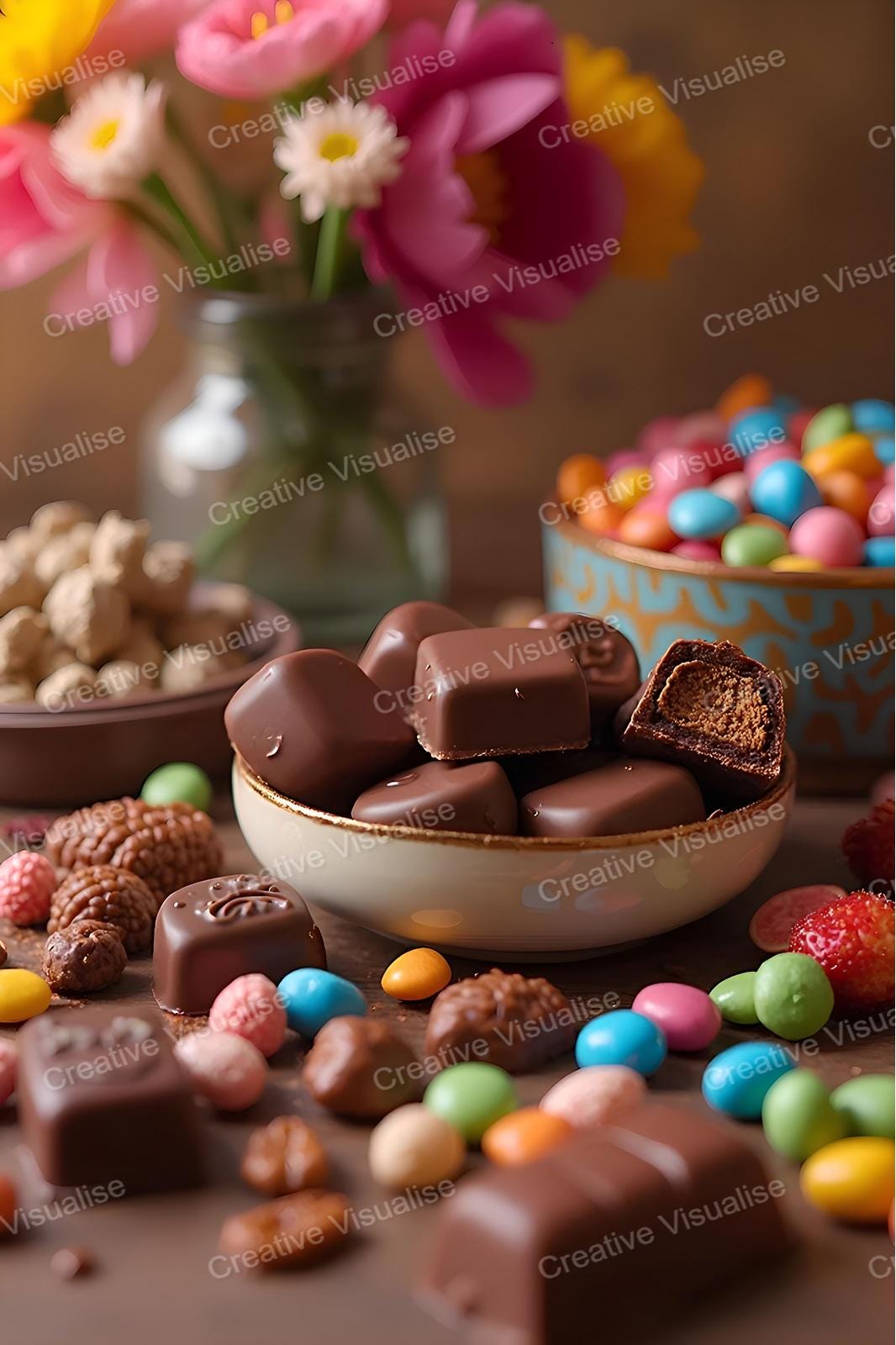 A digital photo of Chocolate and Candy that can be easily downloaded and printed (not a physical item for delivery). The details of the digitally received image are about 11000 × 16000 pixels, 300 DPI, JPEG and PDF formats, AI artwork, very high resolution without a watermark, and large enough for professional posters, canvas prints, and wall decor. Please send me a message if you need another file format after the original files' delivery. This price is for personal use! For commercial use, please send me a message.