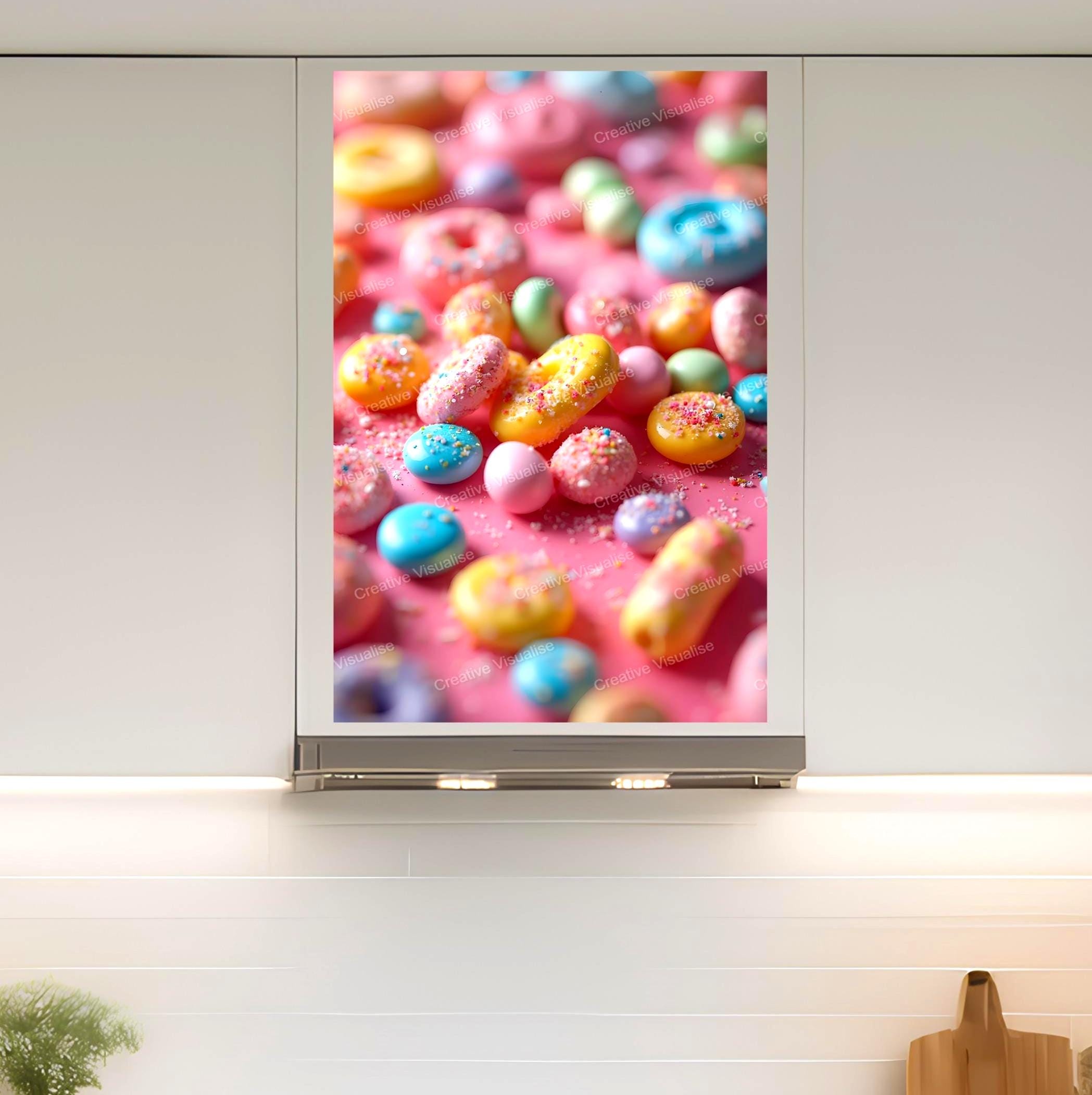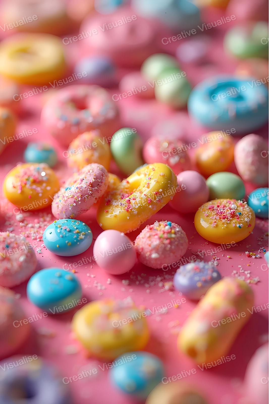 A digital photo of colorful candy that can be easily downloaded and printed (not a physical item for delivery). The details of the digitally received image are about 11000 × 16000 pixels, 300 DPI, JPEG and PDF formats, AI artwork, very high resolution without a watermark, and large enough for professional posters, canvas prints, and wall decor. Please send me a message if you need another file format after the original files' delivery. This price is for personal use! For commercial use, please send me a message.