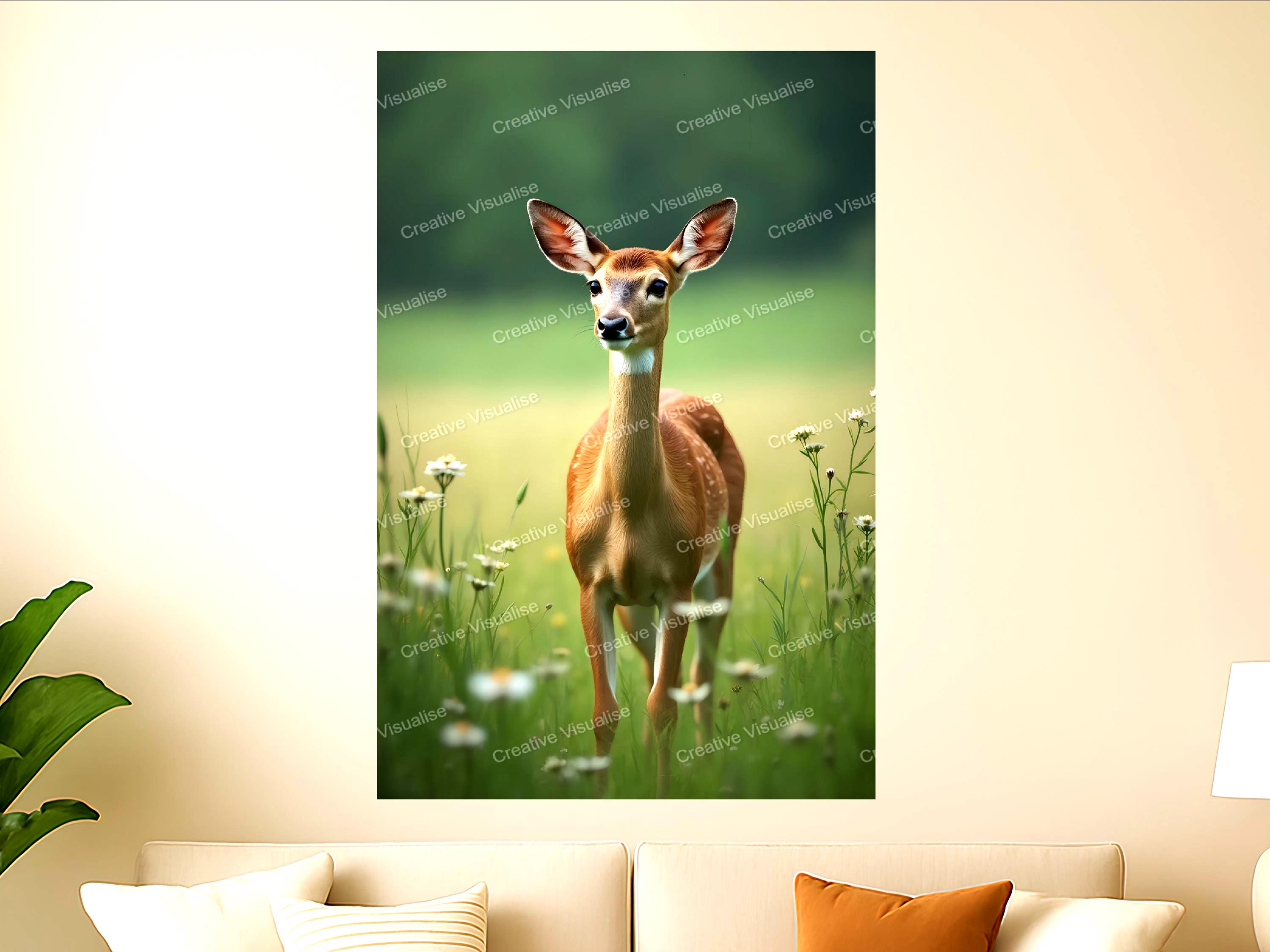 A digital photo of the baby deer landscape that can be easily downloaded and printed (not a physical item for delivery). The details of the digitally received image are about 11000 × 16000 pixels, 300 DPI, JPEG and PDF formats, AI artwork, very high resolution without a watermark, and large enough for professional posters, canvas prints, and wall decor. Please send me a message if you need another file format after the original files' delivery. This price is for personal use! For commercial use, please send me a message.