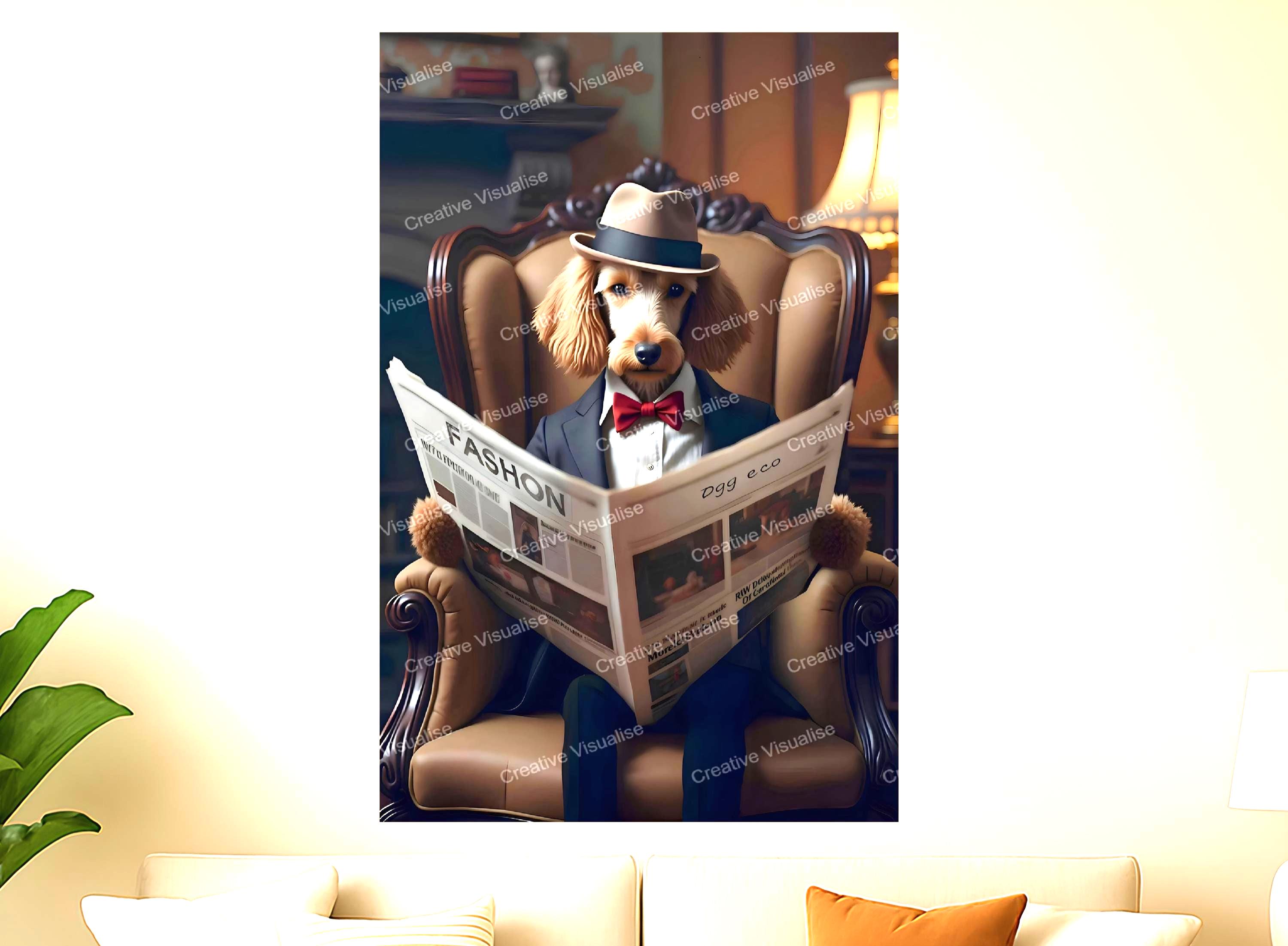 Dog in a suit reading a newspaper: High-Resolution Digital Prints (11000x16000 pixels, 300 DPI, JPEG-PDF)