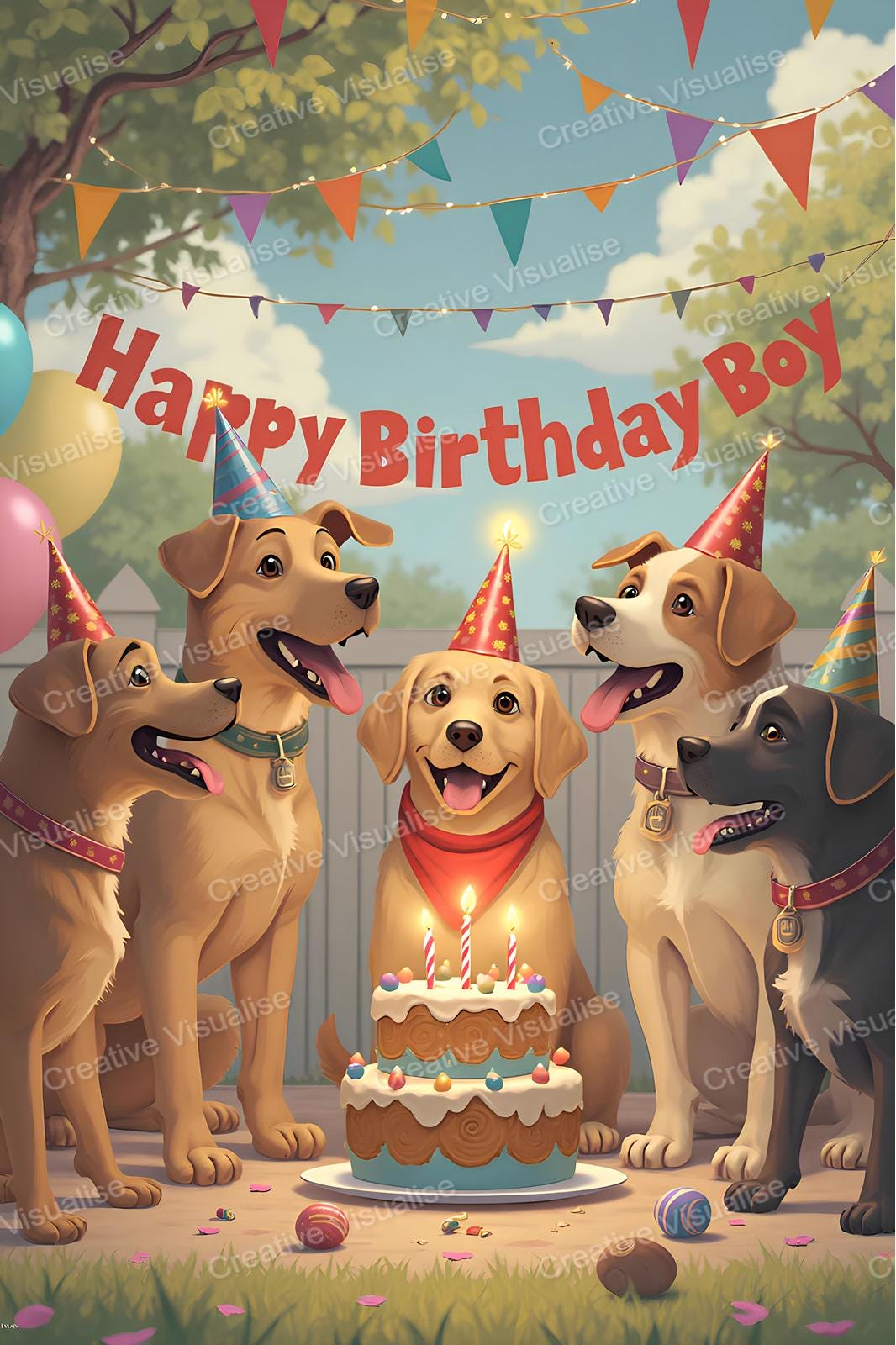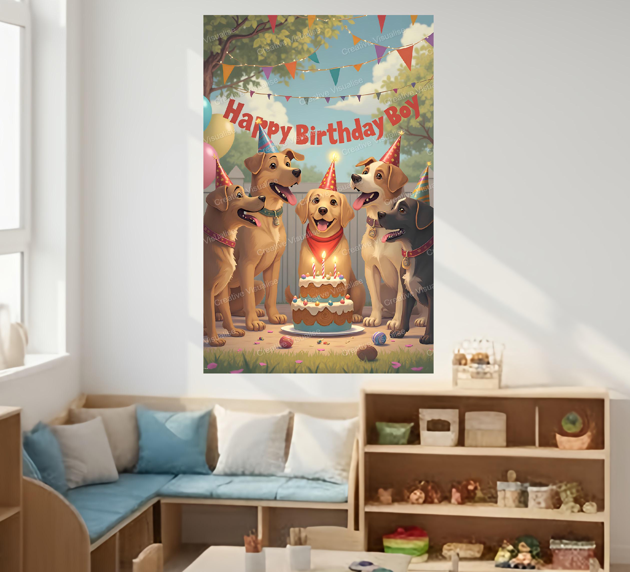 A digital photo of the happy birthday dog photo that can be easily downloaded and printed (not a physical item for delivery). The details of the digitally received image are about 11000 × 16000 pixels, 300 DPI, JPEG and PDF formats, AI artwork, very high resolution without a watermark, and large enough for professional posters, canvas prints, and wall decor. Please send me a message if you need another file format after the original files' delivery. This price is for personal use! For commercial use, please send me a message.
