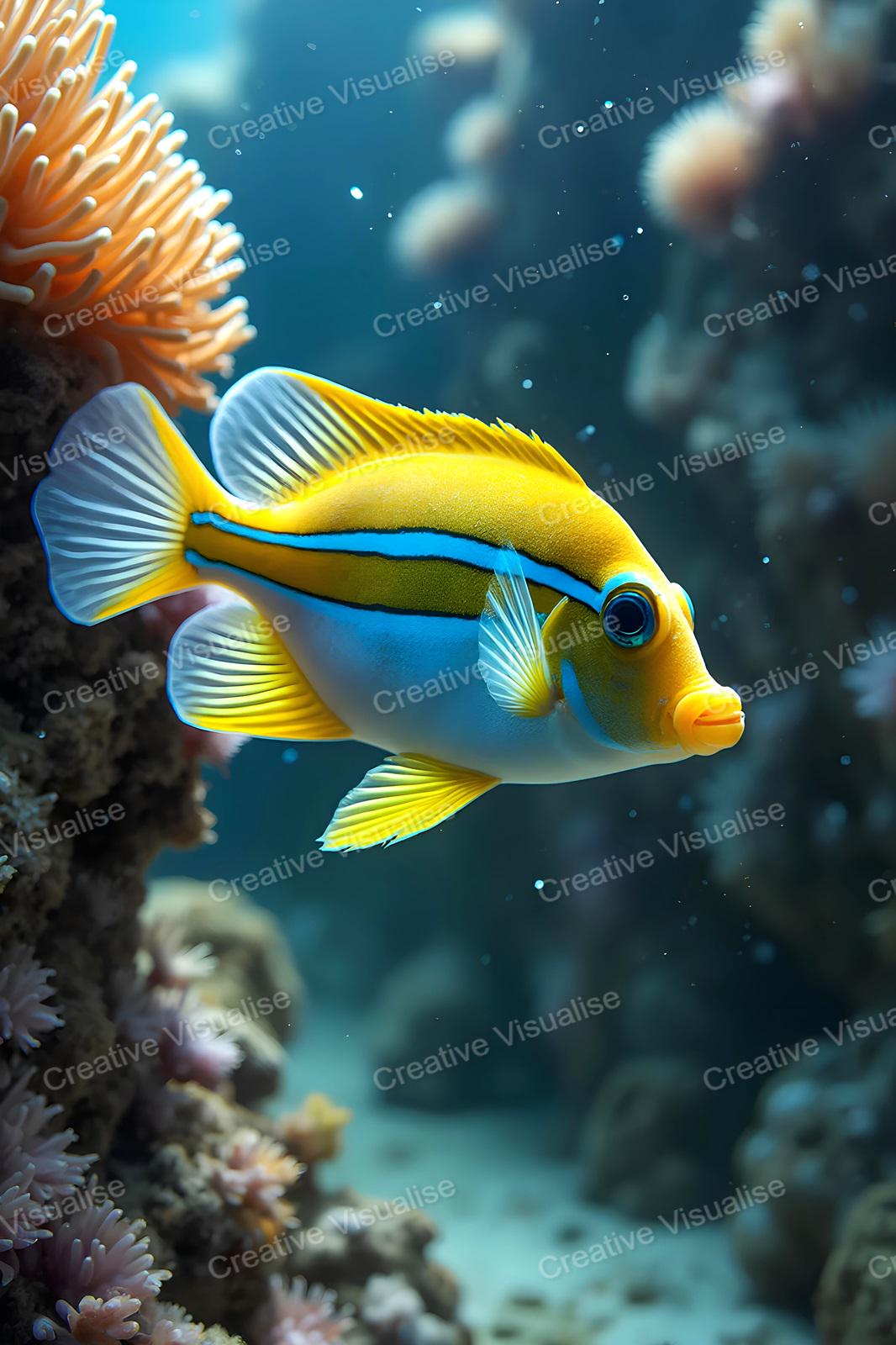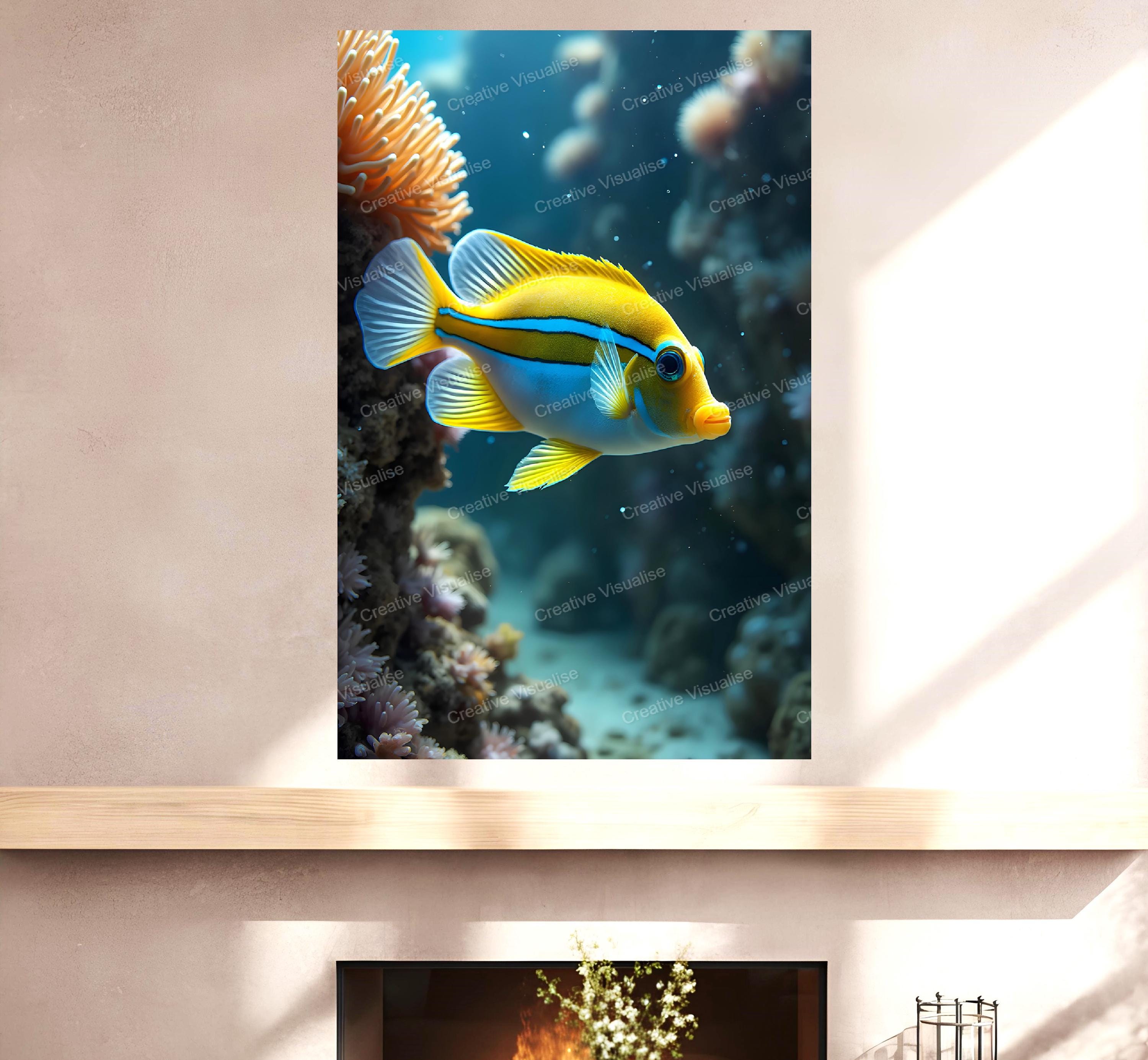 A digital photo of the colorful ornamental fish photo that can be easily downloaded and printed (not a physical item for delivery). The details of the digitally received image are about 11000 × 16000 pixels, 300 DPI, JPEG and PDF formats, AI artwork, very high resolution without a watermark, and large enough for professional posters, canvas prints, and wall decor. Please send me a message if you need another file format after the original files' delivery. This price is for personal use! For commercial use, please send me a message.