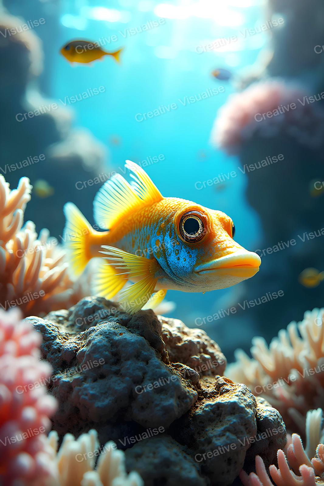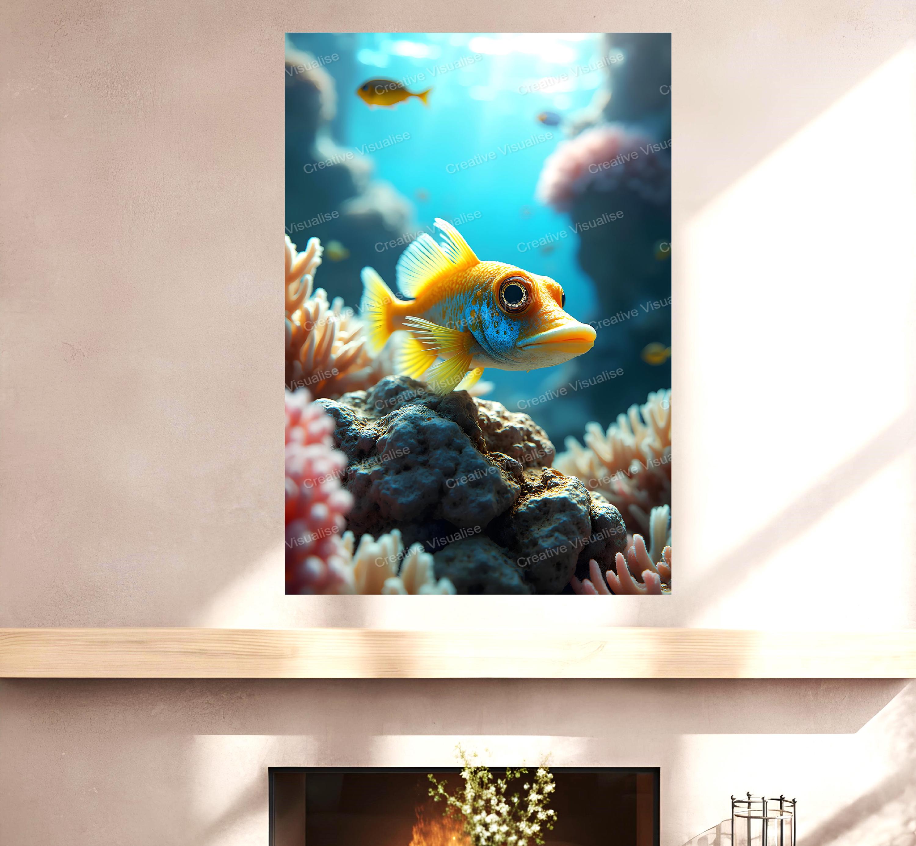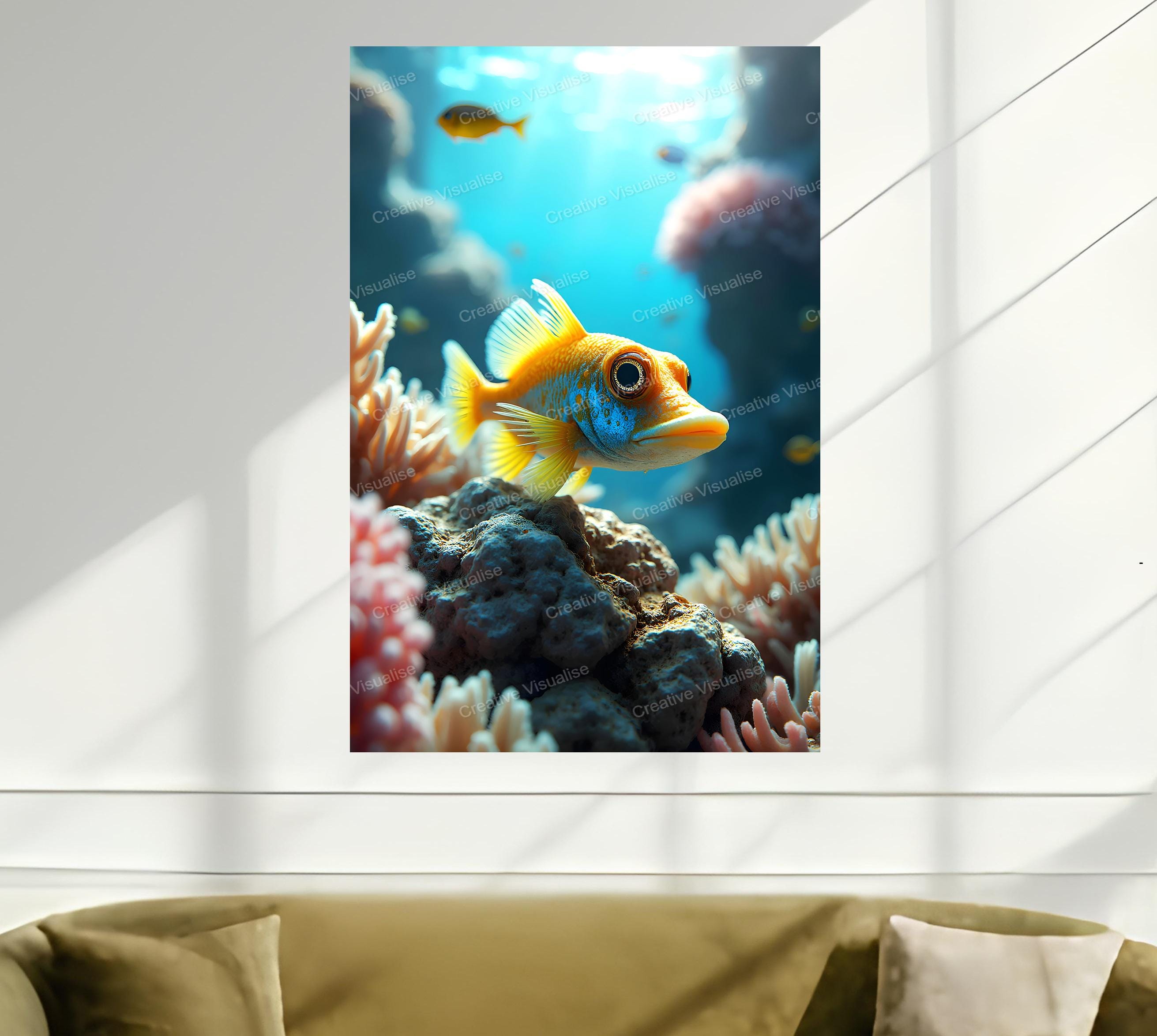 A digital photo of the colorful ornamental sea fish photo that can be easily downloaded and printed (not a physical item for delivery). The details of the digitally received image are about 11000 × 16000 pixels, 300 DPI, JPEG and PDF formats, AI artwork, very high resolution without a watermark, and large enough for professional posters, canvas prints, and wall decor. Please send me a message if you need another file format after the original files' delivery. This price is for personal use! For commercial use, please send me a message.