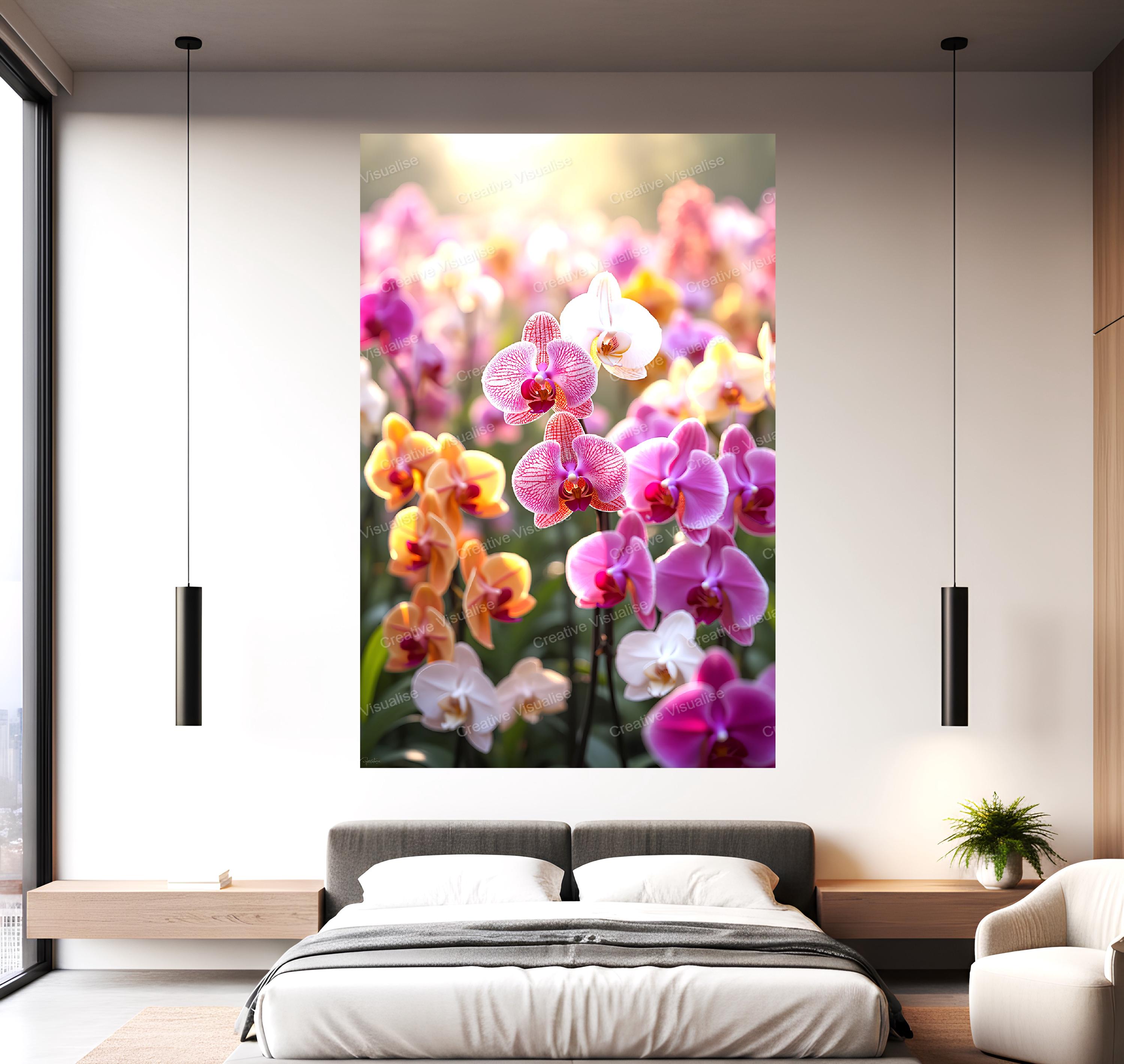 A plain of orchids wall art digital print that can be easily downloaded and printed (not a physical item for delivery). The details of the digitally received images are about 11000 × 16000 pixels, 300 DPI, JPEG and PDF formats, AI artwork, very high resolution without a watermark, and large enough for professional posters, canvas prints, and wall decor. Please send me a message if you need another file format after the original files' delivery. This price is for personal use! For commercial use, please send me a message.