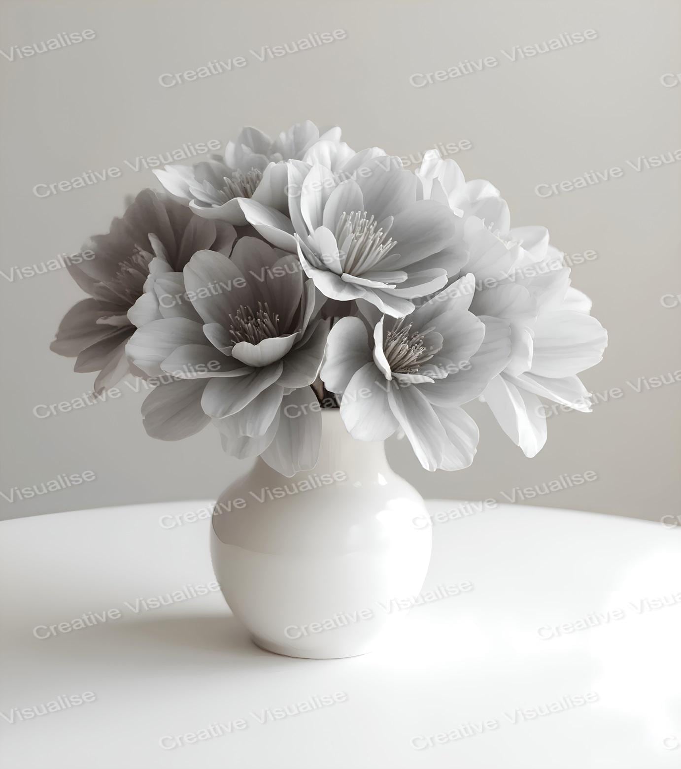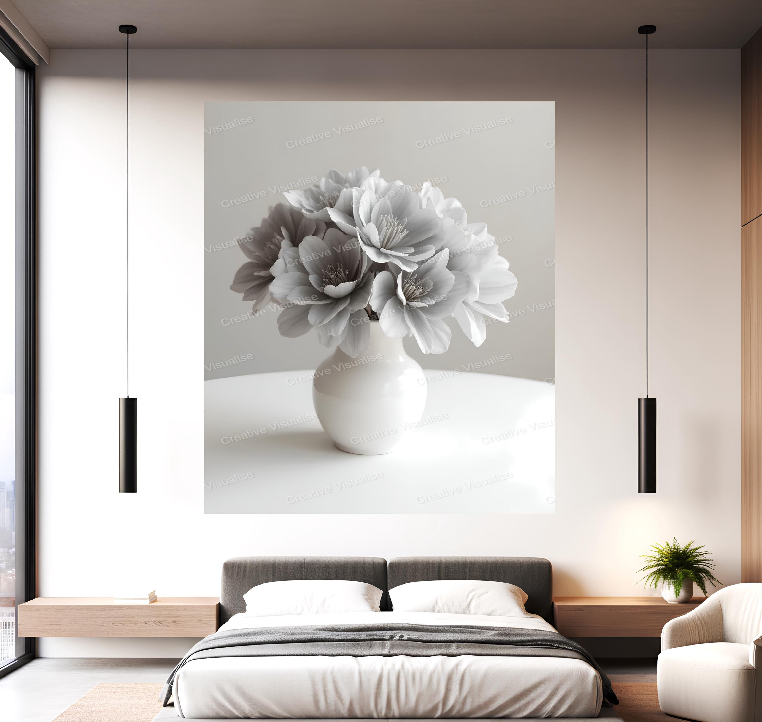 An image of a black and white bouquet wall art digital print that can be easily downloaded and printed (not a physical item for delivery). The details of the digitally received images are about 11000 × 16000 pixels, 300 DPI, JPEG and PDF formats, AI artwork, very high resolution without a watermark, and large enough for professional posters, canvas prints, and wall decor. Please send me a message if you need another file format after the original files' delivery. This price is for personal use! For commercial use, please send me a message.
