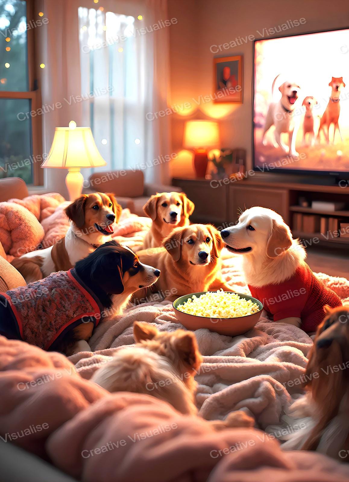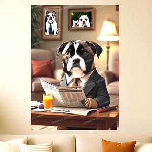 A digital photo of the dog family in the home that can be easily downloaded and printed (not a physical item for delivery). The details of the digitally received image are about 11000 × 16000 pixels, 300 DPI, JPEG and PDF formats, AI artwork, very high resolution without a watermark, and large enough for professional posters, canvas prints, and wall decor. Please send me a message if you need another file format after the original files' delivery. This price is for personal use! For commercial use, please send me a message.
