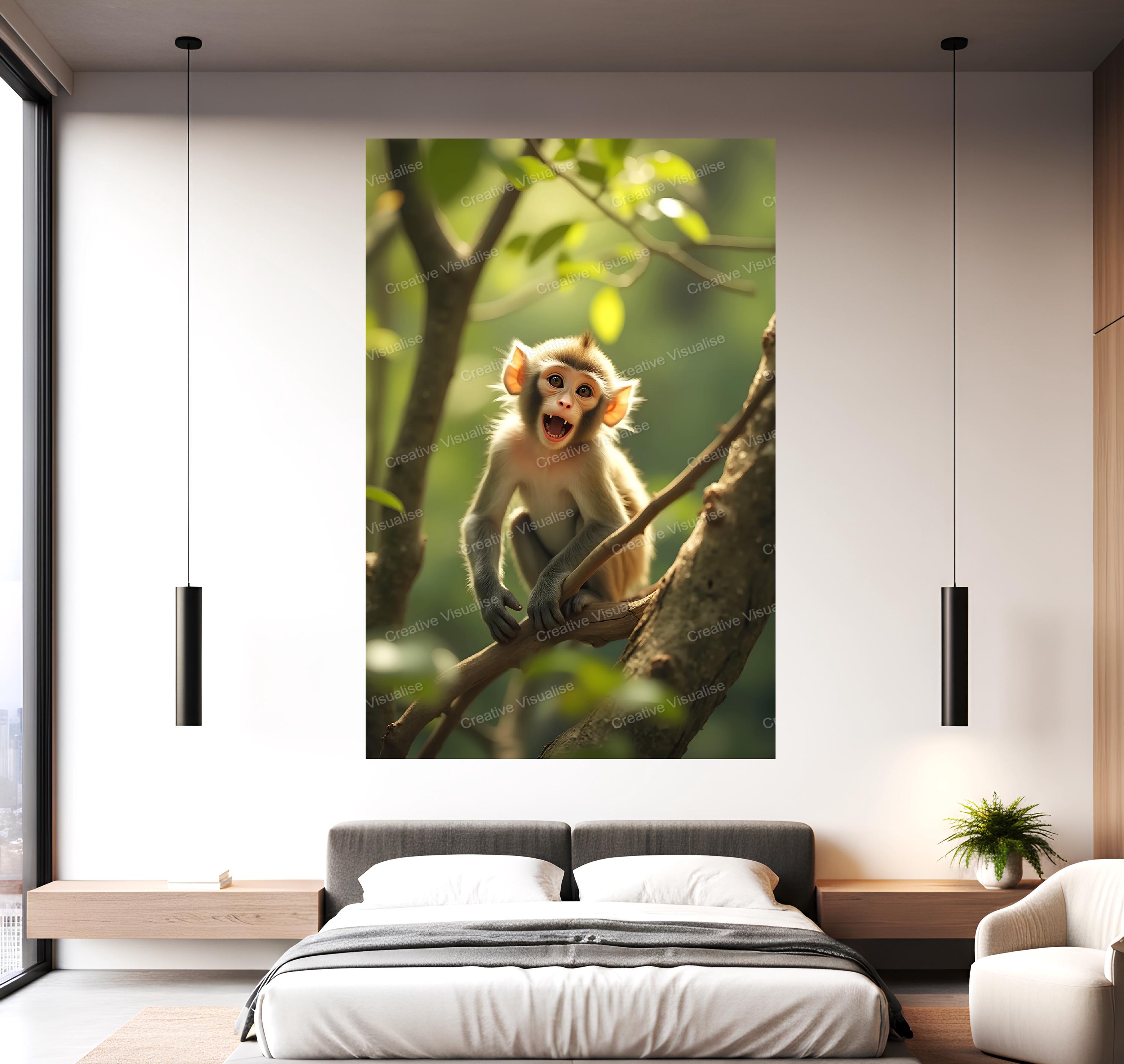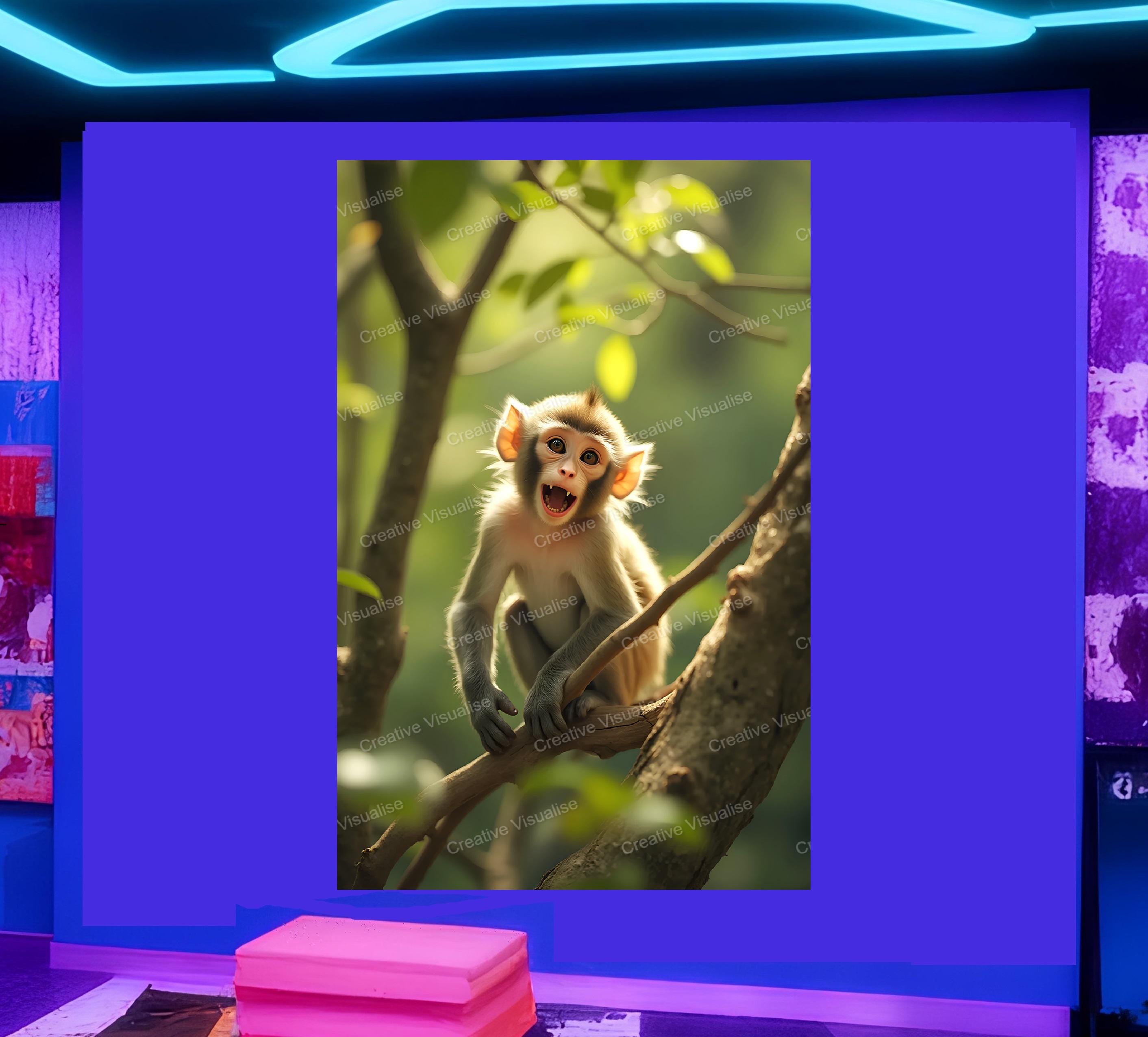 A digital photo of the monkey on the tree that can be easily downloaded and printed (not a physical item for delivery). The details of the digitally received image are about 11000 × 16000 pixels, 300 DPI, JPEG and PDF formats, AI artwork, very high resolution without a watermark, and large enough for professional posters, canvas prints, and wall decor. Please send me a message if you need another file format after the original files' delivery. This price is for personal use! For commercial use, please send me a message.