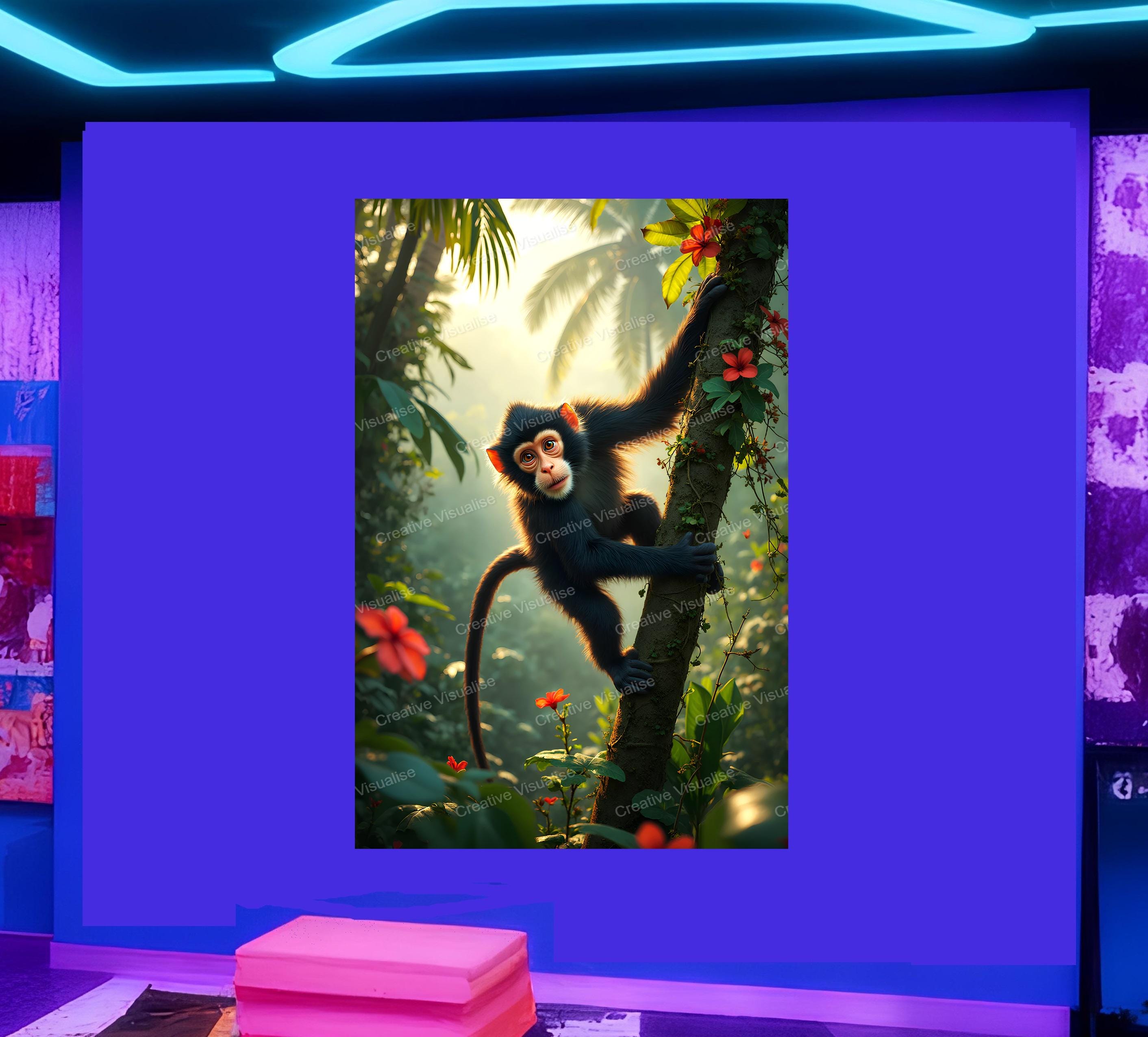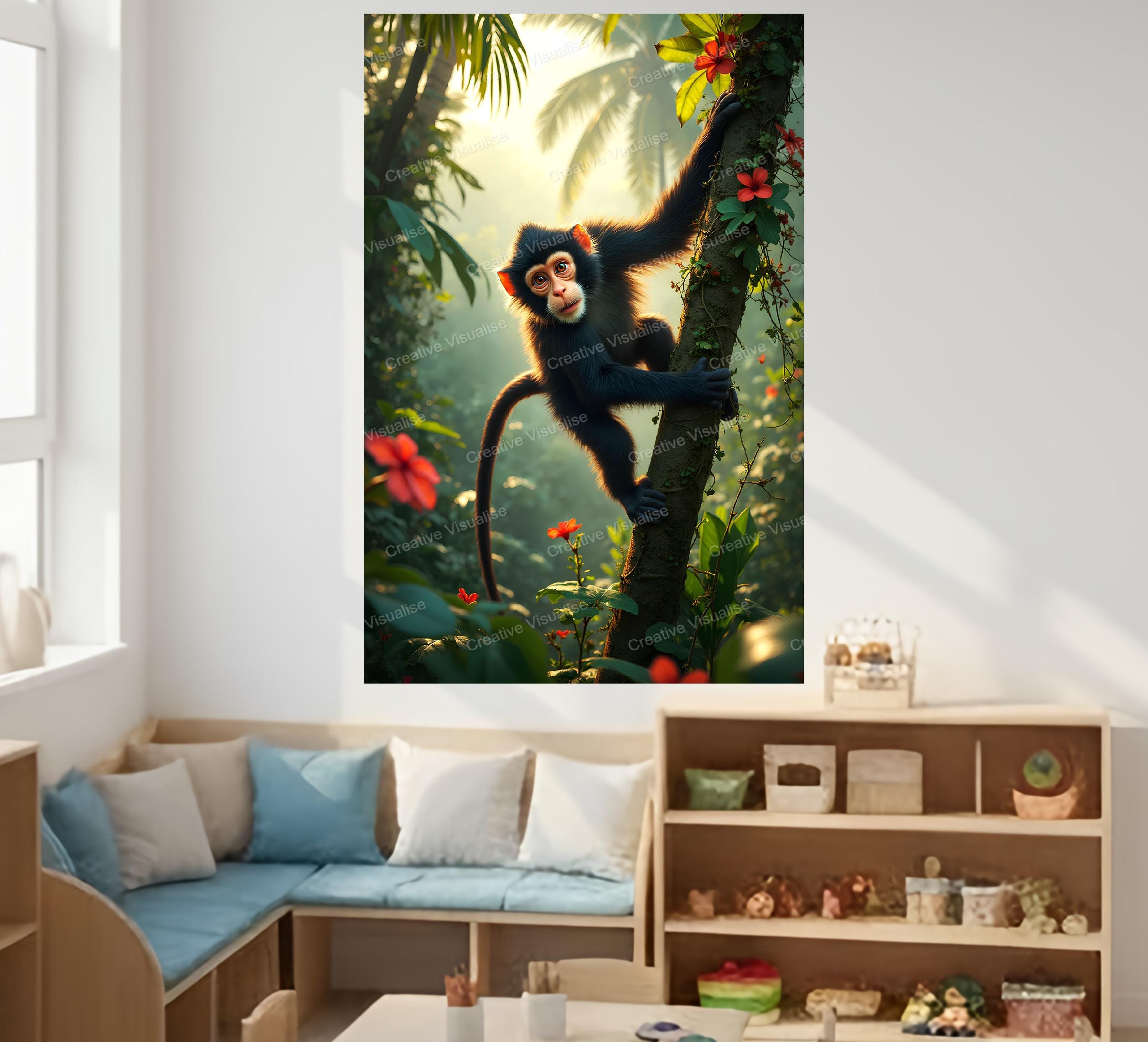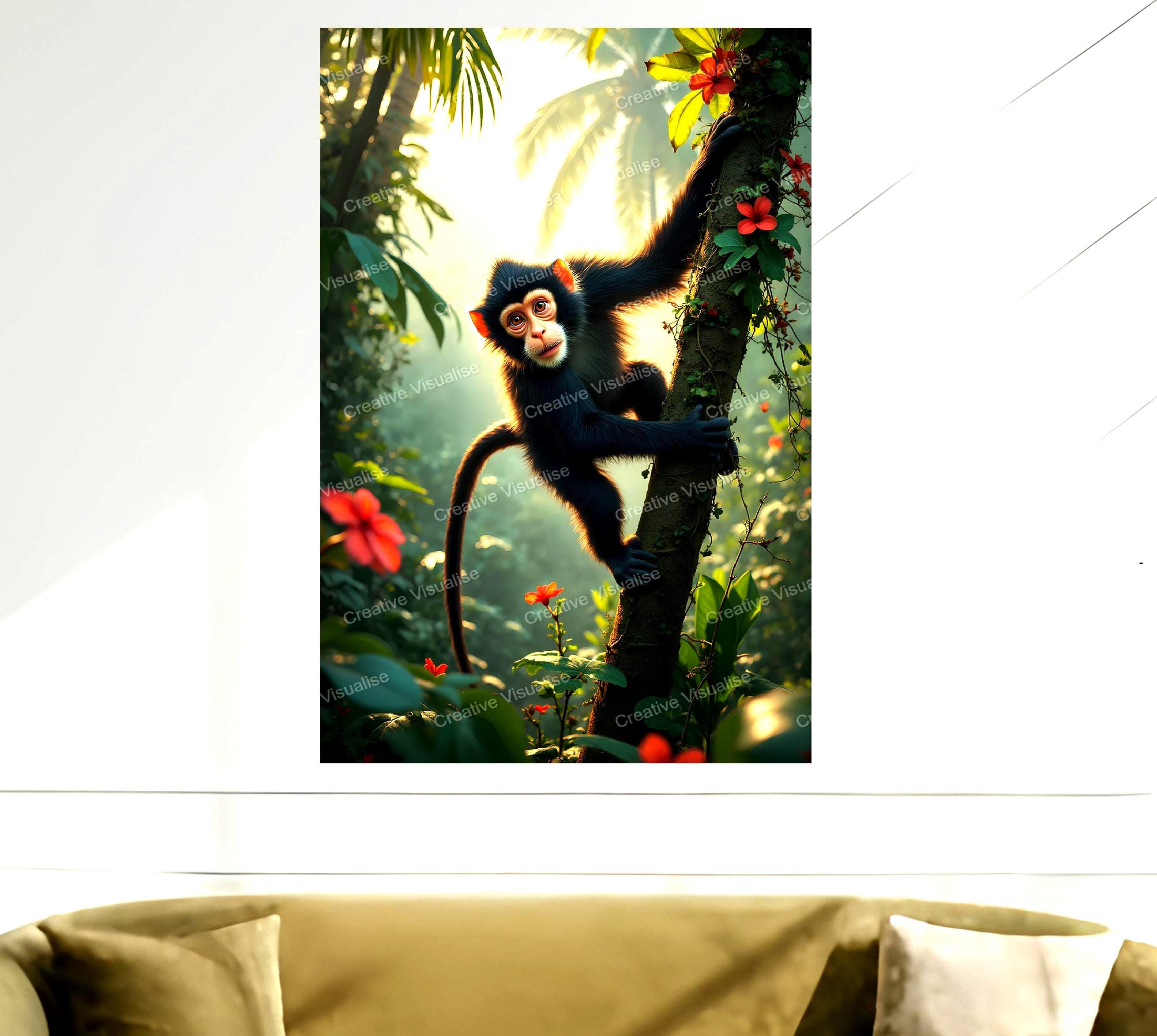 A digital photo of the monkey in the jungle that can be easily downloaded and printed (not a physical item for delivery). The details of the digitally received image are about 11000 × 16000 pixels, 300 DPI, JPEG and PDF formats, AI artwork, very high resolution without a watermark, and large enough for professional posters, canvas prints, and wall decor. Please send me a message if you need another file format after the original files' delivery. This price is for personal use! For commercial use, please send me a message.